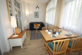 Sie wohnen in einem 2-Zimmer-Appartement für bis zu 4 Personen auf 58 m² Wohnfläche im Erdgeschoss (Hochparterre). Ein Schlafzimmer mit Doppelbett, ein Wohnraum mit bequemer Ledergarnitur, großzügiger Wintergarten mit bequemer Doppelbettcouch und separatem Essplatz mit Blick in den Kurpark, voll ausgestatteter Küchenbereich mit Mikrowelle, Geschirrspüler und E-Herd mit Backofen und Cerankochfeld.