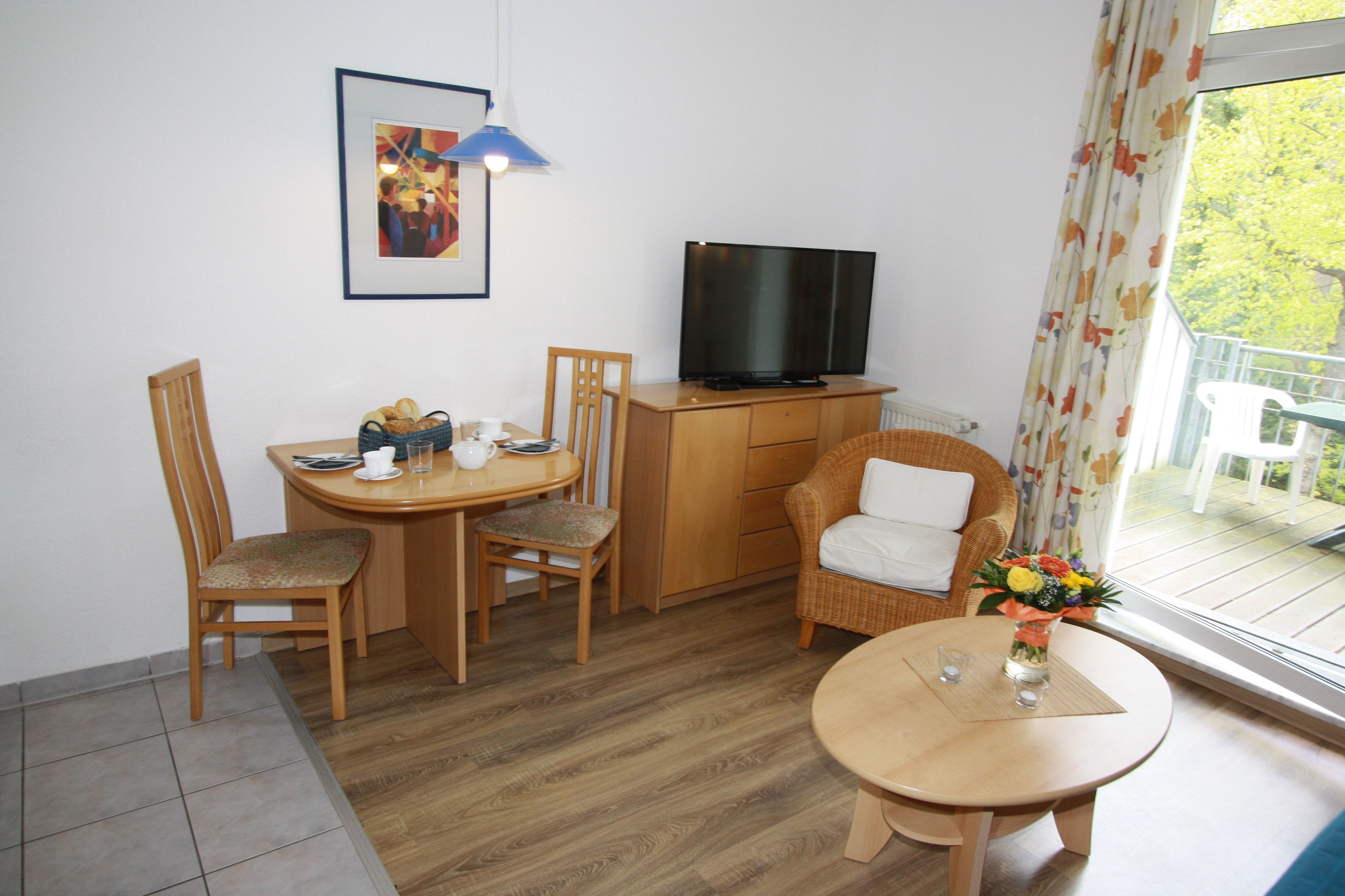 Balkon zum Kurpark und Ostsee.
