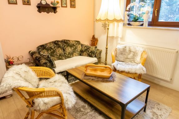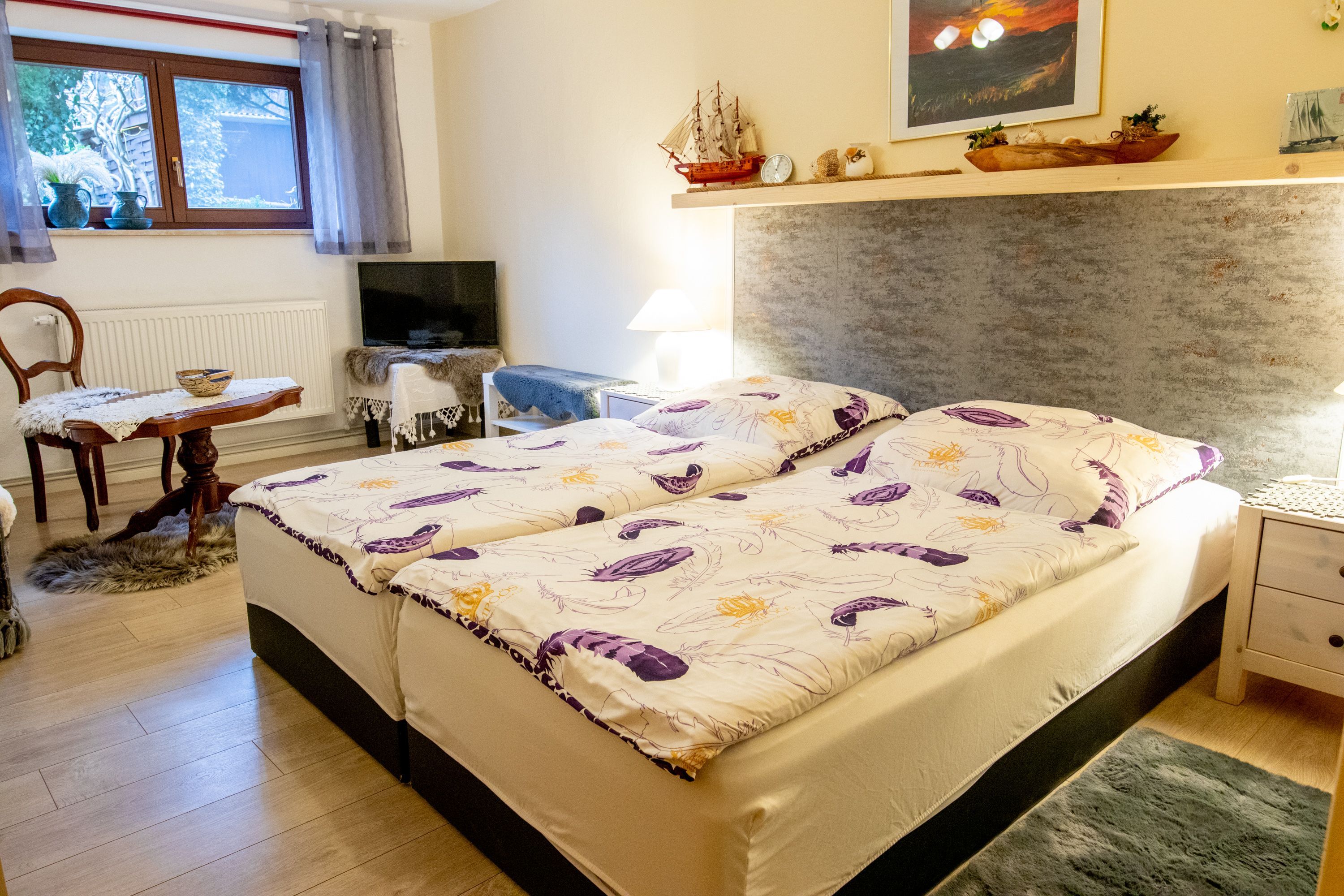 in Ortsrandlage direkt am Küstenwald. Zum Strand sind es nur 400 Meter. Die 2-Zimmer-Wohnung verfügt über eine separate Küche mit Sitzecke und Esstisch für 3 Personen, ein Schlafzimmer mit zwei Schlafmöglichkeiten (90x200, getrennt stellbar), ein Wohnzimmer mit Sofa, Schlafsofa (140x200), sowie ein Bad mit Dusche und WC. Der separate Eingang ist über eine Terrasse mit Gartenmöbeln und Grill erreichbar. Auf dem Grundstuck befindet sich ein PKW-Stellplatz, Fahrräder können ebenfalls untergestellt werden. Da sich auf dem Hof ein unbewachter, nicht umzäunter Teich befindet, können wir Buchungen mit Kindern bis 10 Jahren leider nicht realisieren.
