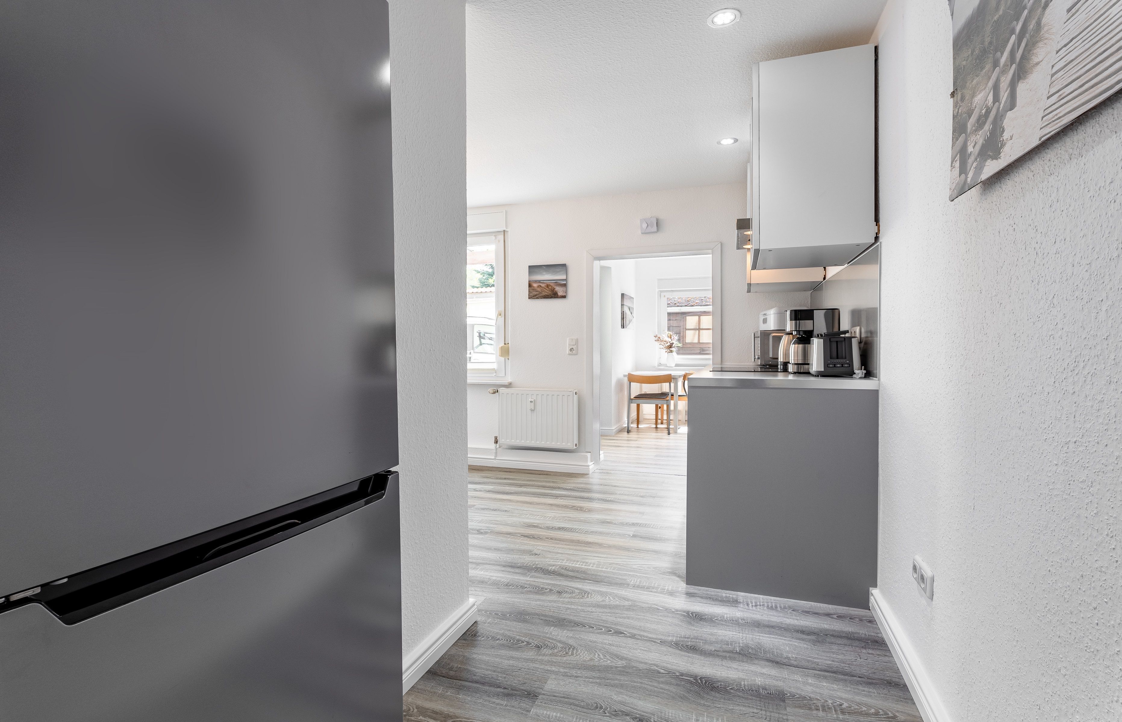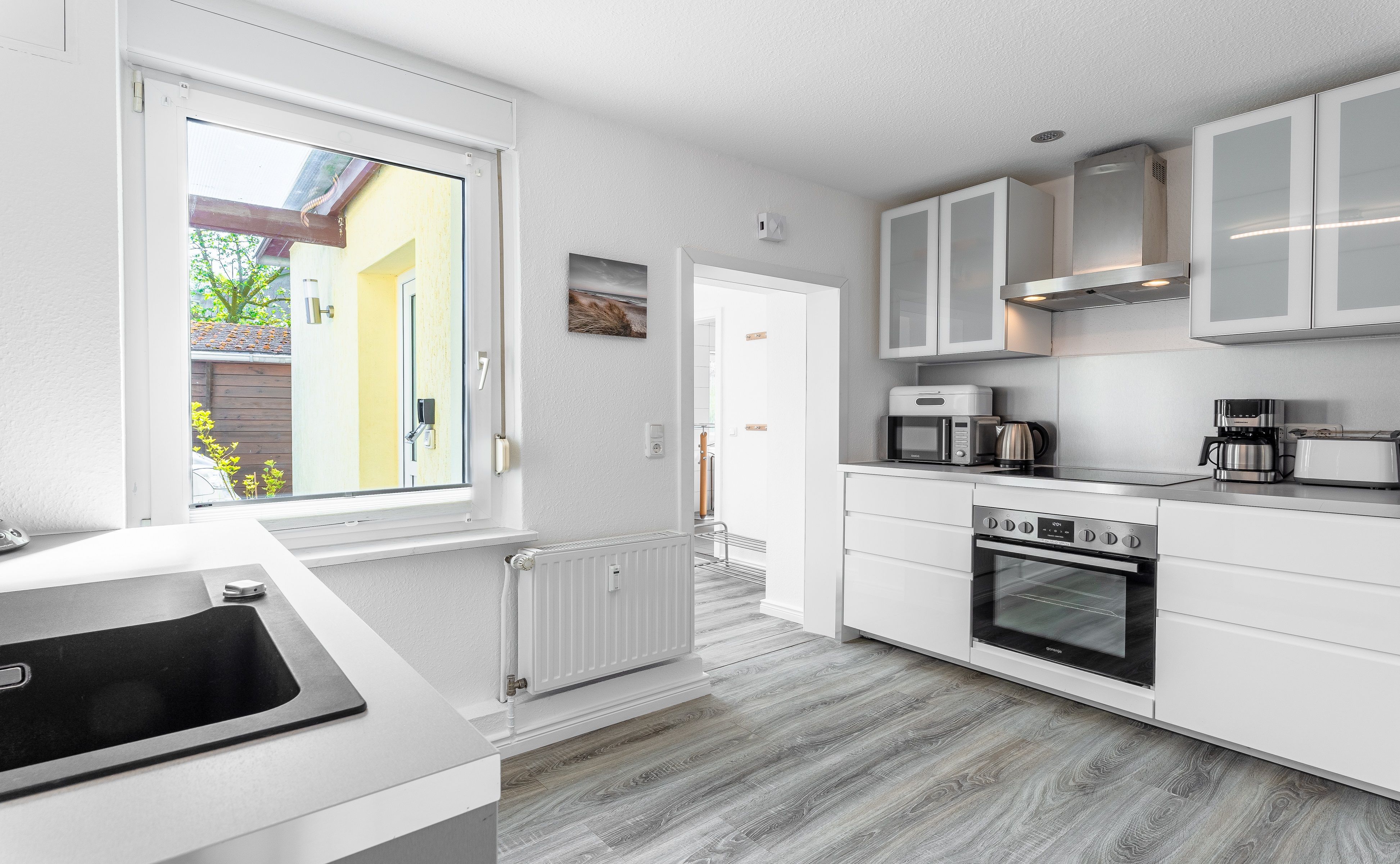 Die neue Einbauküche ist mit allen Geräten ausgestattet, wie eine große Kühl- und Gefrierkombination, einem Geschirrspüler, Backofen mit Induktions-Kochfeld, Mikrowelle, Wasserkocher, Kaffeemaschine, Senseo-Kaffeepad Maschine, Toaster und Eierkocher. Eine Waschmaschine steht allen Gästen der Villa Helga kostenfrei zur Verfügung.