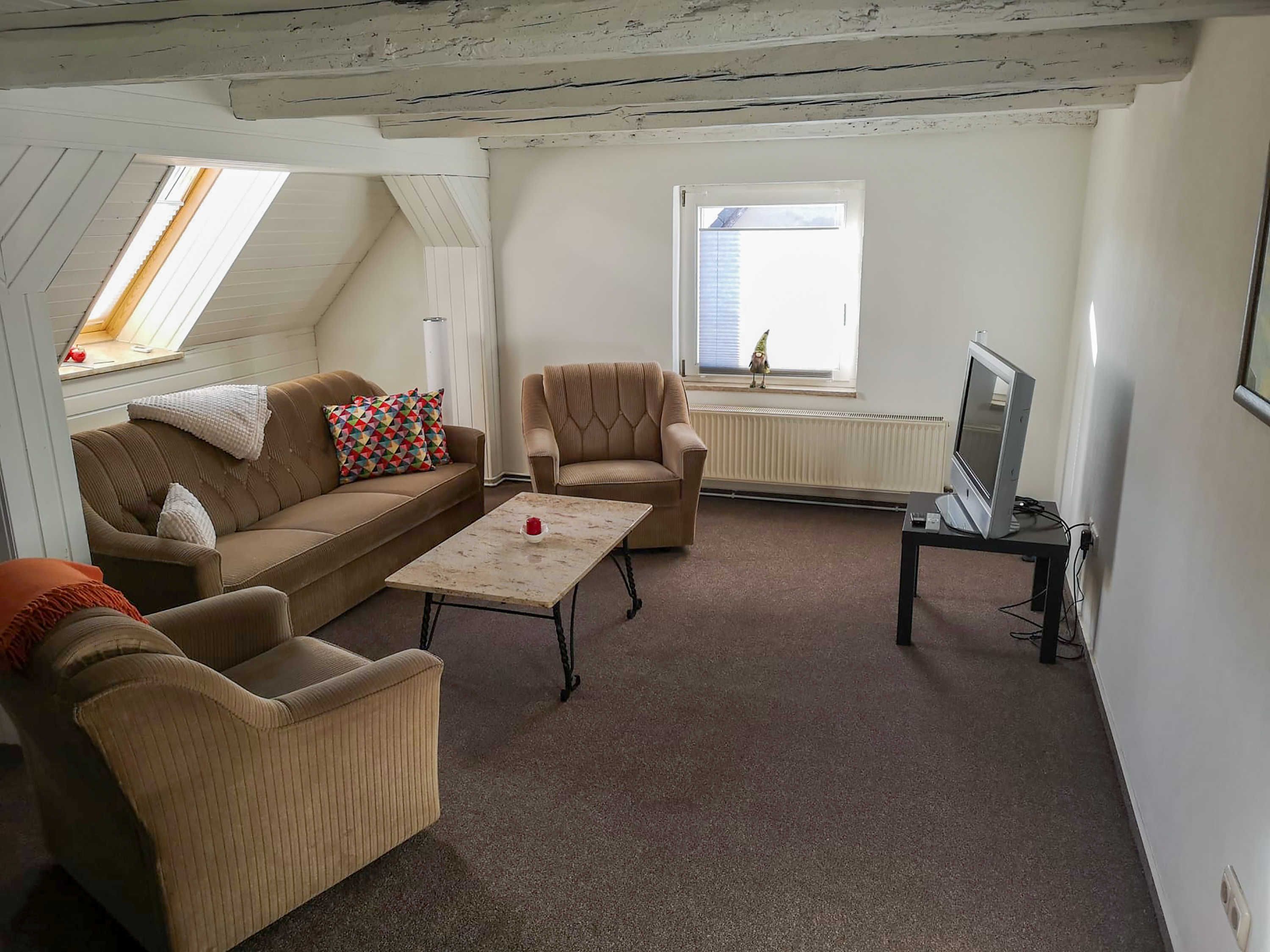 Die 77 m² große Ferienwohnung befindet sich in zentraler Lage im Dorfkern von Niepars. Sie befindet sich im Obergeschoss eines Einfamilienhauses und bietet Platz für 3 Personen. Die Decke in der gesamten Wohnung ist 1,87 m bis maximal 1,93 m hoch. Die Ferienwohnung besteht aus einem gemütlichen Wohnraum und zwei Schlafzimmern, einer separaten Küche, großem Flur mit einem elektrischen Dartsspiel und einem Badezimmer mit Dusche. Ein PKW-Stellplatz und Fahrradunterstellmöglichkeiten sind kostenfrei auf dem Grundstück vorhanden. Bei schönem Wetter lädt die Sitzecke auf dem Hof zum Verweilen und Grillen ein, des Weiteren gibt es eine überdachte Tischtennisplatte.