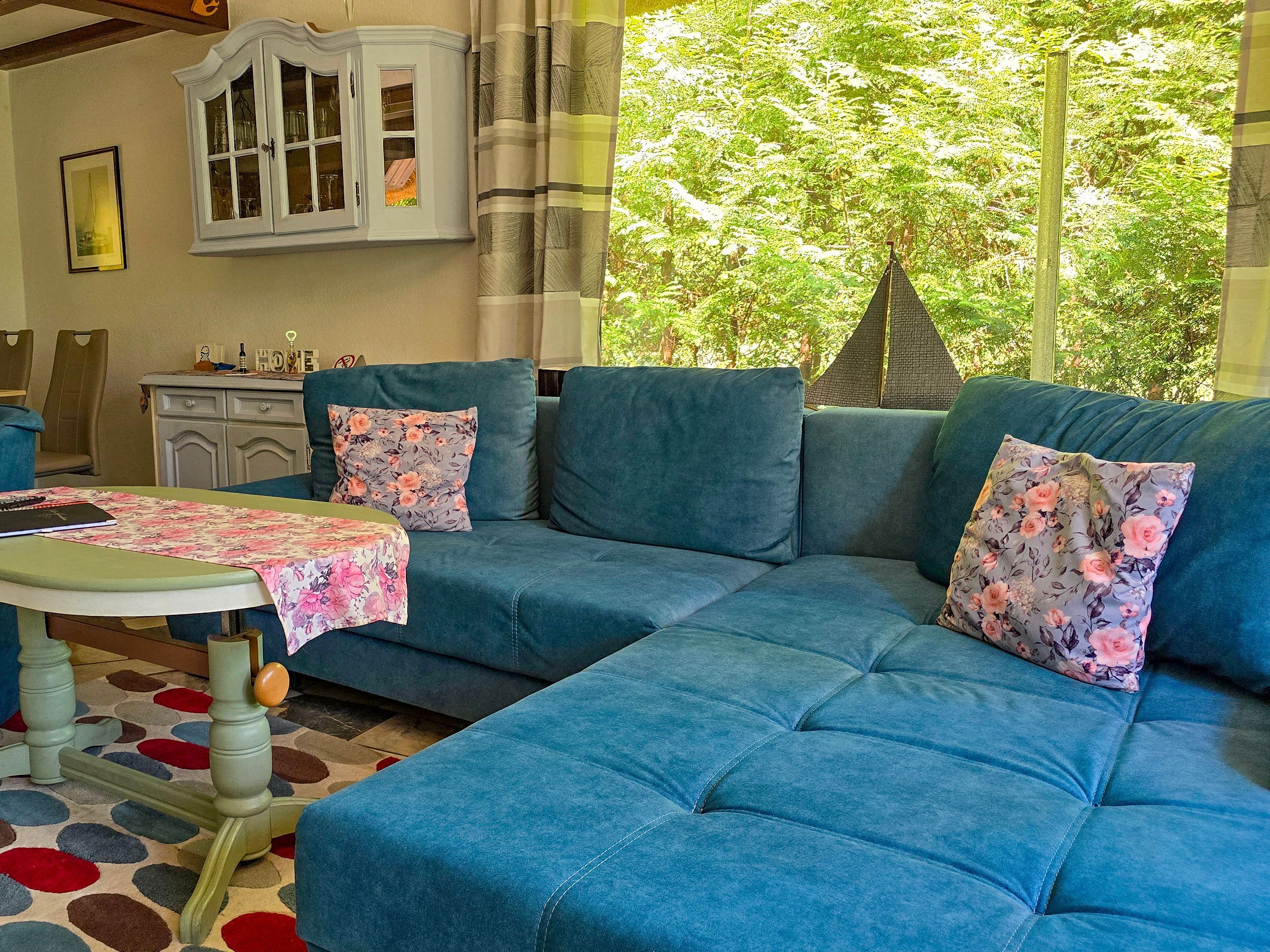 • Wohnzimmer mit gemütlicher Couchgarnitur, Smart-TV, Stereoanlage und WLAN