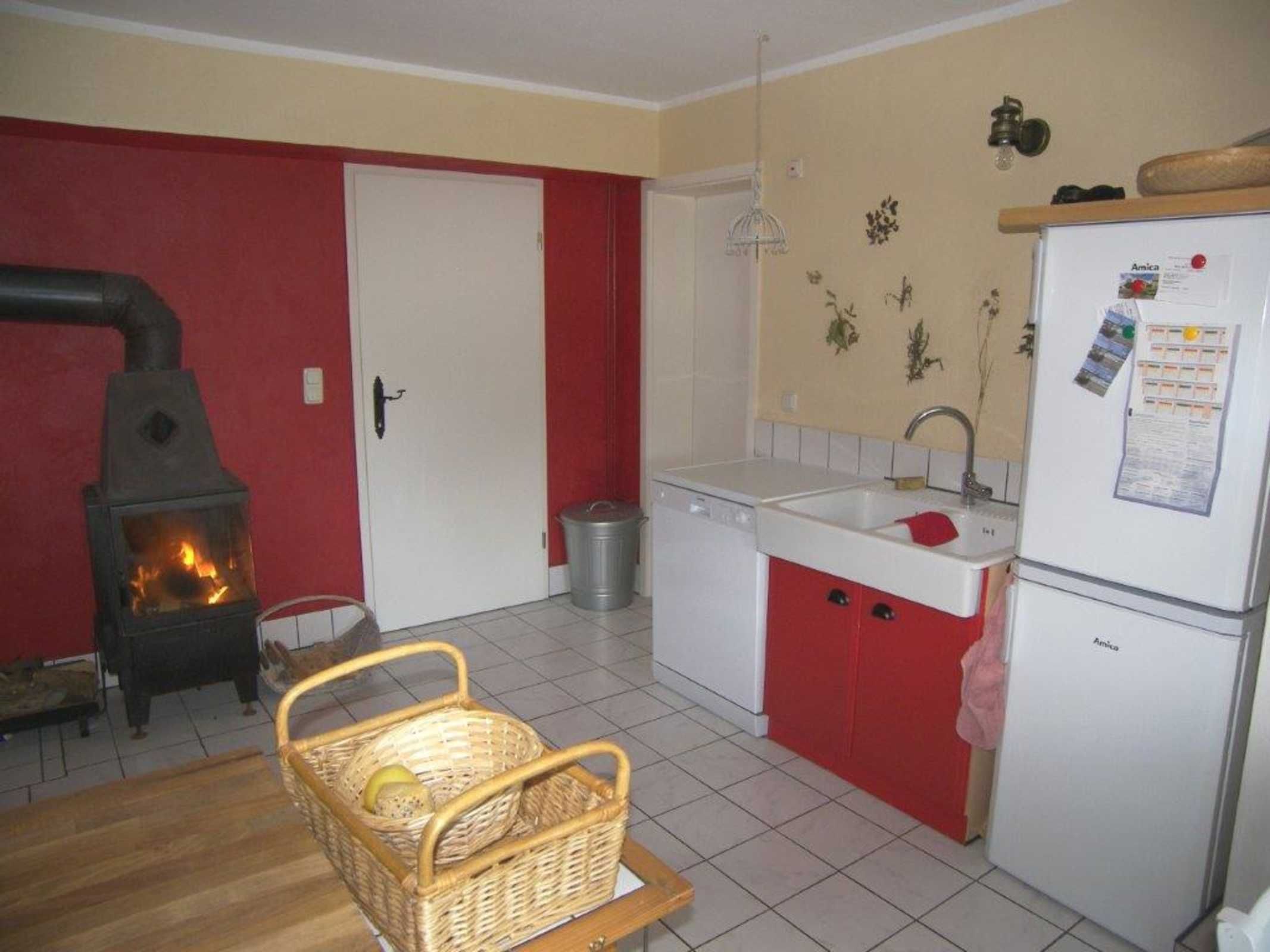 • 1 gut ausgerüstete Küche mit Essecke, Kamin und TV