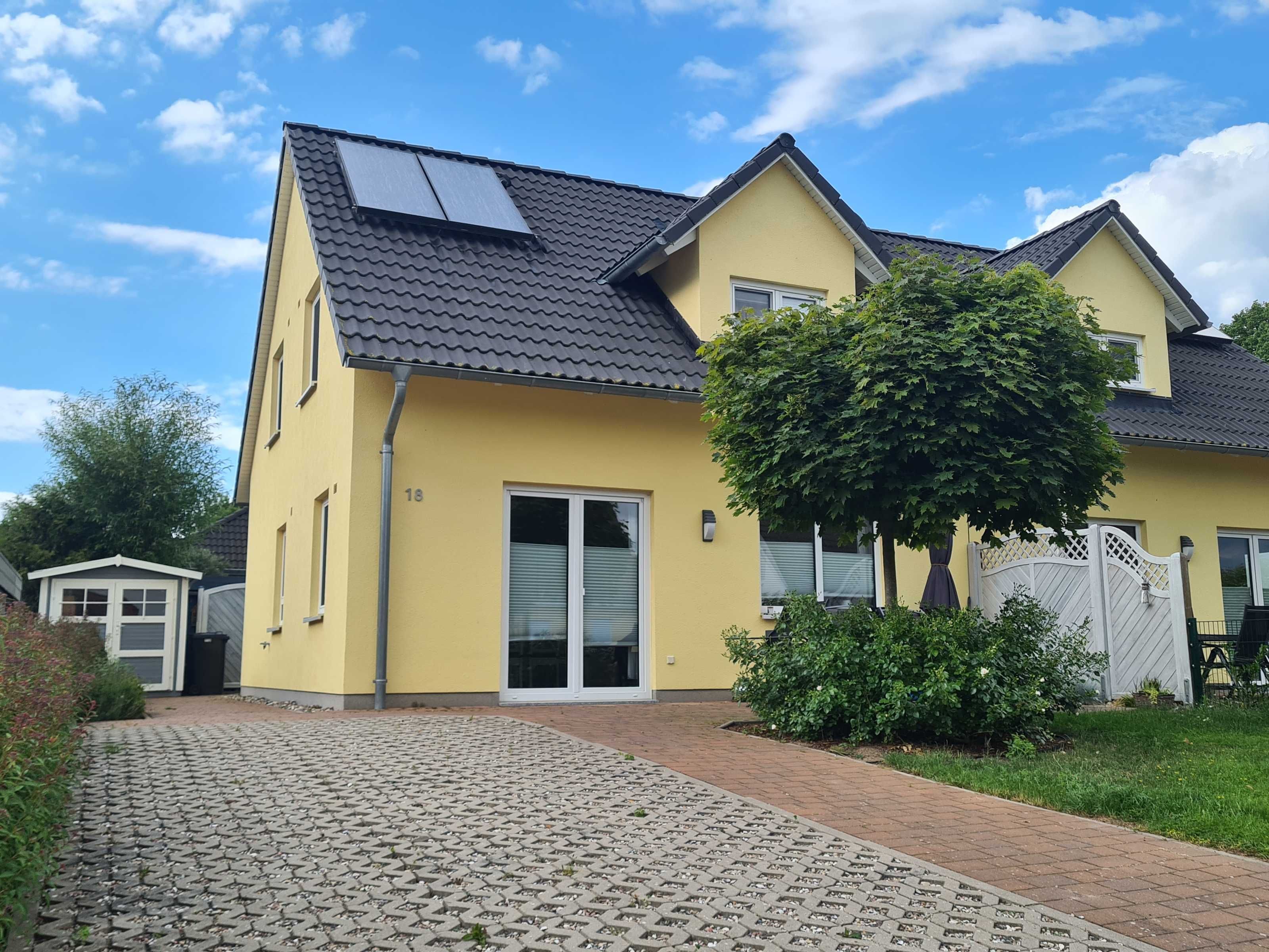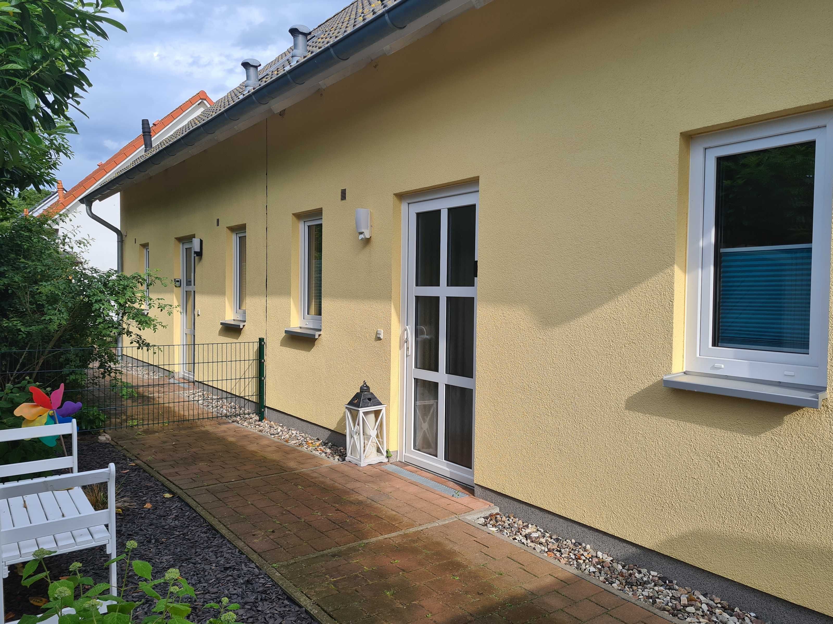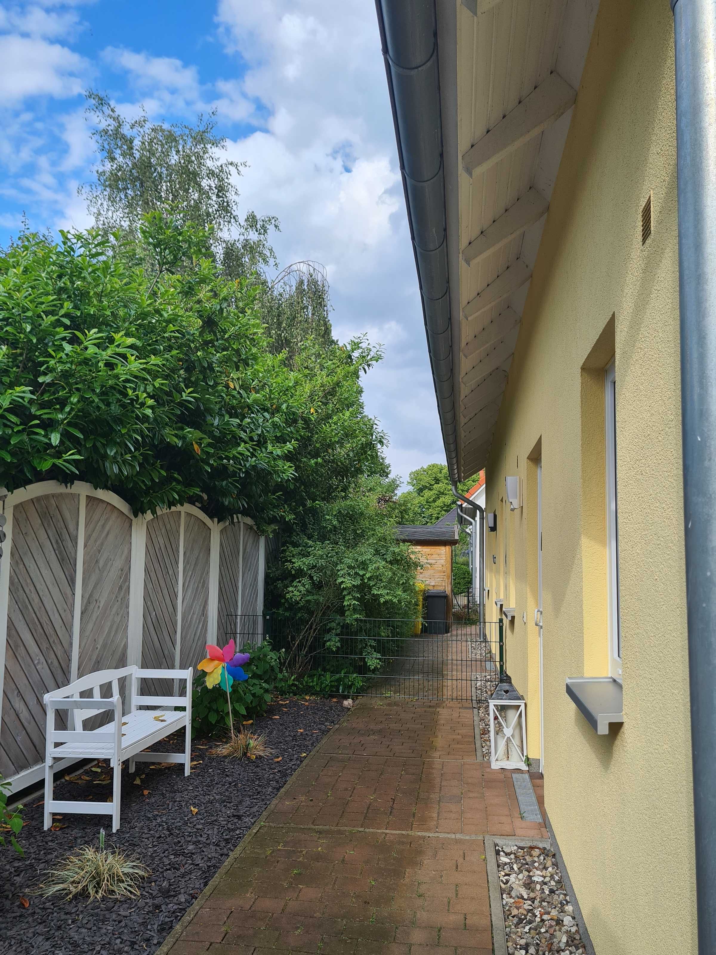 Im Außenbereich steht Ihnen ein kleiner, schön angelegter Garten mit sonniger Terrasse und Sandkiste, zwei KFZ-Stellplätzen sowie ein kleines Gartenhaus zum Unterstellen von Fahrrädern zur Verfügung.