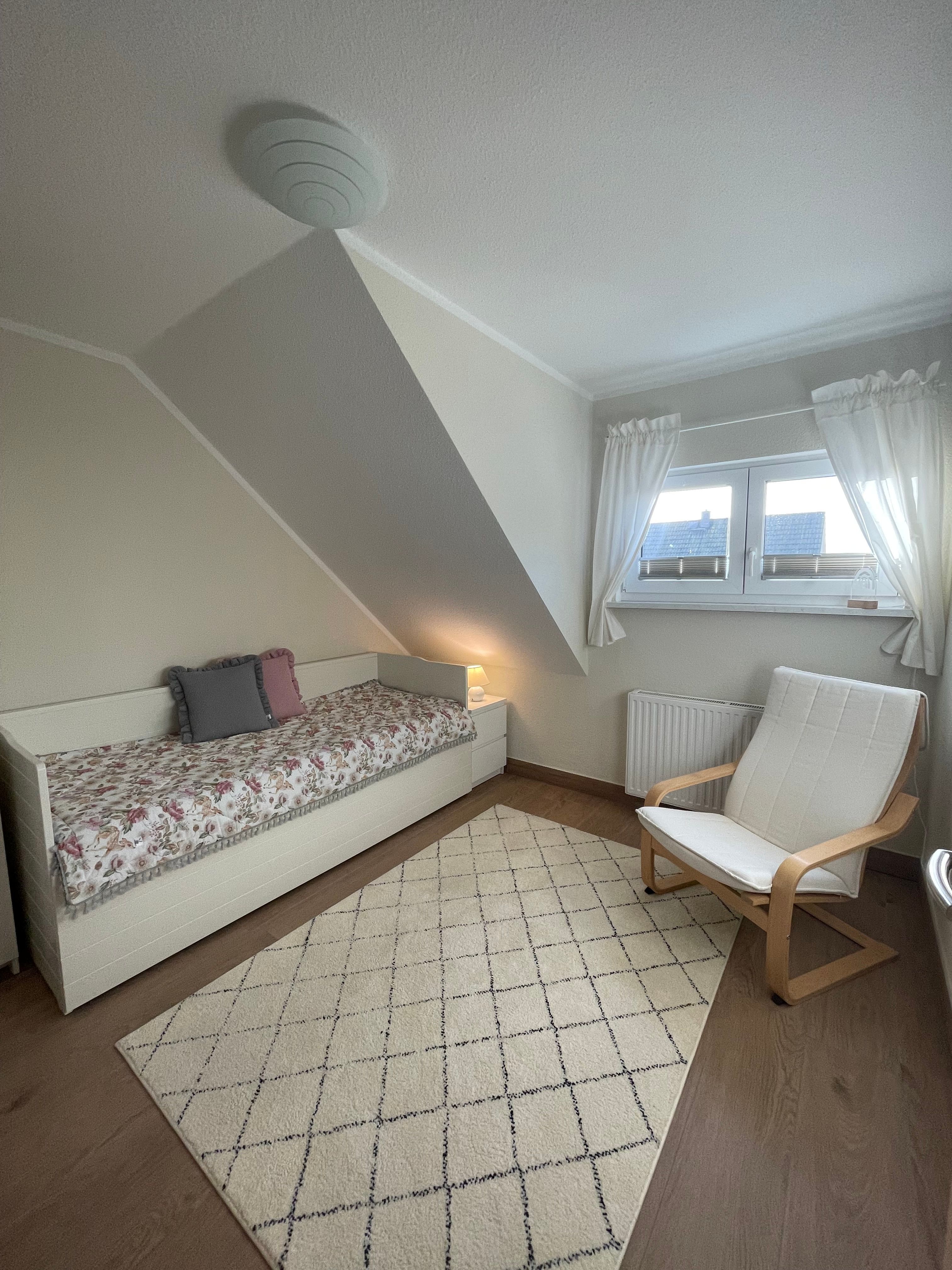 Obergeschoss: insgesamt drei großzügige Schlafzimmer überwiegend mit TV. In allen Schlafräumen ist das Aufstellen eines Babybettes möglich. Ein zweites Duschbad/ WC bietet weiteren Komfort.