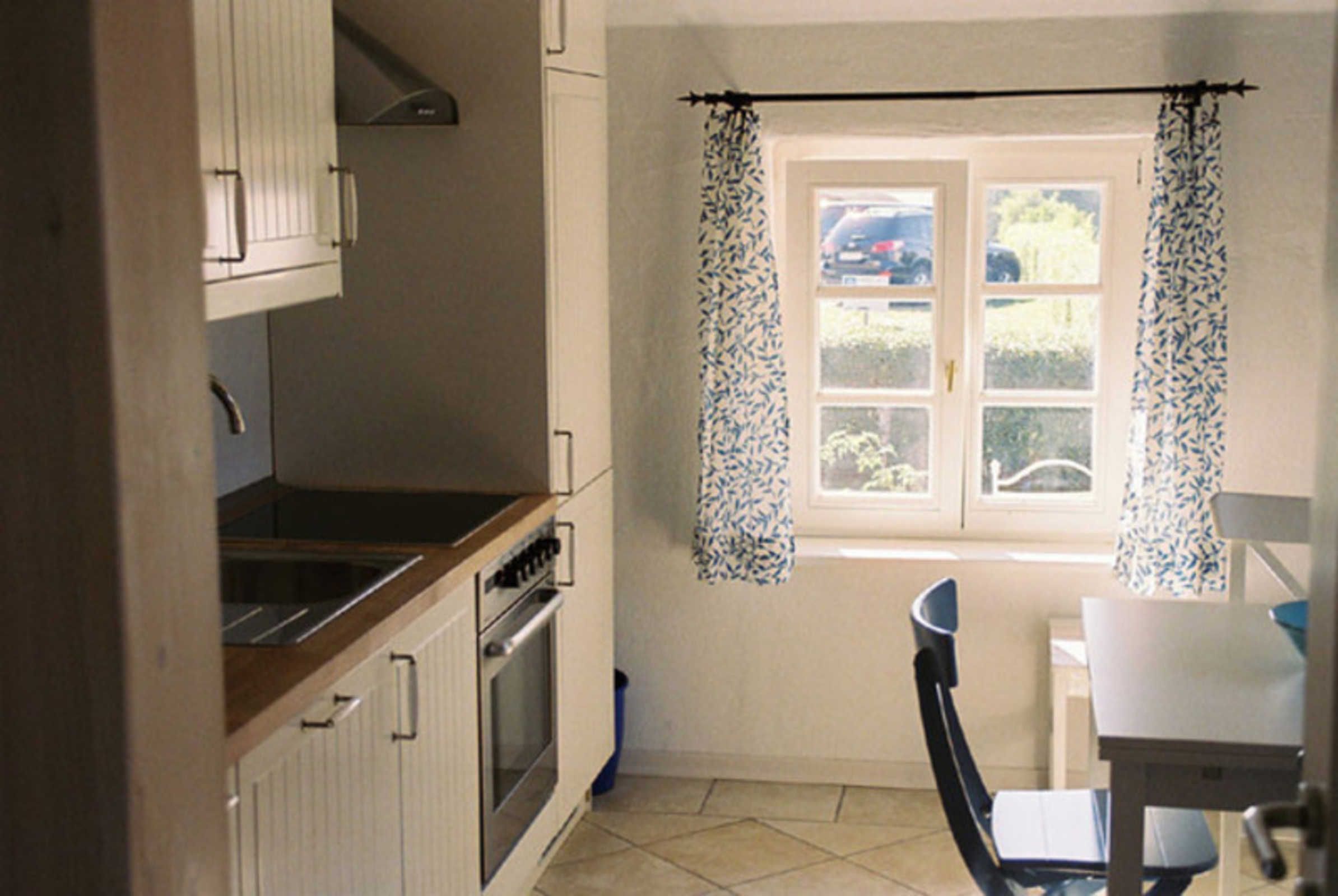 Die freundlich eingerichtete Ferienwohnung besteht aus zwei Schlafräumen, einem Wohnraum, DU/WC und Terrasse. Die Küchenzeilen sind gut ausgestattet und haben Geschirrspüler, Cerankochfeld, Backofen und Mikrowelle sowie alle notwendigen Küchengeräte.
