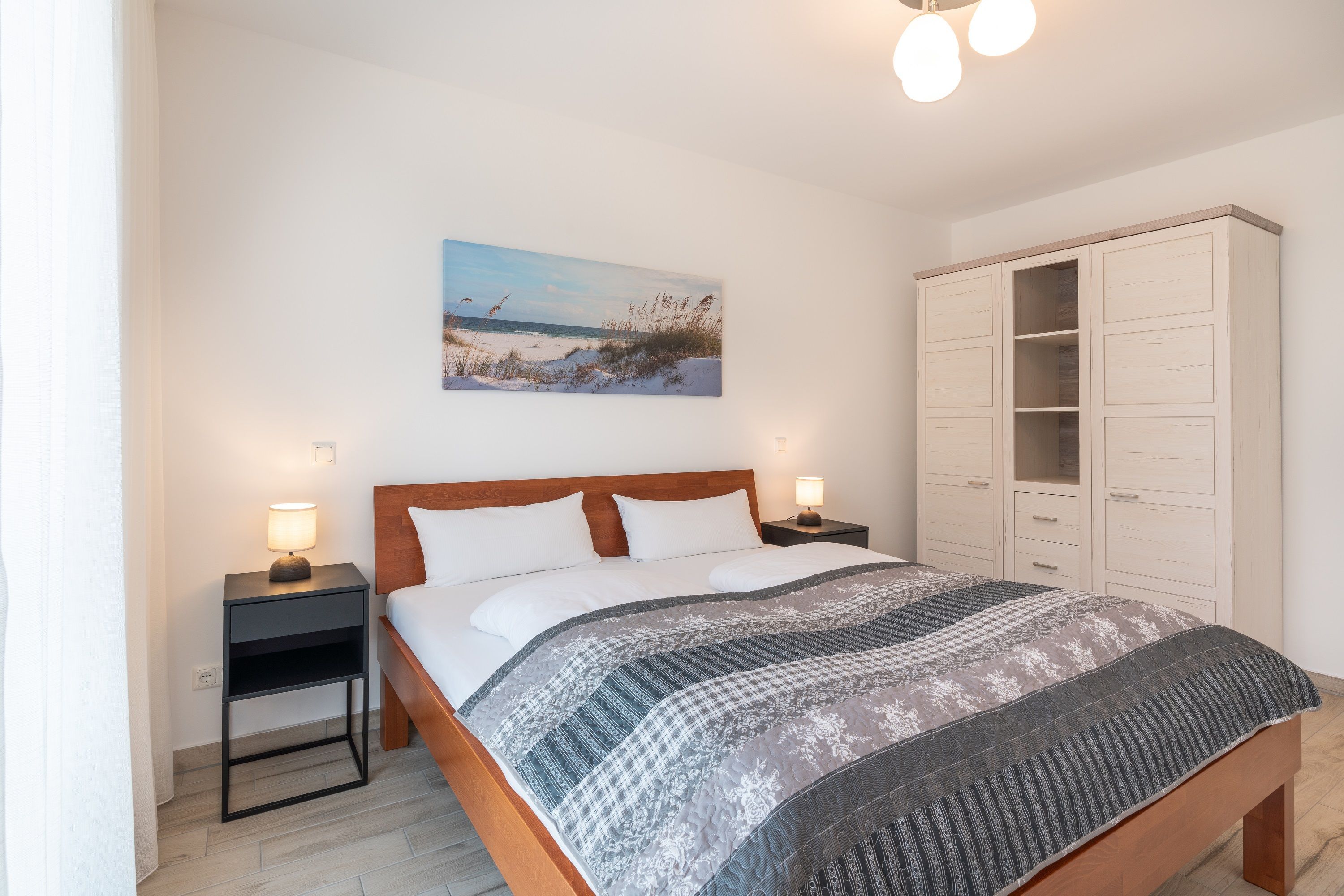 Auf einer Wohnfläche von 92 m² finden vier Erwachsene und ein Kleinkind bis zwei Jahre in dieser modern eingerichteten Ferienwohnung ausreichend Platz für einen entspannten Urlaub am Stettiner Haff auf Usedom.