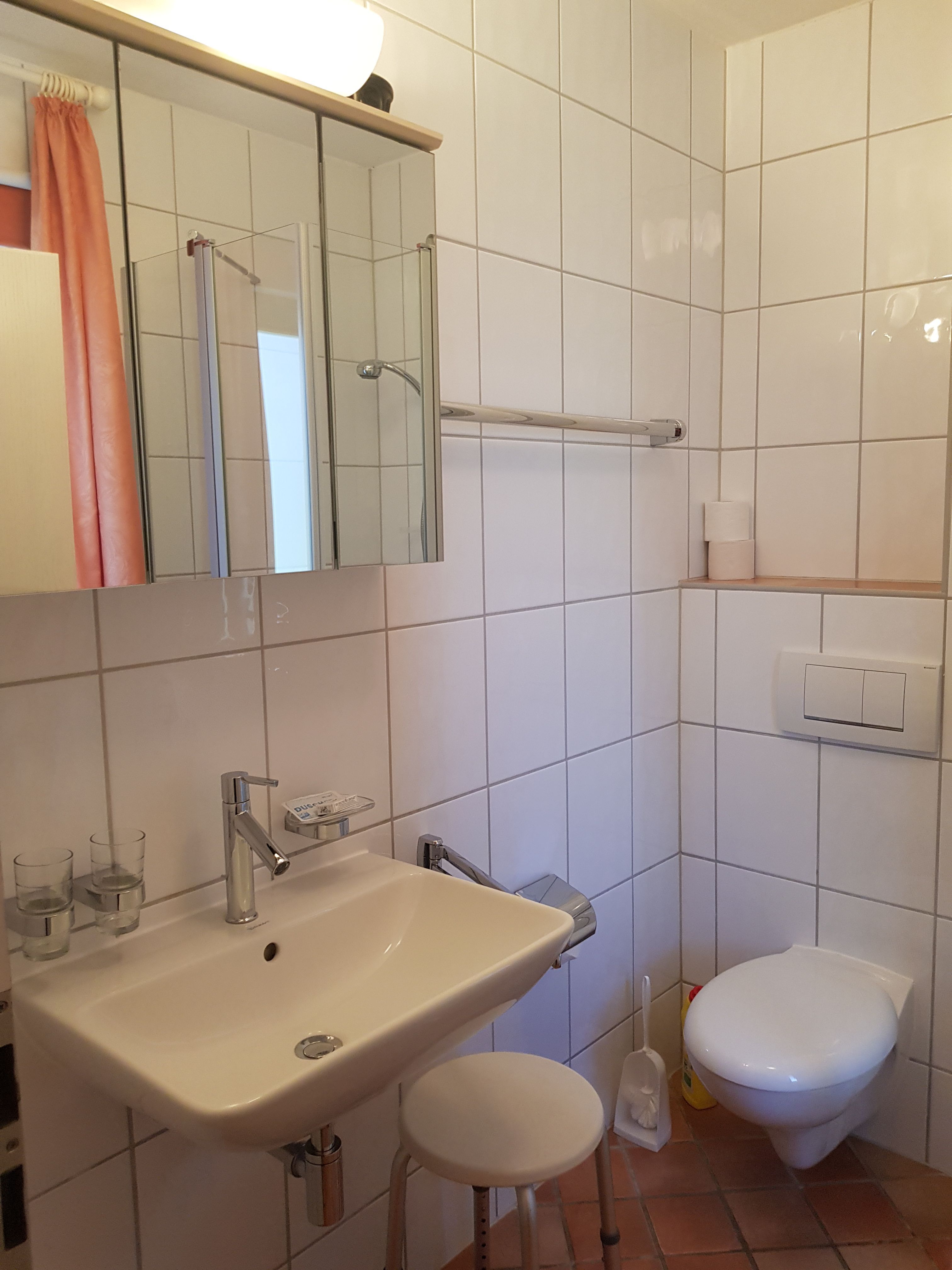 Münzwaschmaschine und -trockner stehen im Keller des Hauses zur Verfügung.