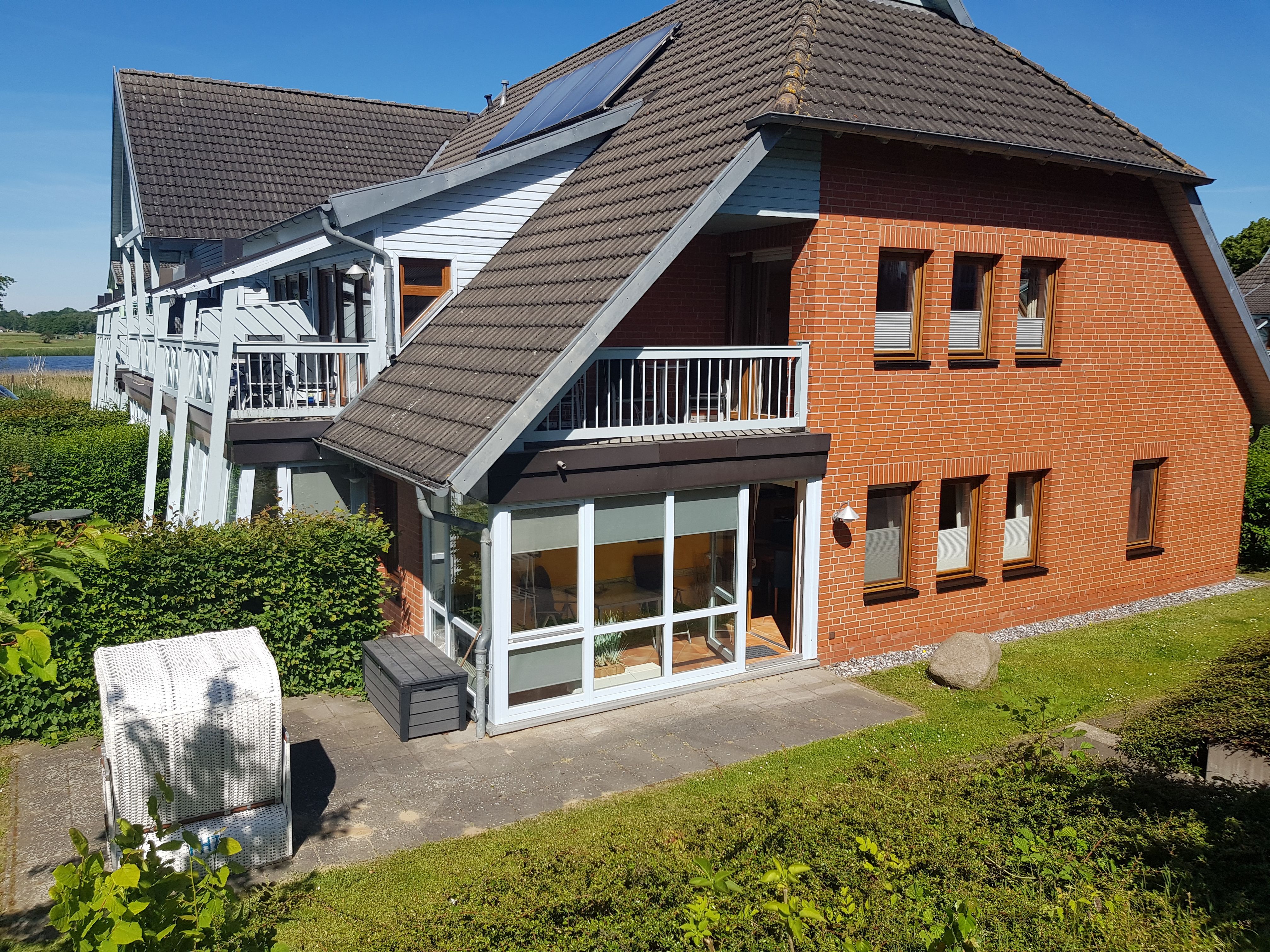 Ein weiteres Highlight der Wohnung ist der in den Wohnbereich integrierte Wintergarten, indem Sie bei einem guten Buch herrlich entspannen können. Vom Wintergarten gelangt man auf die Terrasse, wo Sie einen seitlichen Blick auf den Neuensiener See und im Sommer einen sehr gemütlichen Strandkorb haben.