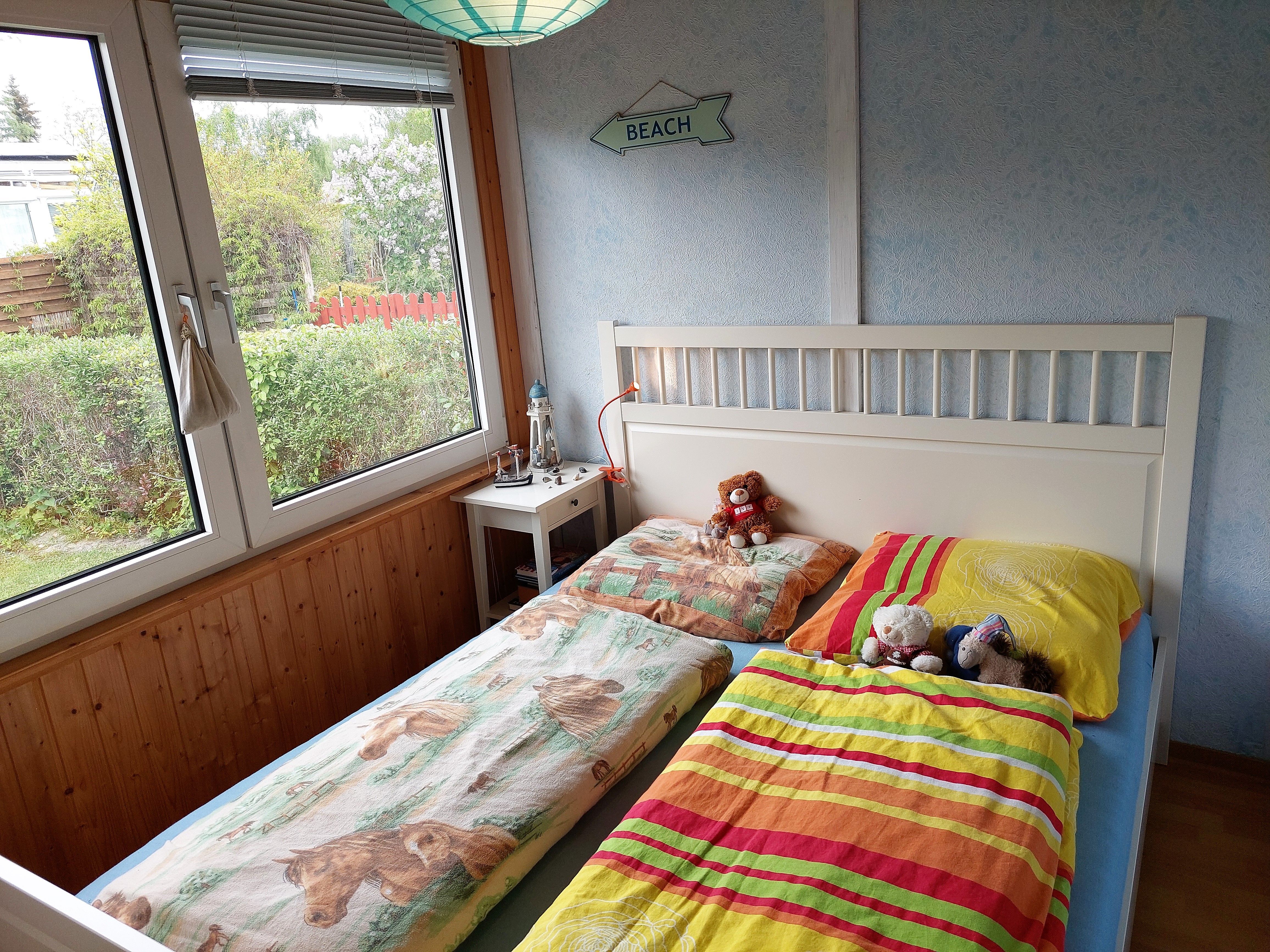Der ca. 50qm große, liebevoll ausgestattete Bungalow verfügt über eine große überdachte Terrasse auf der Südseite. Der Wohn-Essbereich ist mit einer Couch (Aufbettungsmöglichkeit für die 5.& 6. Person, Liegefläche ca. 1,60x2,00m), Flat-TV, Esstisch und offener Küche mit Backofen, Kochfeld, Geschirrspüler und Kühlschrank mit 1*Gefrierfach ausgestattet. In den zwei separaten Schlafzimmern finden Sie einmal zwei verschiebbare Einzelbetten und in dem anderen Schlafzimmer ein Doppelbett. Das Badezimmer verfügt über Dusche/WC und Haartrockner. Der großzügige Garten bietet viel Platz zum Spielen und Erholen.