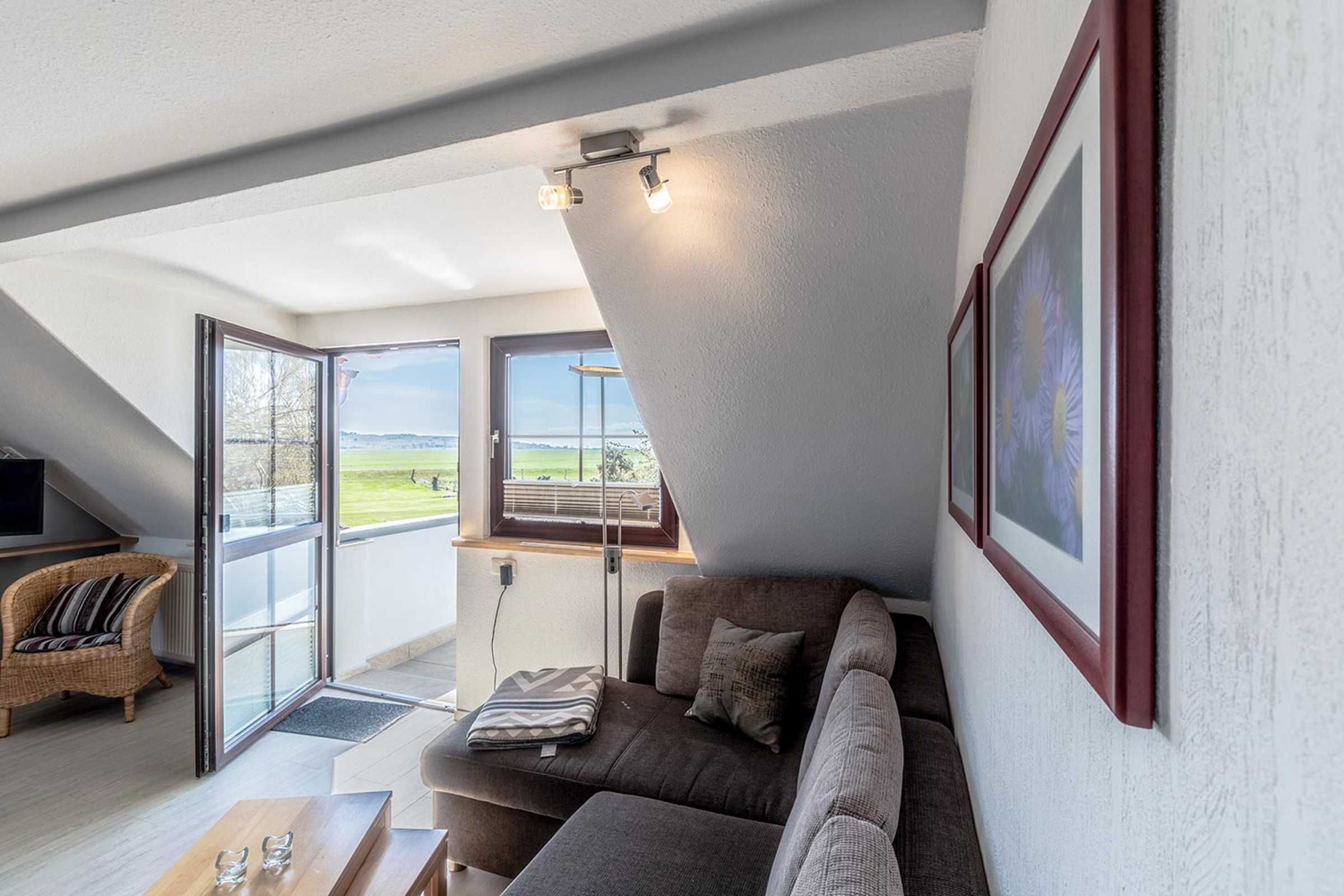 Der Wohnbereich ist mit einer gemütlichen Schlafcouch, Flachbild-TV, DVD-Player und einem Essbereich eingerichtet. Im separaten Schlafzimmer finden Sie ein bequemes Doppelbett mit Nachttischablage und Leselampen und einen großzügigen Kleiderschrank. Sie haben hier einen wunderschönen Blick auf den Deich.