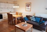 Doppelbettcouch, separater Essplatz, voll ausgestatteter Küchenbereich, Dusche/WC, Balkon und LCD-TV