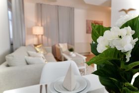 In unserer Villa Sonnenmeer bieten wir unseren Gästen sieben in hellfrischen Farben eingerichtete Wohlfühl-Appartements in unterschiedlichen Größen, von der gemütlichen 2-Raum-Wohnung mit 48 m² bis zum weitläufigen Luxus-Appartement von 148 m² mit eigener Sauna und Kamin.
