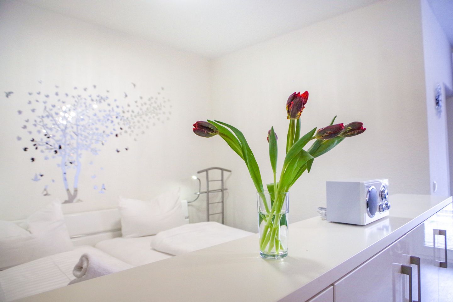 Die Unterkunft überzeugt mit einem offenen Küchen- und Wohnbereich, der ausgestattet ist mit modernen Geräten. Genießen Sie die Annehmlichkeiten einer voll ausgestatteten Küche mit Cerankochfeld, Spülmaschine, Kühlschrank, Kaffeemaschine, Mikrowelle, Toaster und weiteren Utensilien. Das optisch abgetrennte Schlafzimmer bietet Ihnen die nötige Ruhe für erholsame Nächte. Im separaten Schlafzimmer befindet sich eine Schlafcouch für zusätzliche Gäste.