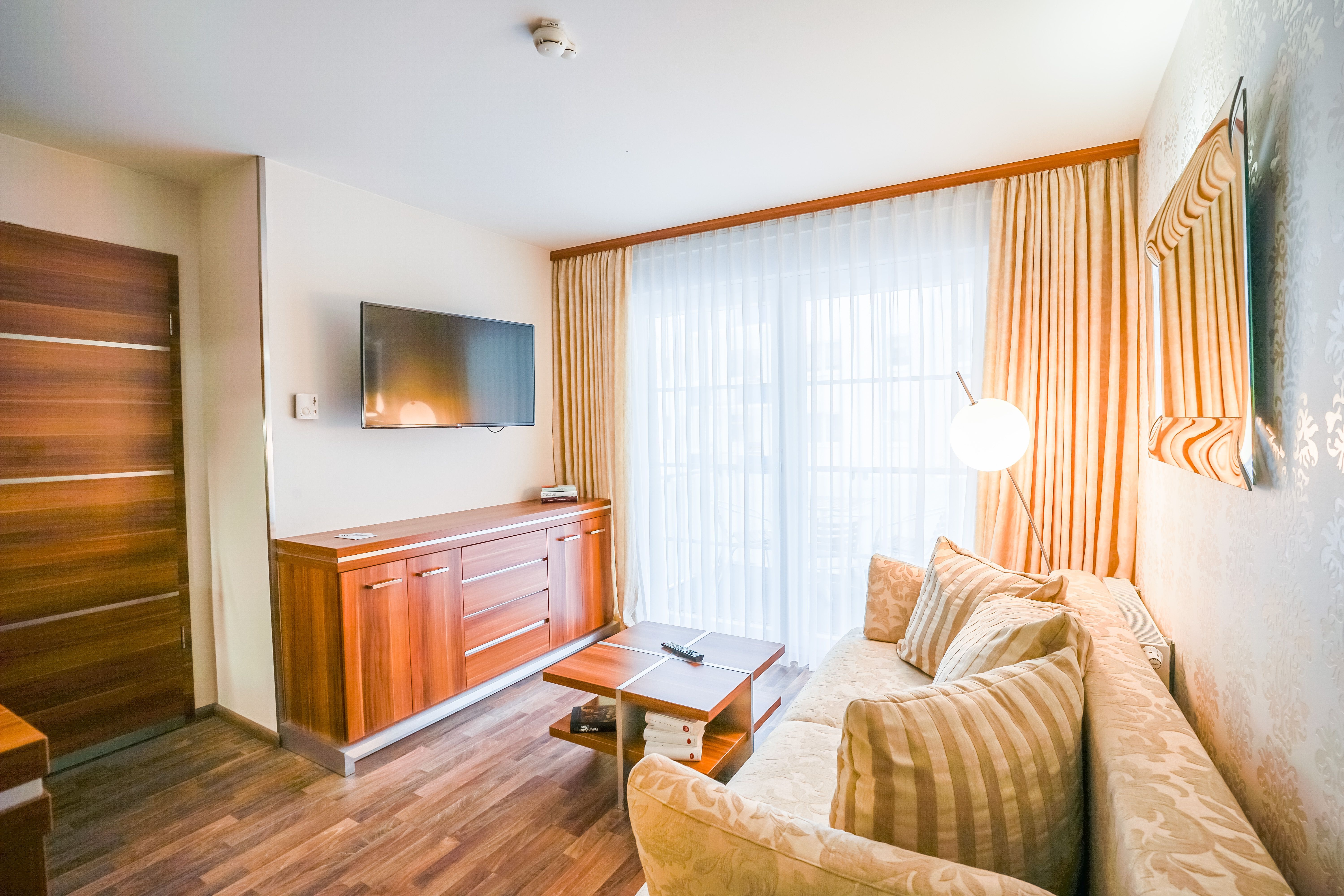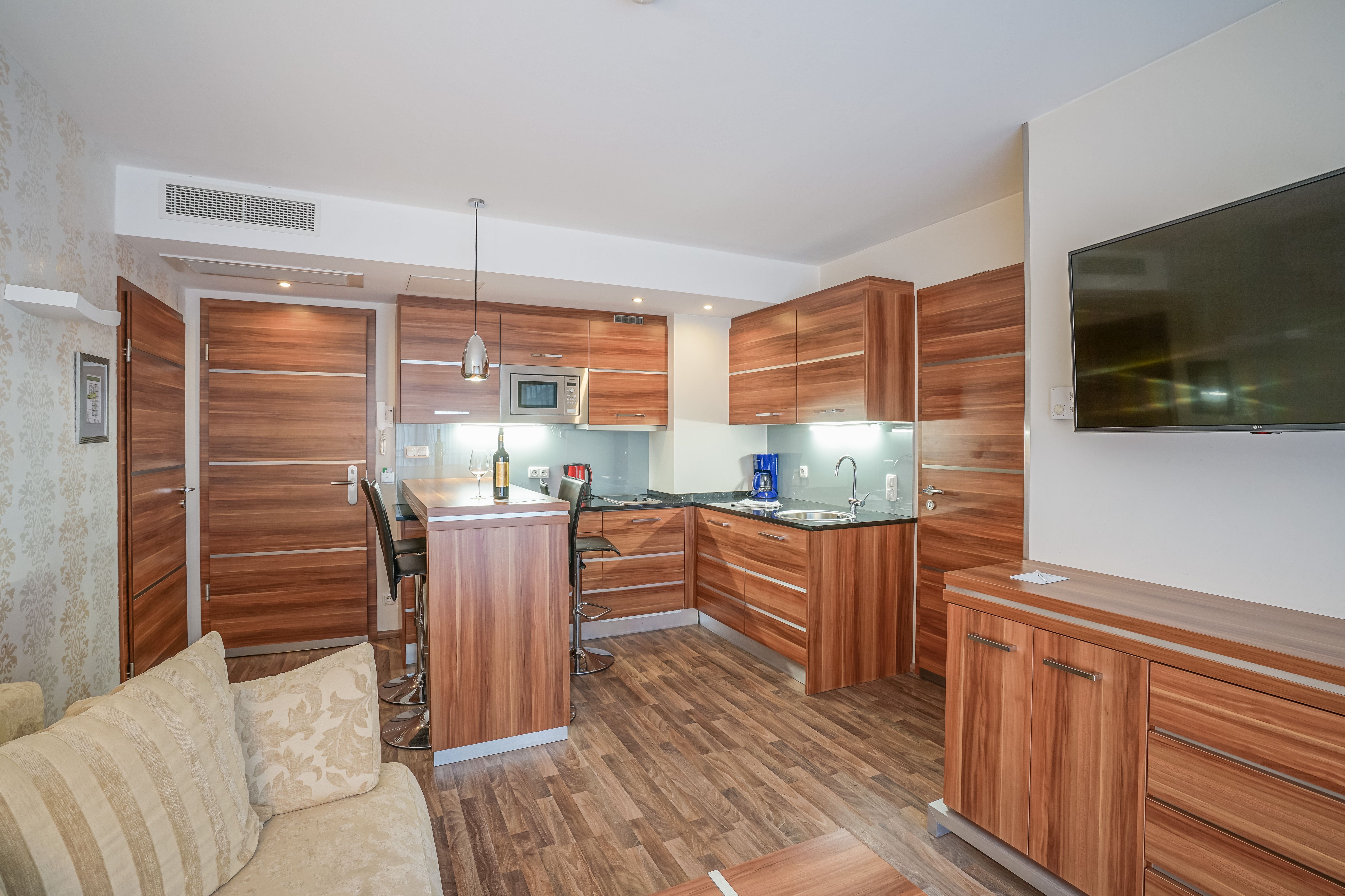 Die 40 qm großen Deluxe Apartments verfügen über einen kombinierten Schlaf- und Wohnraum sowie ein separates Kinderzimmer. Sie sind für maximal zwei Erwachsene und zwei Kinder bis 16 Jahre ausgelegt. Zu den Deluxe Apartments gehört jeweils entweder ein Balkon oder eine Terrasse.