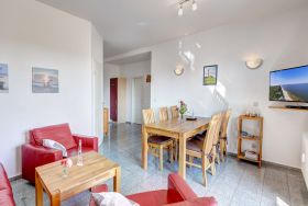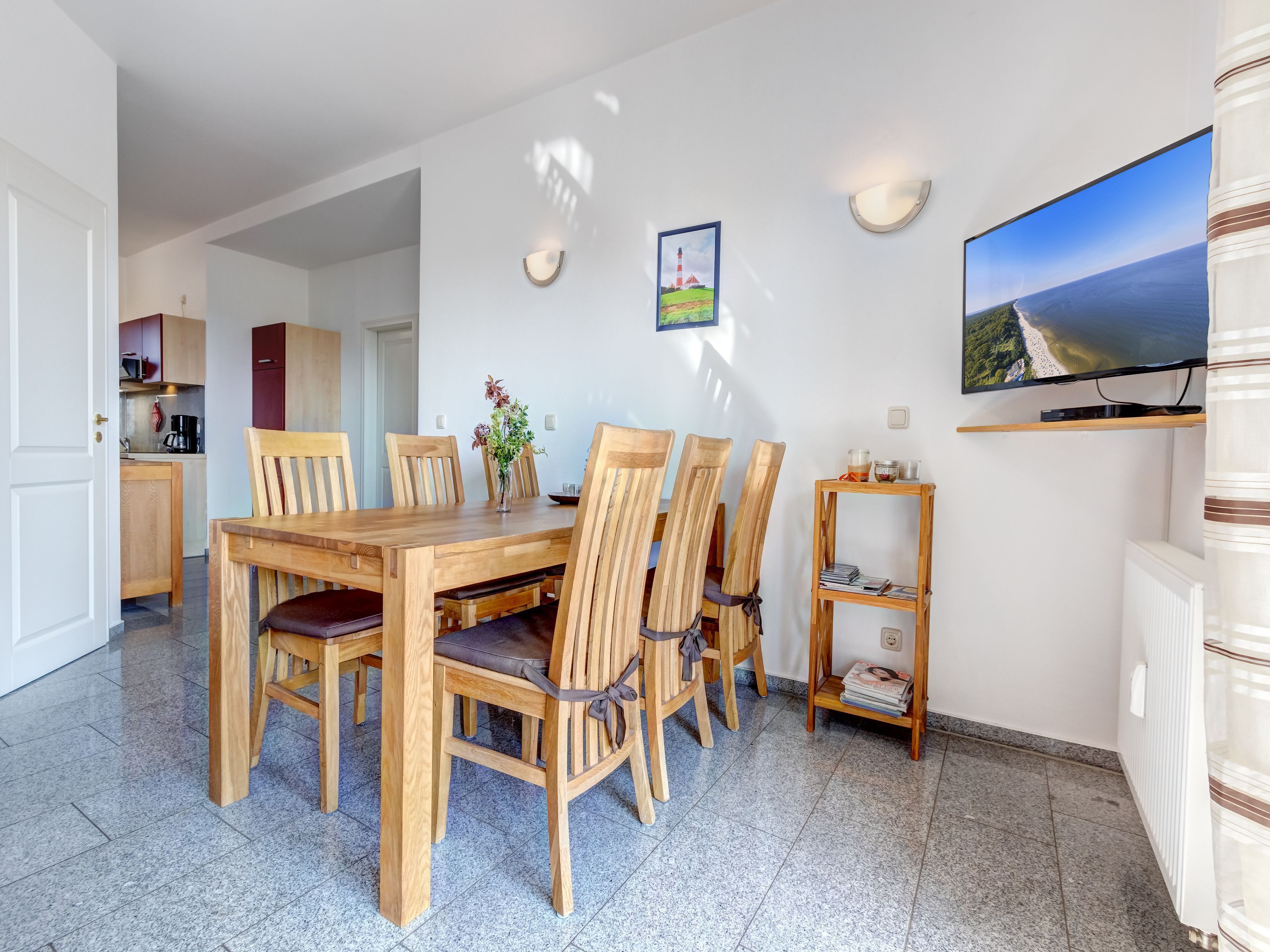 Die liebevoll eingerichtete Nichtraucher-Ferienwohnung erwartet Sie mit 2 Schlafzimmern und einem großen Wohnzimmer mit Esstisch und einer bequemen Leder-Sitzgarnitur.