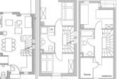 Die 5-Raum-Wohnung ist aufgeteilt in Küche, Wohnzimmer und Gäste-WC im Erdgeschoß, sowie eine möblierte Sonnenterrasse. Über die Treppe kommen Sie in das erste Obergeschoß mit zwei Schlafzimmern und einem Badezimmer mit Dusche, WC und Waschmaschine.