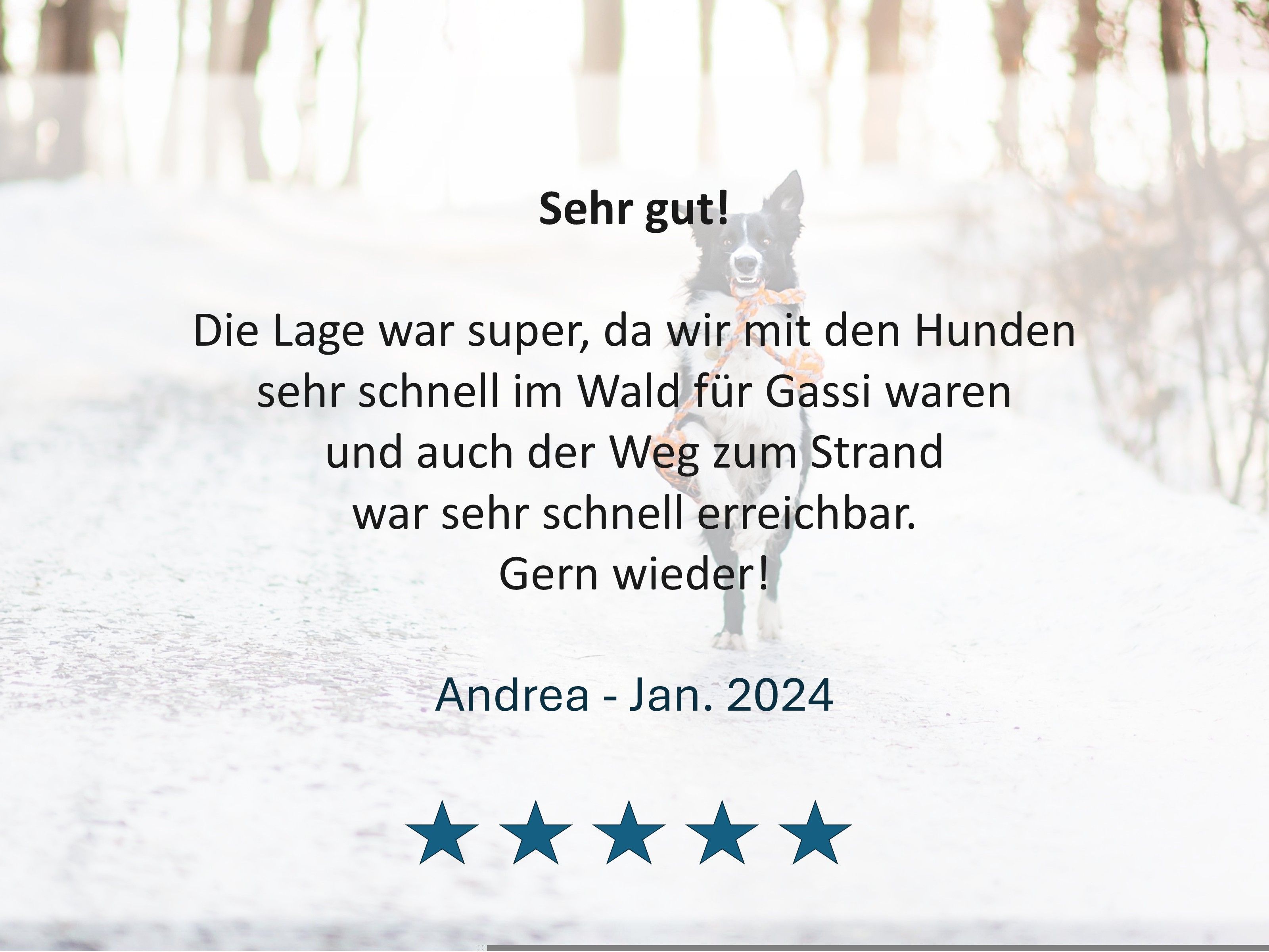 Bitte beachten Sie, dass für Ihren Aufenthalt eine Kaution zu hinterlegen ist. Diese ist zusammen mit der Restzahlung fällig, dient als Sicherheit und wird Ihnen selbstverständlich nach ordnungsgemäßer Rückgabe der Unterkunft erstattet.