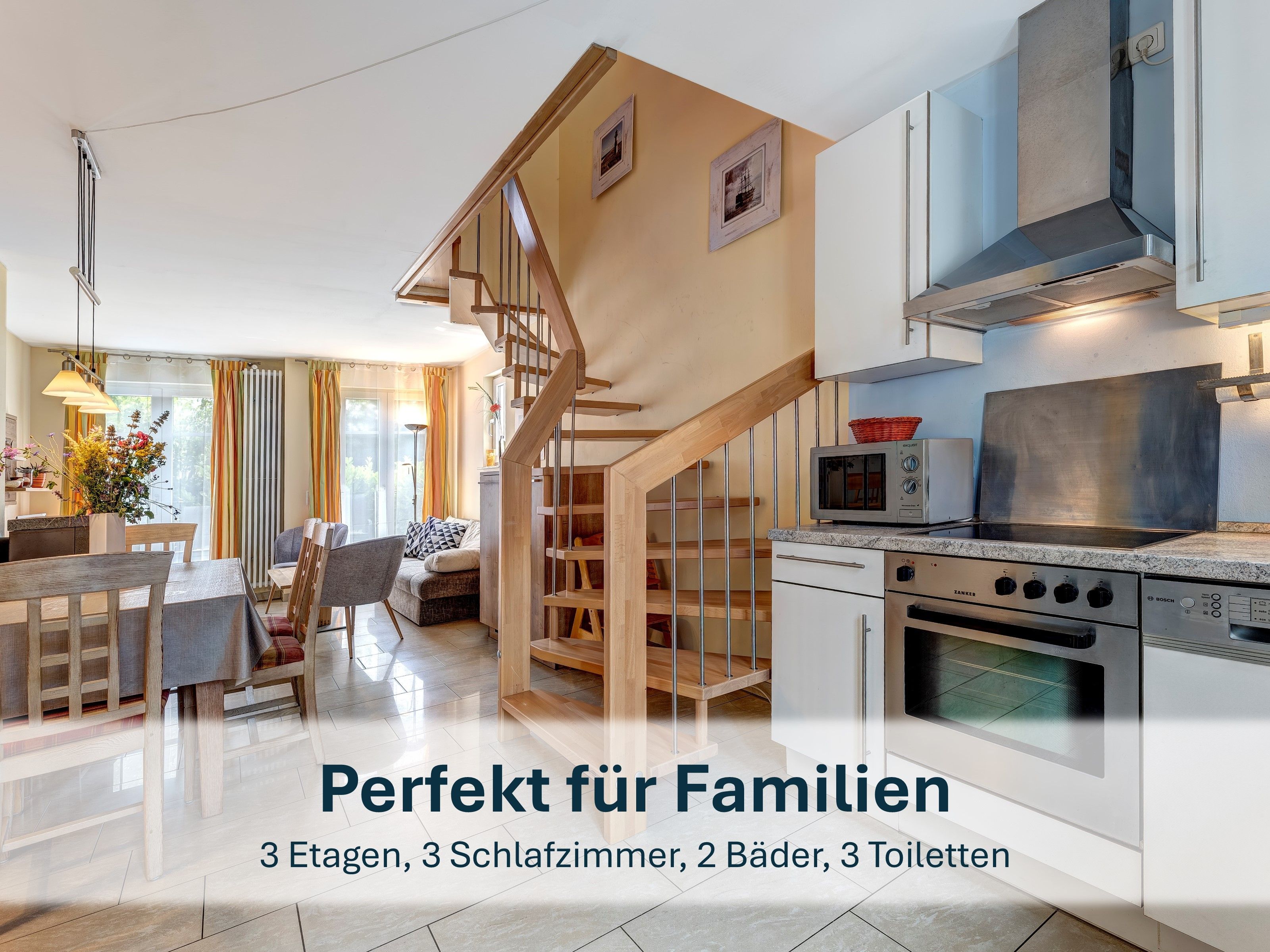 Eine Doppelhaushälfte über drei Etagen, nur 300 Meter vom Strand entfernt.