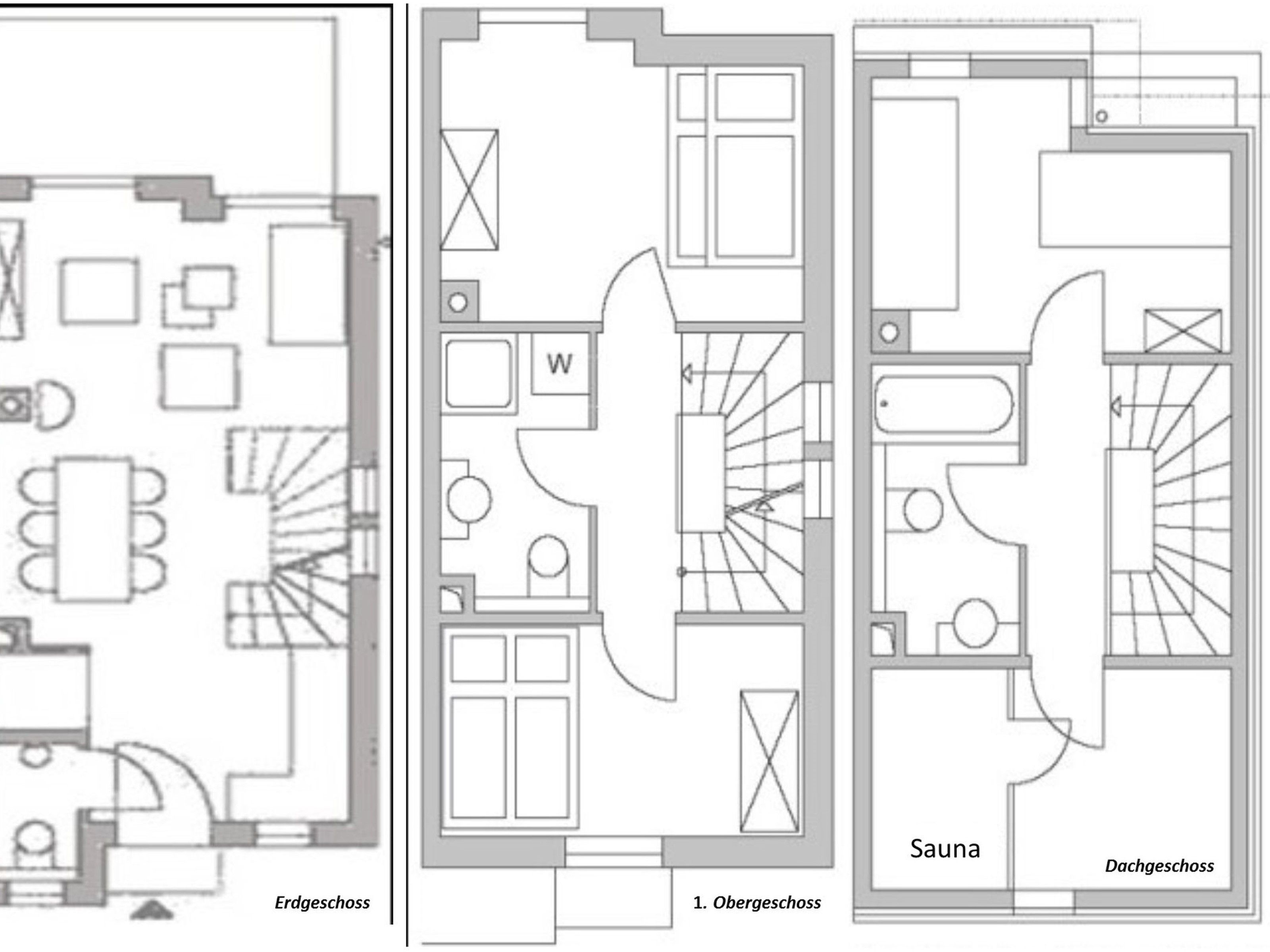 Das Dachgeschoß besteht aus einem Schlafzimmer mit zwei Einzelbetten, einem Badezimmer mit Wanne und WC und Ihrer privaten Sauna. Letztere ist im Preis inklusive, ebenso wie der Kamin und das WLAN.