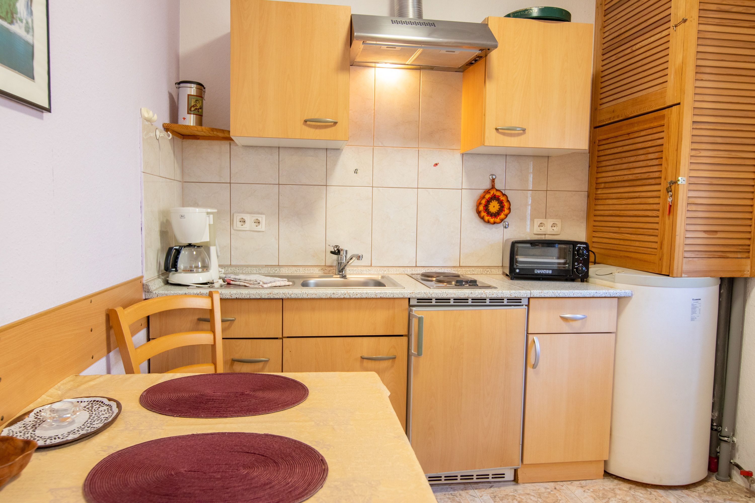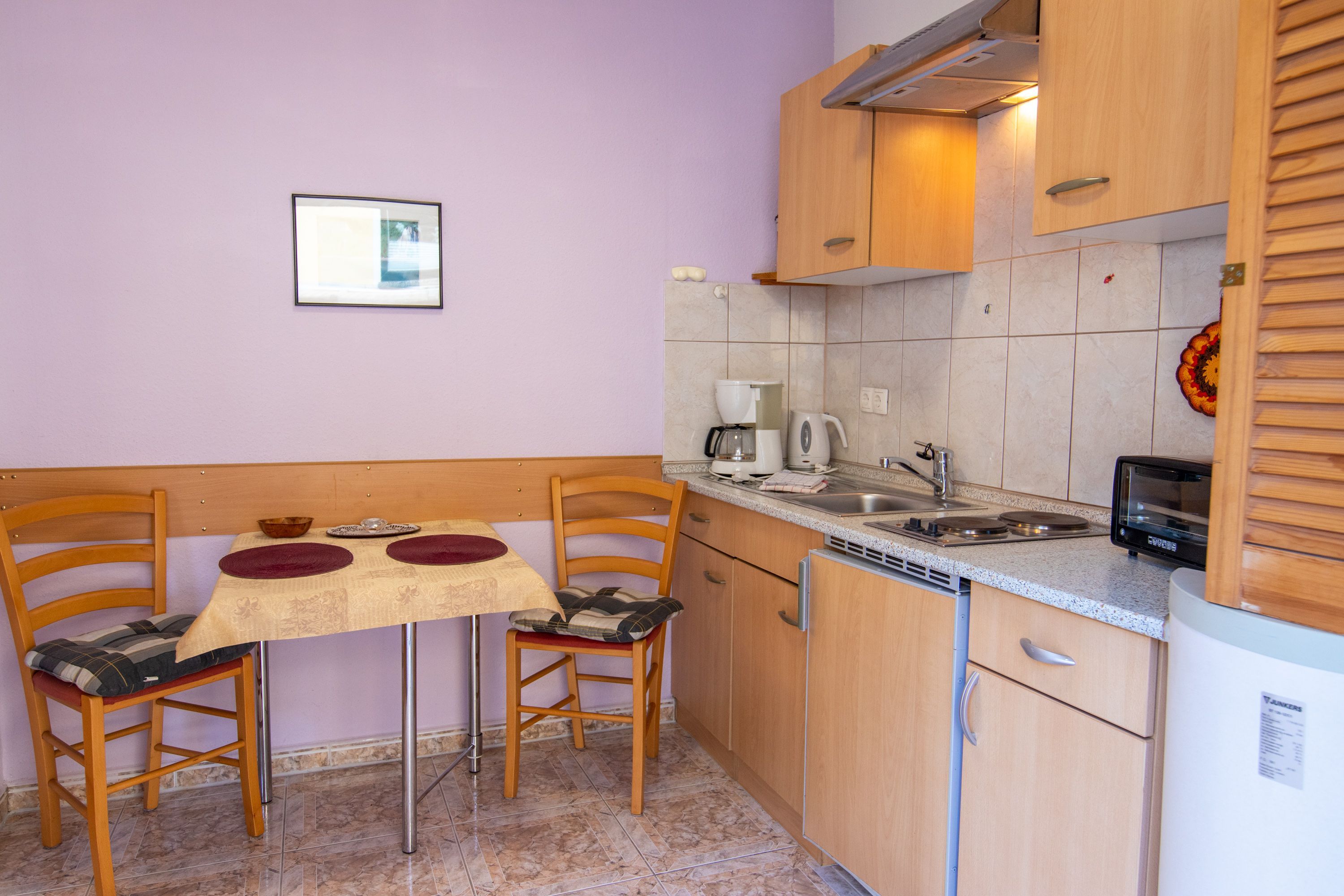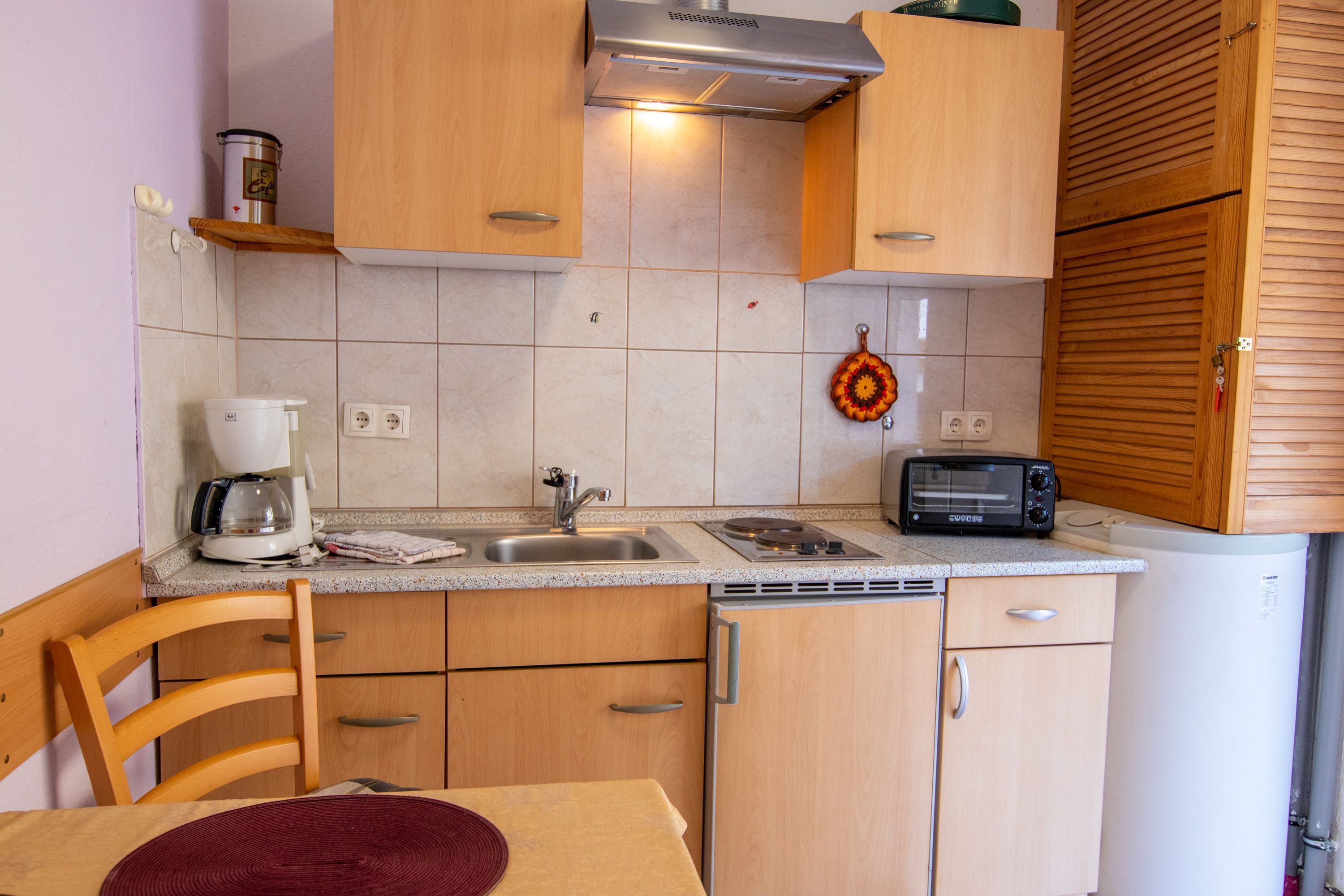 Der Bungalow 3 befindet sich auf dem Grundstück der Vermieter im Ostseebad Baabe und liegt direkt neben dem Bungalow 4. Mit jeweils 30 m² ist der Bungalow für 2 Personen geeignet und verfügt über ein kombiniertes Wohn-Schlafzimmer mit Doppelbett (180x200), TV und zwei Sesseln. Die Pantry-Küche ist mit einem Kühlschrank mit Gefrierfach, Minibackofen, Wasserkocher, Kaffemaschine, Toaster und einem Essbereich ausgestattet. Das Tageslicht-Bad verfügt über eine Dusche und WC.