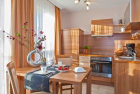Im Haus befinden sich 2- und 3- Zimmer Appartement von 40 - 85 qm. Einige der Wohnungen besitzen einen Kamin bzw. eigene Sauna. Im Haus gibt es eine behindertengerechte 3- Zimmerwohnung mit 75qm und zwei Bädern. Die Wohnungen sind mit großen Einbauküchen ausgestattet. Jede Wohnung hat eine große Terrasse bzw. einen Balkon. Ein KfZ-Stellplatz kann vor Ort angemietet werden bzw. steht im öffentlichem Bereich zur Verfügung.