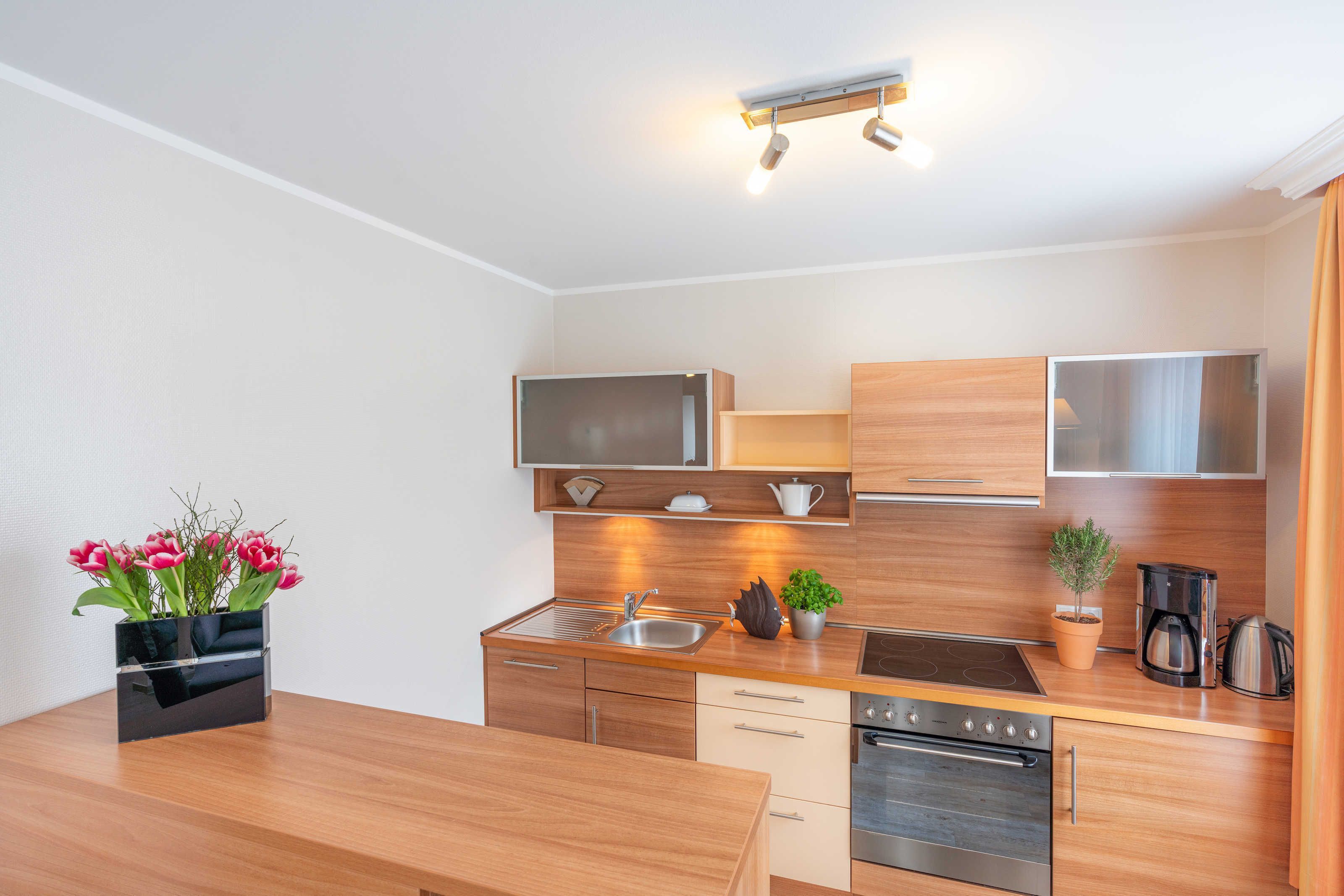Im Haus befinden sich 2- und 3- Zimmer Appartement von 40 - 85 qm. Einige der Wohnungen besitzen einen Kamin bzw. eigene Sauna. Im Haus gibt es eine behindertengerechte 3- Zimmerwohnung mit 75qm und zwei Bädern. Die Wohnungen sind mit großen Einbauküchen ausgestattet. Jede Wohnung hat eine große Terrasse bzw. einen Balkon. Ein KfZ-Stellplatz kann vor Ort angemietet werden bzw. steht im öffentlichem Bereich zur Verfügung.