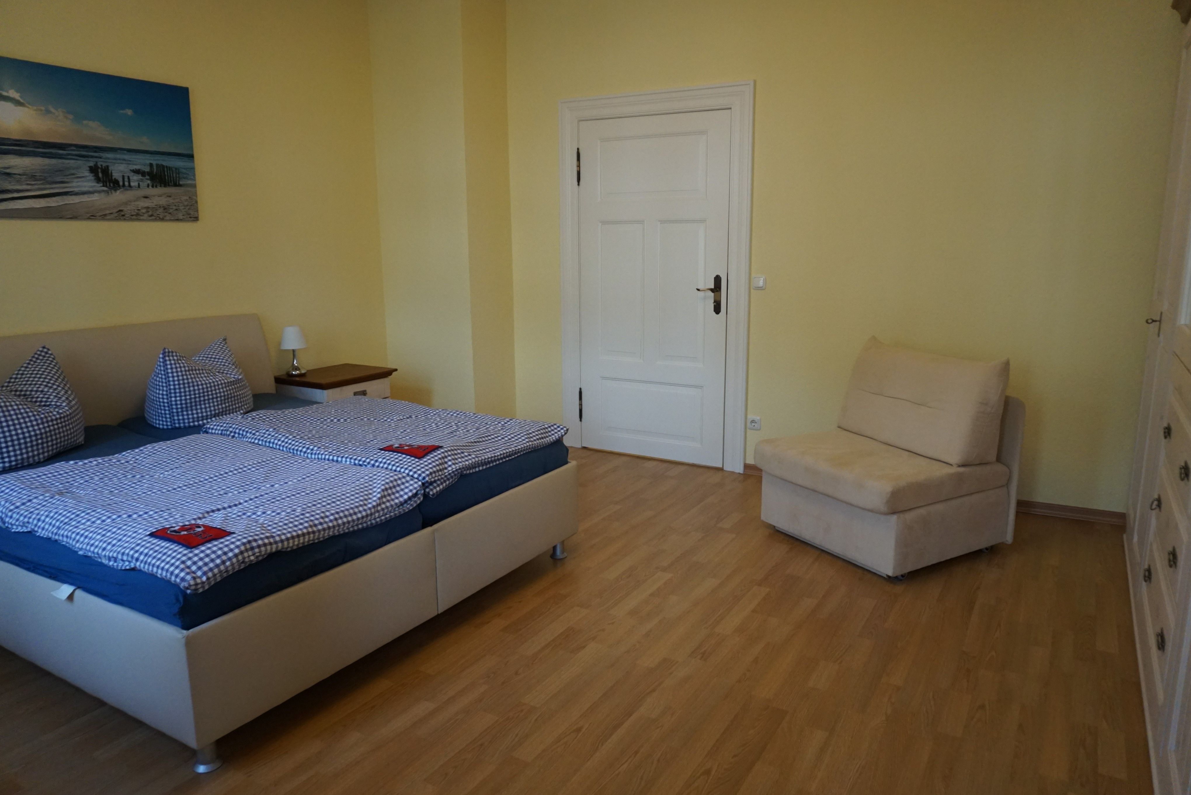 Die Ferienwohnung Usedom im Erdgeschoß ist mit 74m² sehr geräumig. Für ein gutes Wohnklima sorgt die Deckenhöhe in der Villa von 3,50m. Die Wohnung verfügt über eine voll ausgestattete Küche mit Geschirrspüler, Herd, Kühlkombination, eine große Diele, ein Abstellraum, ein Bad mit ebenerdiger Dusche, ein großes Schlafzimmer mit Doppelbett und einem großen Kleiderschrank, sowie einem Schlafsessel. Ein gemütliches Wohnzimmer mit großer Ledercouch mit Schlaffunktion, welche 1,60m breit ist und eine Komfortmatratze besitzt. Zusätzlich finden Sie einen Essbereich, eine große Veranda mit Stil der Bäderarchitektur zum Relaxen. Draußen gibt es Terrasse für Sie. Ein Parkplatz befindet sich direkt hinter der Villa Usedom Glück.