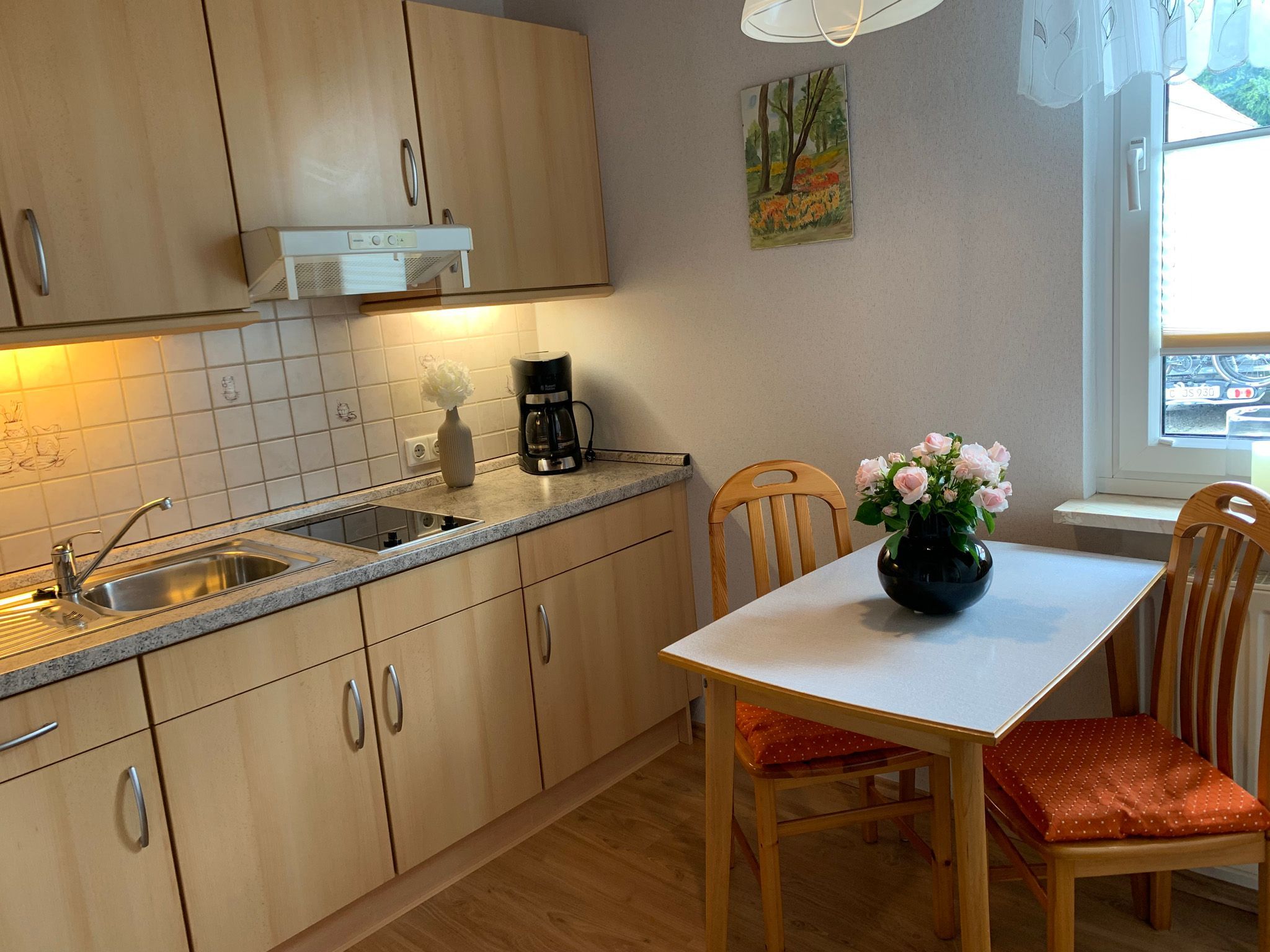 • offene, gut ausgestattete Küche mit Sitzgelegenheit