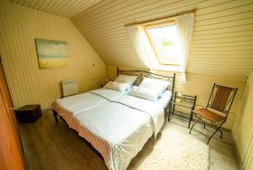 Ferien-Reihenhaus mit ca. 60 m² Wohnfläche, aufgeteilt in: Wohnraum mit Essbereich, SAT-TV, Radio mit CD, Infrarot-Elektroheizung; 1 Schlafraum mit Doppelbett, 1 Schlafraum mit 2 Einzelbetten; separate, voll ausgestattete Küche mit Geschirrspüler; Bad mit Dusche/WC; möblierte Terrasse mit Gartenliegen, Sonnenschirm und Grill; Parkplatz am Haus; Hochstuhl und Reise-/Kinderbett vorhanden. Stromkosten werden nach Verbrauch berechnet (0,35Euro/kWh).