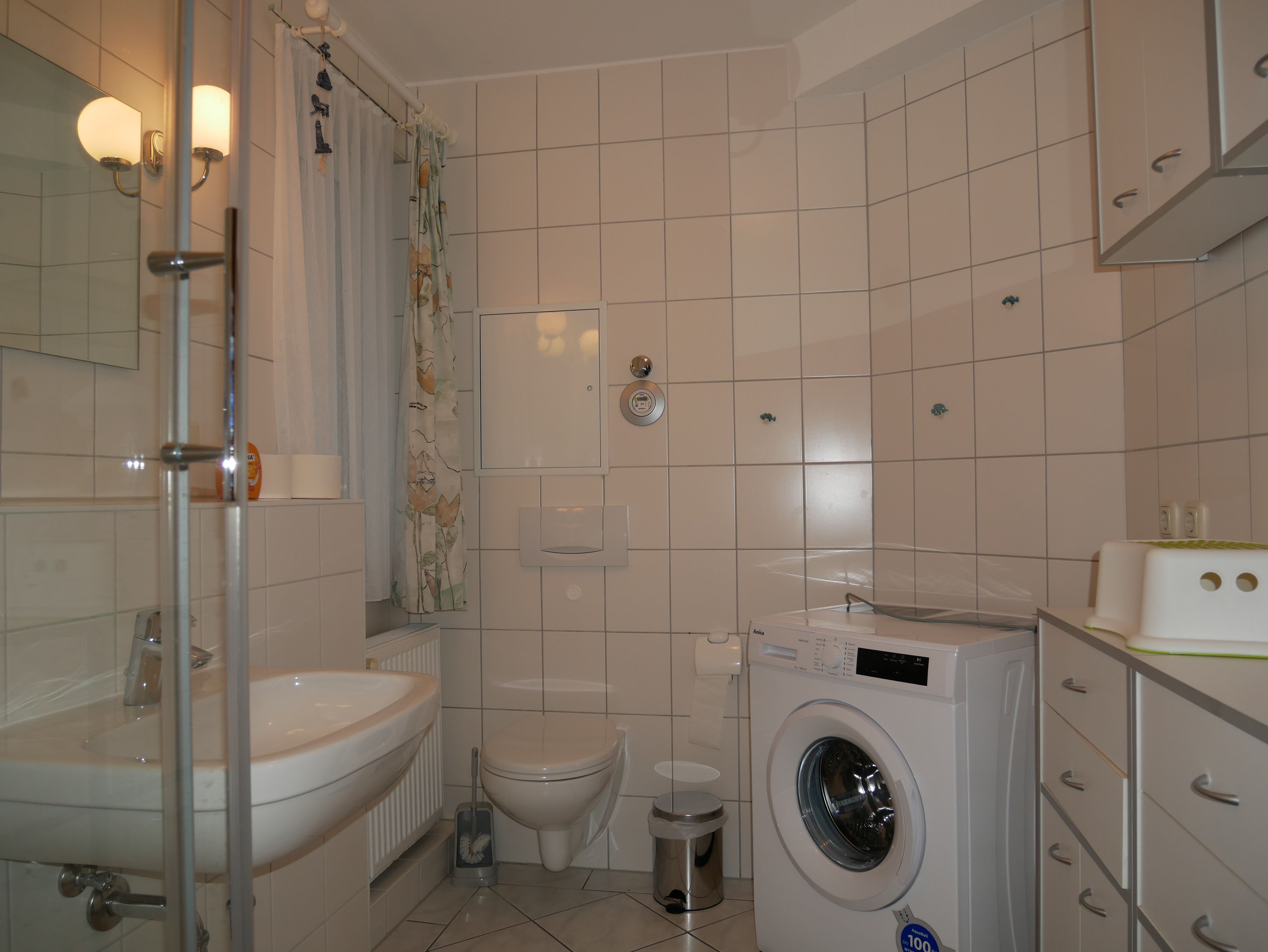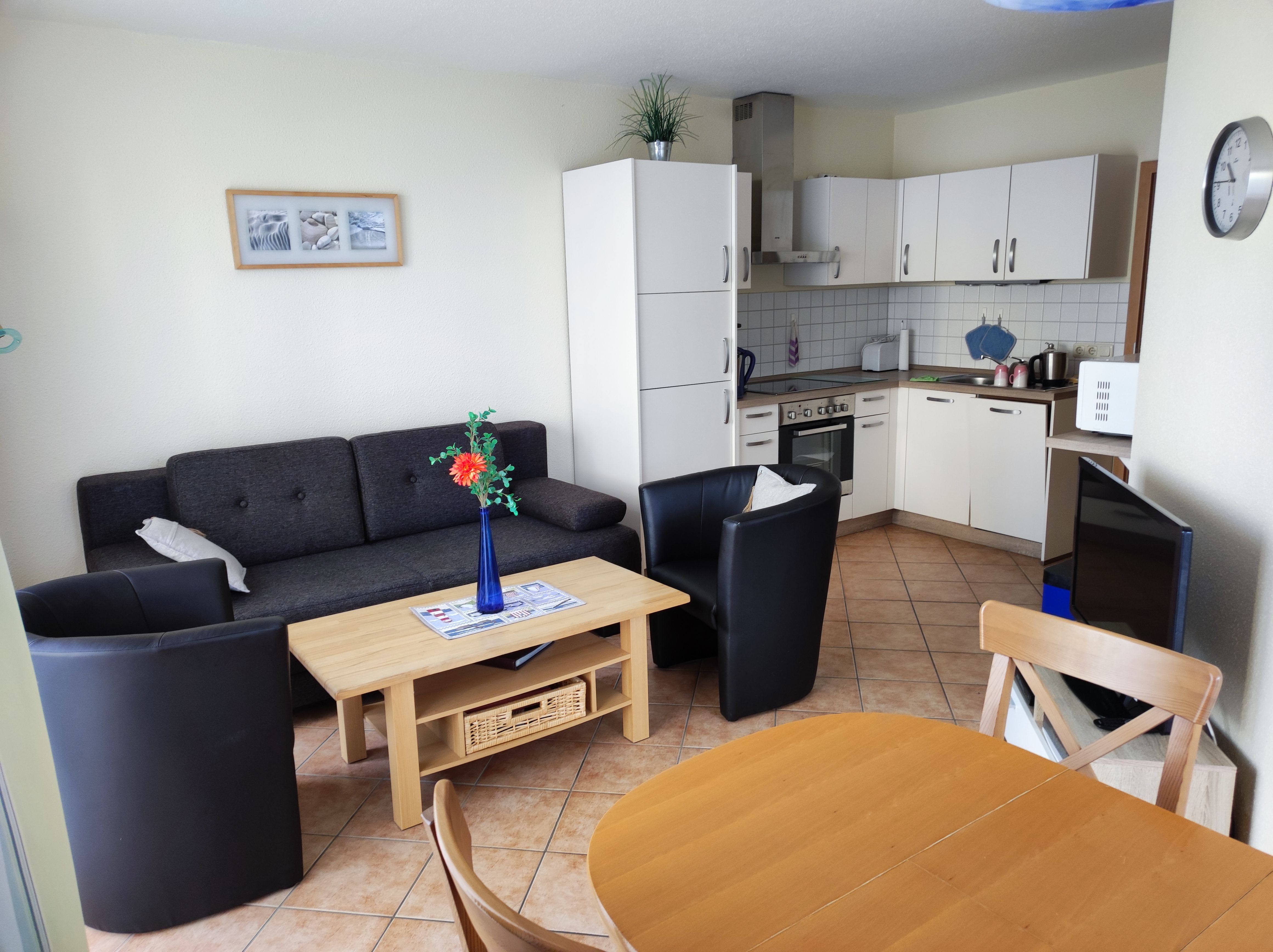 Die Wohnung ist komfortabel ausgestattet: Im Schlafzimmer finden Sie einen TV, im Wohnzimmer einen Smart-TV, eine Stereo-Anlage mit Radio und CD-Player. Die Küche ist voll ausgestattet mit einem 4-Platten-Cerankochfeld, Elektro-Ofen, Geschirrspüler, Kühl-/Gefrierschrank, Mikrowelle, Wasserkocher, Kaffeemaschine und Toaster. Für Ihre Wäsche steht eine Waschmaschine bereit.