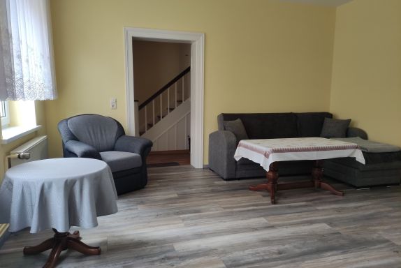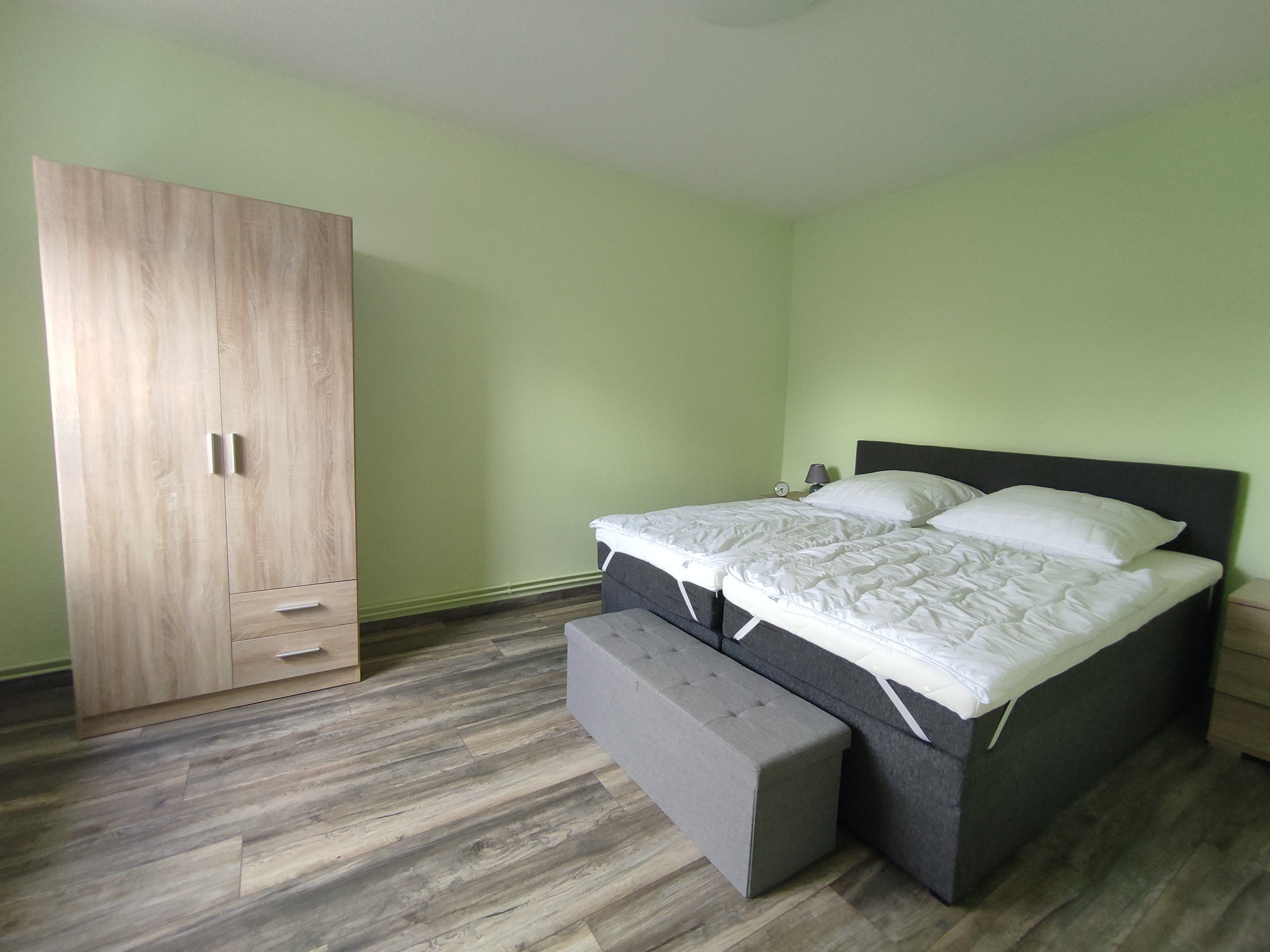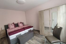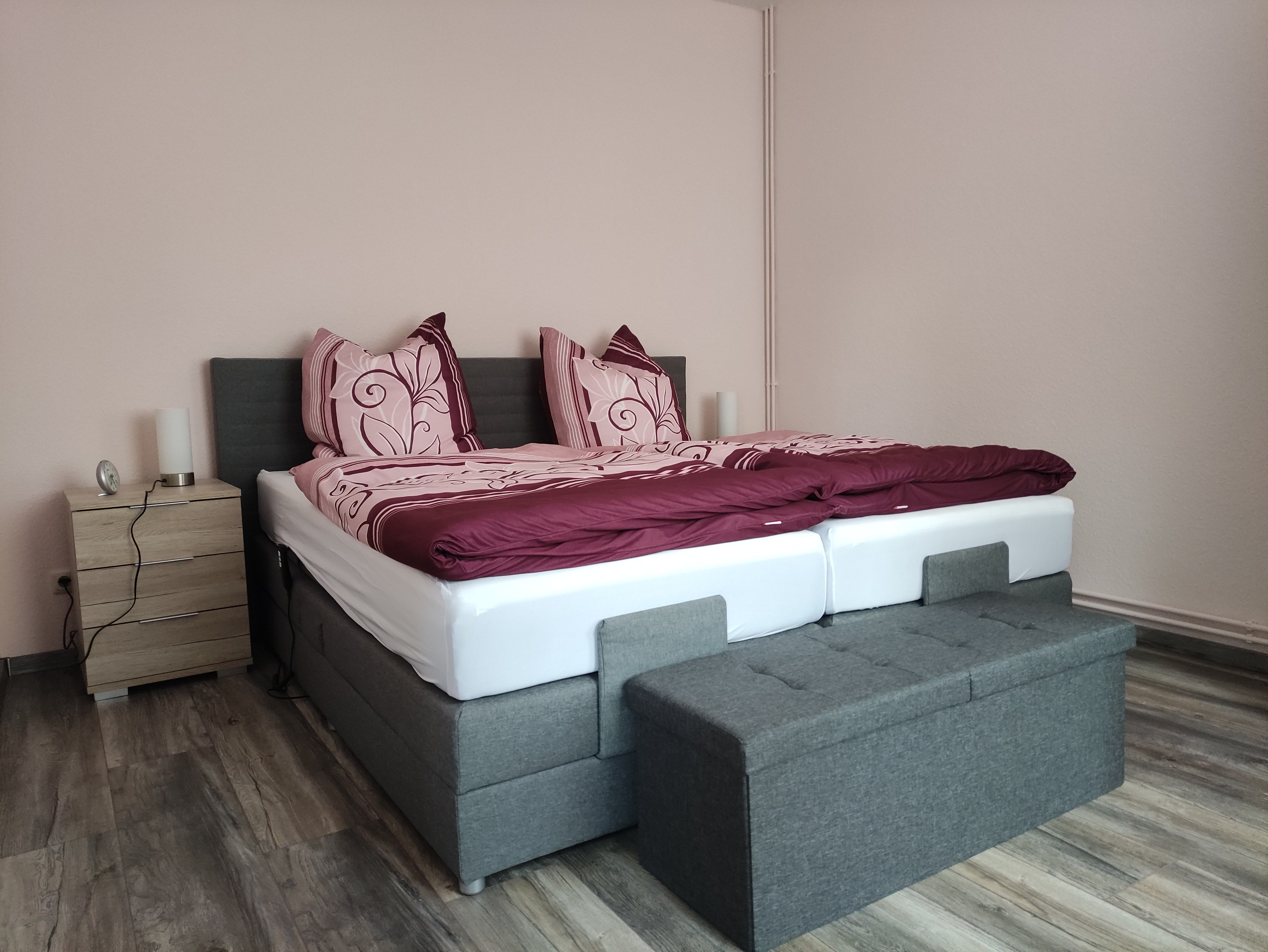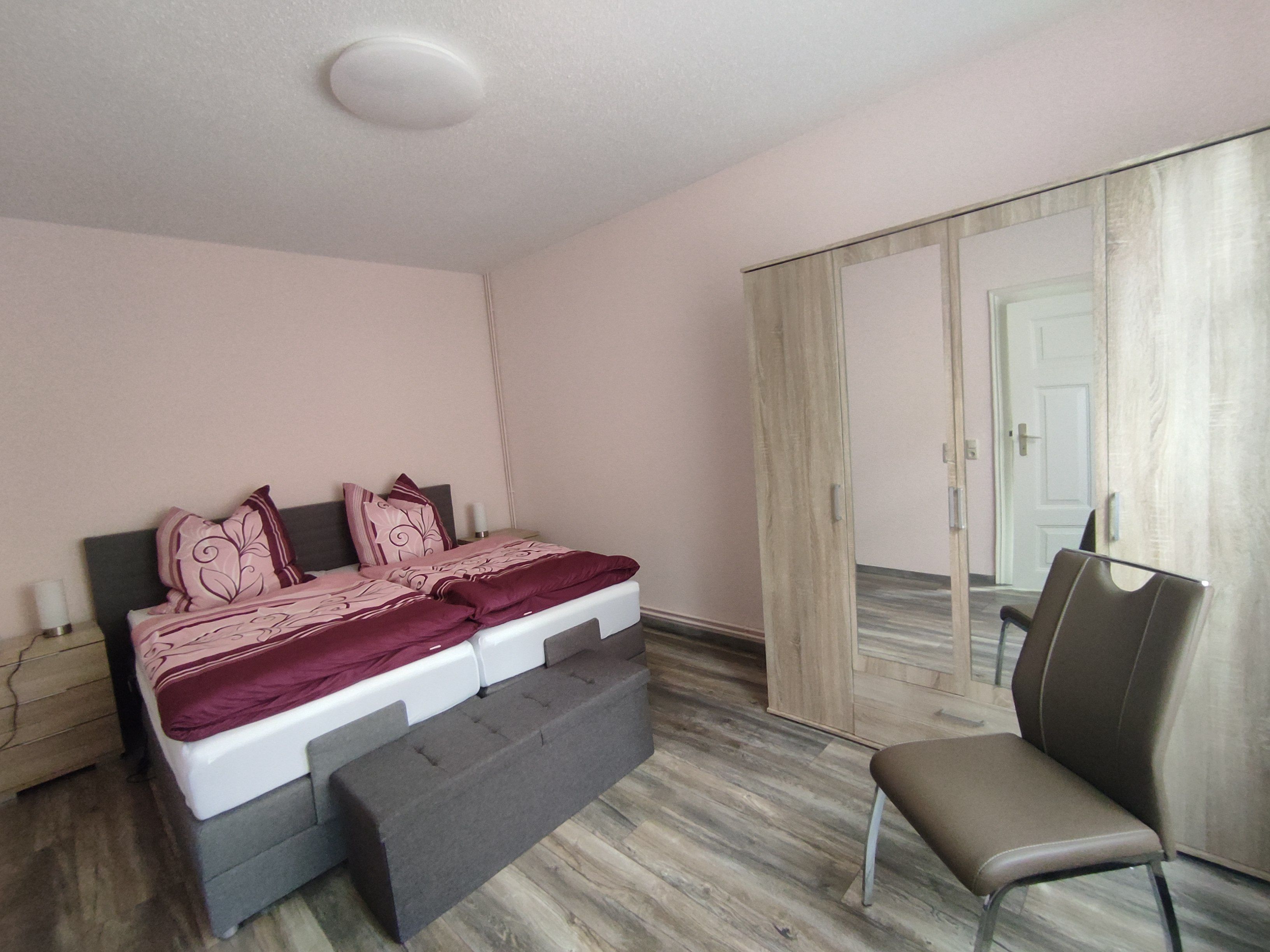 Die Ferienwohnung mit separatem Eingang befindet sich im Privathaus des Vermieters. Zur Wohnung gehören ein geräumiges Wohnzimmer mit Sitzecke und 2 TV, zwei separate Schlafzimmer jeweils mit bequemen Doppelbett, eine komplett ausgestattete moderne Küche mit Eßplatz sowie ein Badezimmer mit Badewanne und Dusche. Auf dem weitläufigen Grundstück gibt es im Außenbereich einen Sitzplatz für Gäste, einen kostenfreien Parkplatz sowie eine Unterstellmöglichkeit für Fahrräder. Das Rauchen ist nur im Außenbereich gestattet.