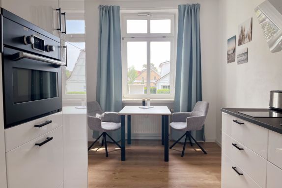 • Küche: gemütlicher Essbereich für zwei Personen, neue Einbauküche mit Induktionskochfeld, Backofen und Mikrowellenkombi, Toaster, Bodum Kaffeeaufbereiter, Kaffeefilteraufsatz, elektrischer Milchaufschäumer, Wasserkocher, Kühlschrank mit Gefrierfach und Geschirrspülmaschine