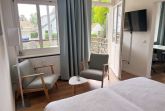 • Wohn-/Schlafzimmer: Doppelbett 180x200cm mit zwei Matratzen, Nachttische mit Leselampe und integrierter USB- Ladestation, Kleiderschrank, 2 bequeme Sessel mit Couchtisch, schwenkbarer Flachbildfernseher, Radio