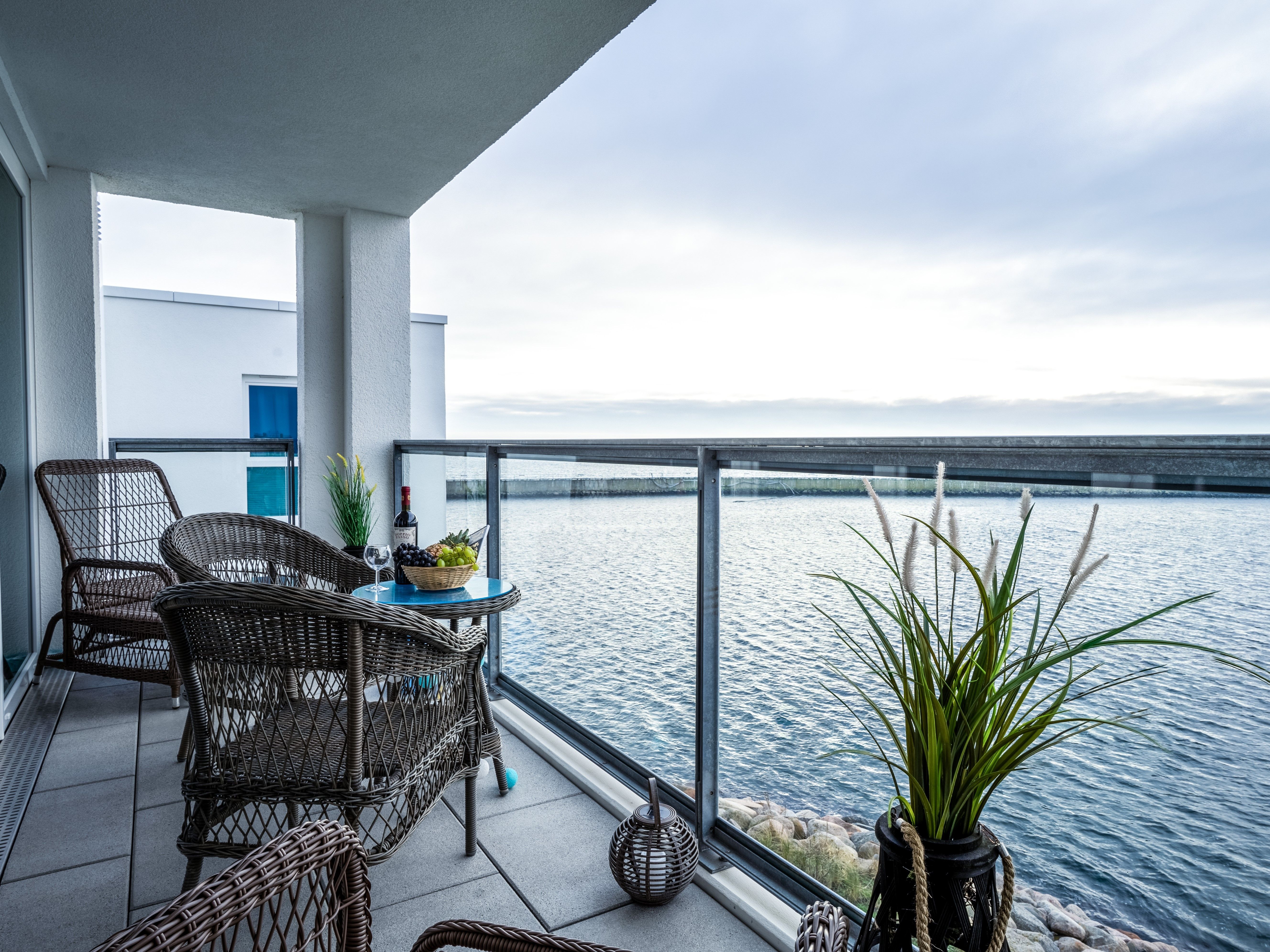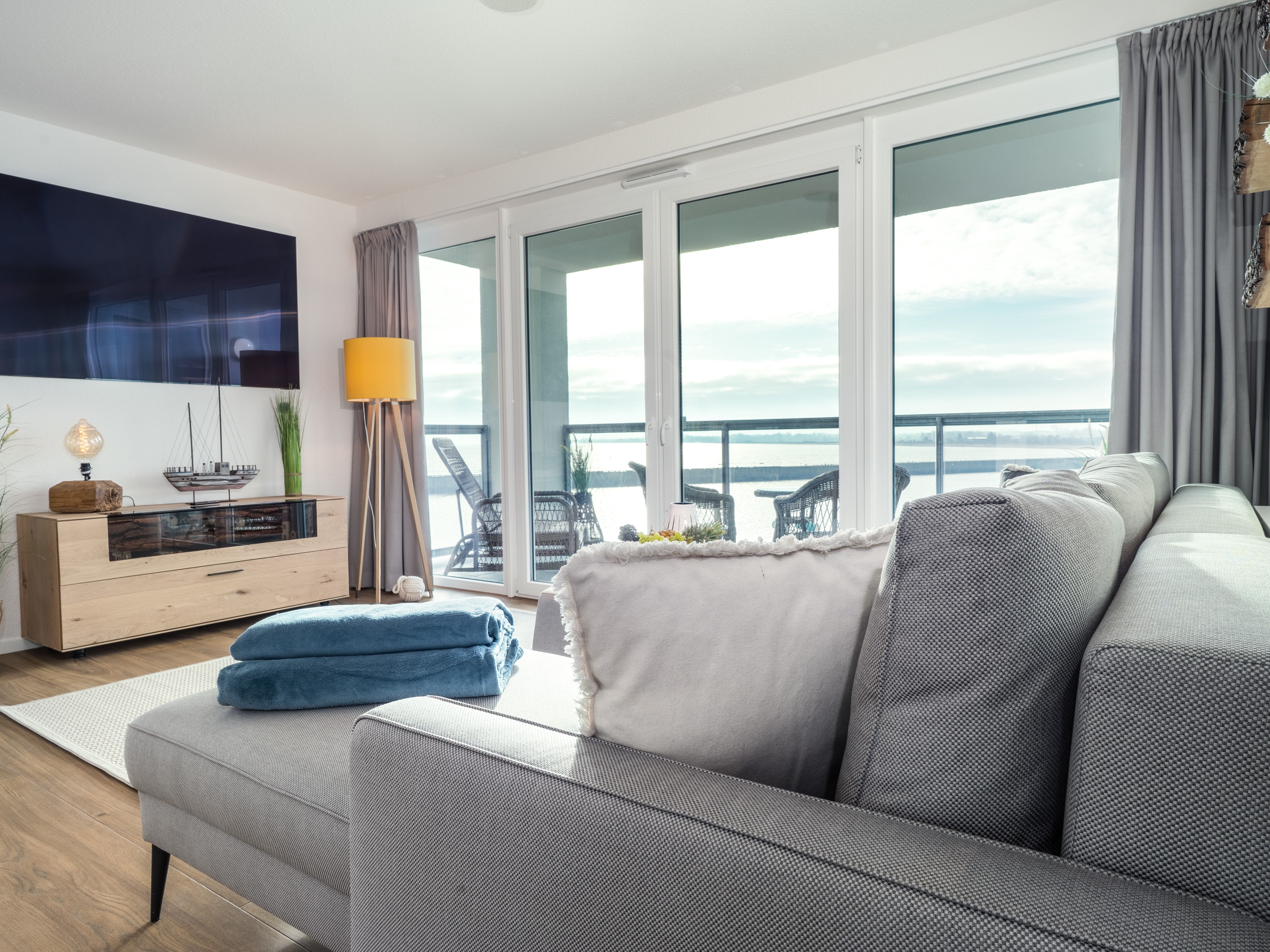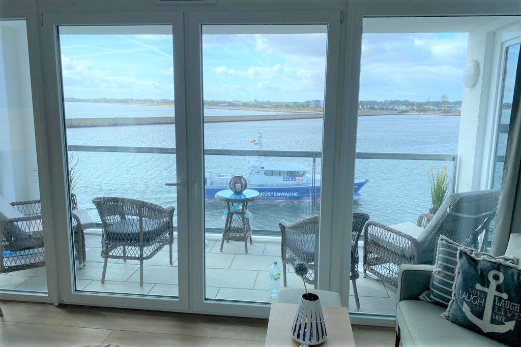 Das lichtdurchflutete, mit bodentiefen Panoramafenstern ausgestattete Ferienapartment „Waterkant“ befindet sich direkt auf der Ostsee und ist Richtung Osten, Süden und Westen ausgerichtet. Ein Meerblick in 1. Reihe. Diese traumhafte Konstellation gewährleistet unzählige Sonnenstunden mit Blick auf die Ostsee, den Hafen und den Sandstrand.