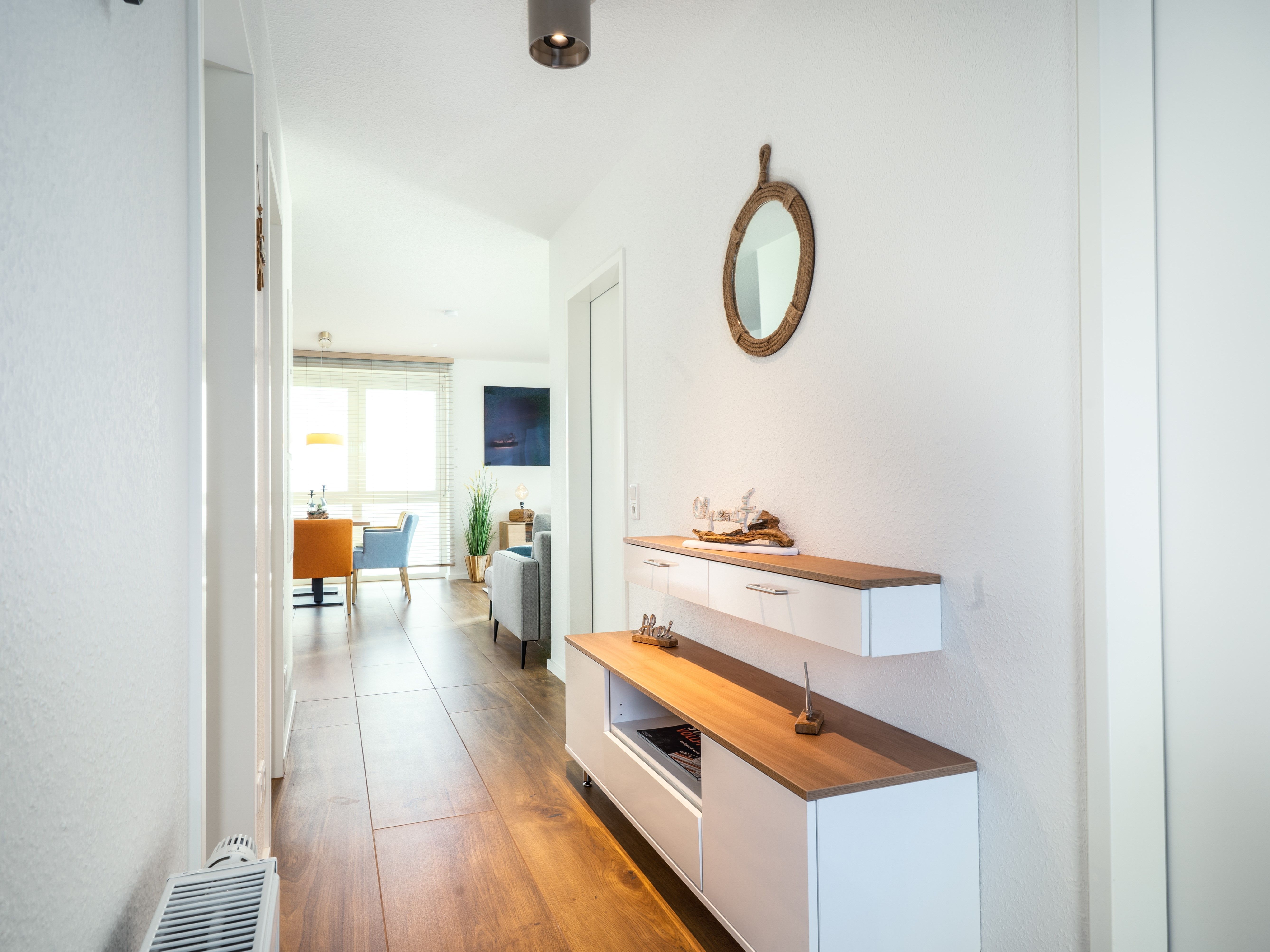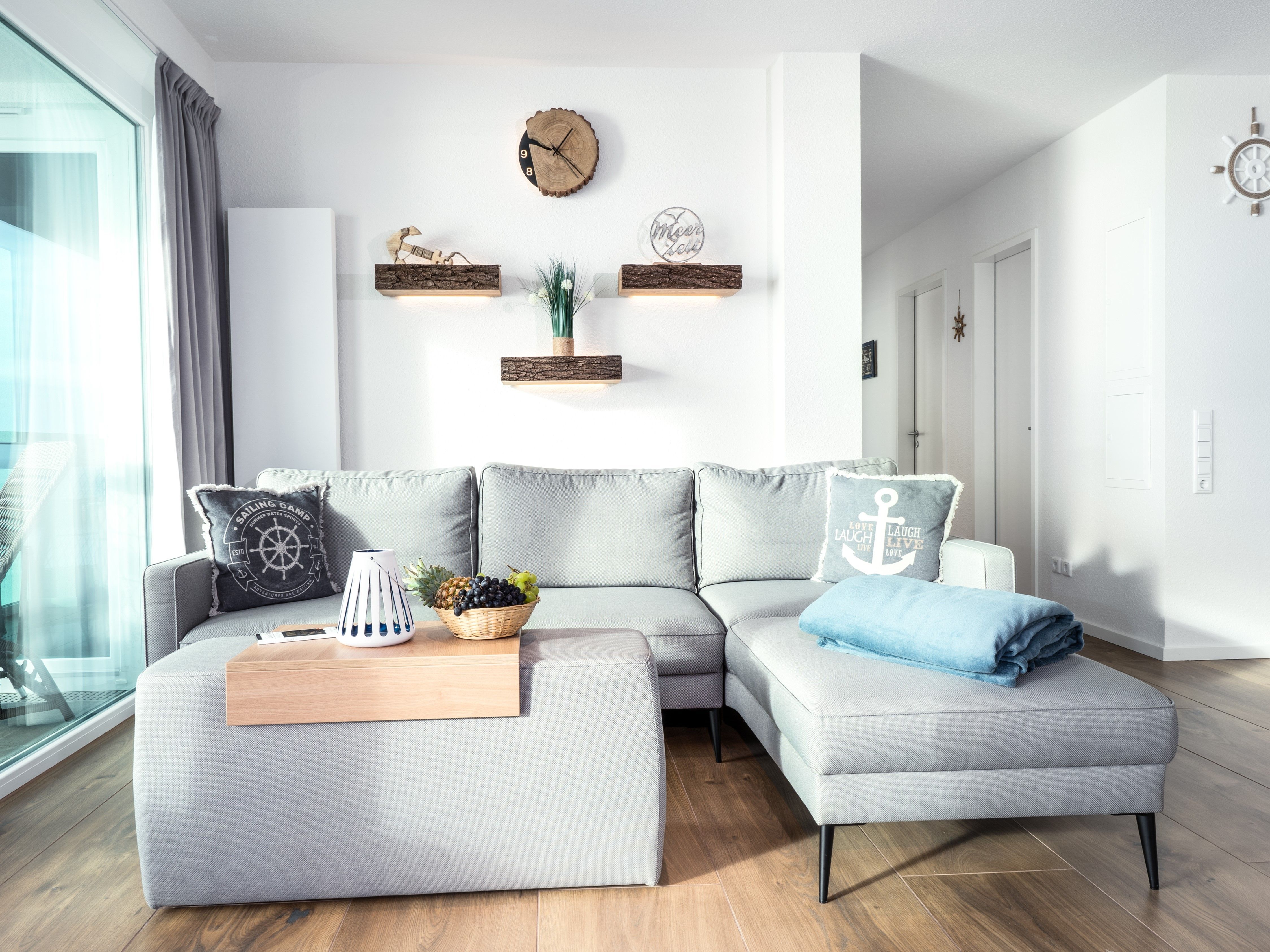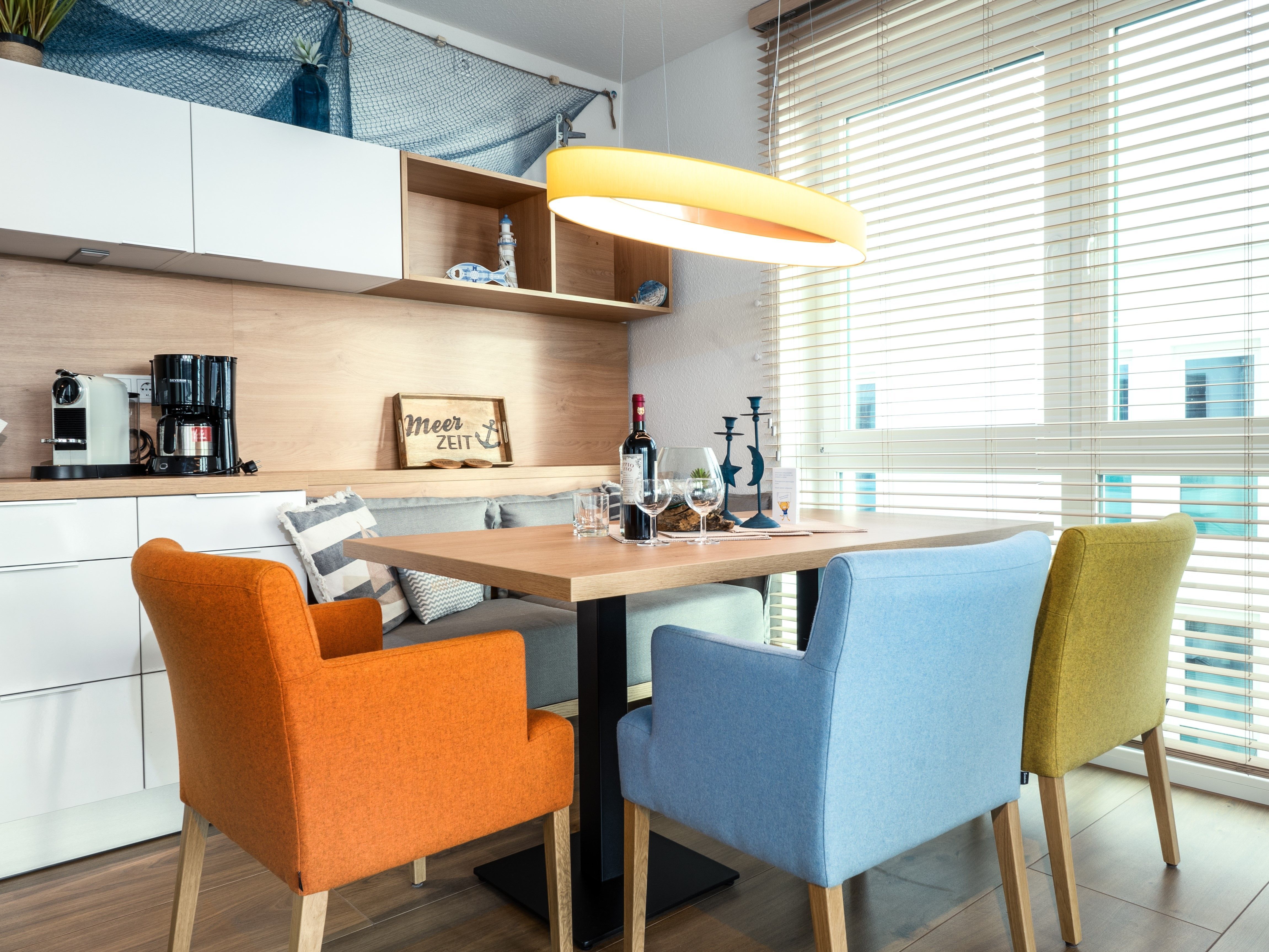 Das „Waterkant“ Apartment besitzt eine großzügige Loggia und lässt den Sonnenuntergang und das Treiben des Hafens für jedermann zum festen Bestandteil am Abend werden. Der direkt an das Wohnzimmer angrenzende Essbereich bietet eine offene Einbauküche im gehobenen Standard und Zugang auf die angrenzende Loggia. In welche Richtung man auch schaut, es ist einfach immer ein einzigartig traumhaftes Erlebnis. An der Waterkant wird ein unvergesslicher und erholsamer Urlaub garantiert. Vom Wohnzimmer aus gelangt man über den Flur in die einladenden Schlafzimmer mit einem herrlichen Meerblick. Besonders an Sommertagen ist das Lichtspiel des Himmels zum Abend hin wunderschön und der Sonnenuntergang ist an diesem Standort mit keinem anderen Ort zu vergleichen. Durch die großen Fensterflächen gelangt sehr viel Licht in jedes einzelne Zimmer, sodass diese zu jeder Tageszeit hell und einladend wirken und dem Bewohner sofort ein Gefühl von Urlaub vermitteln.