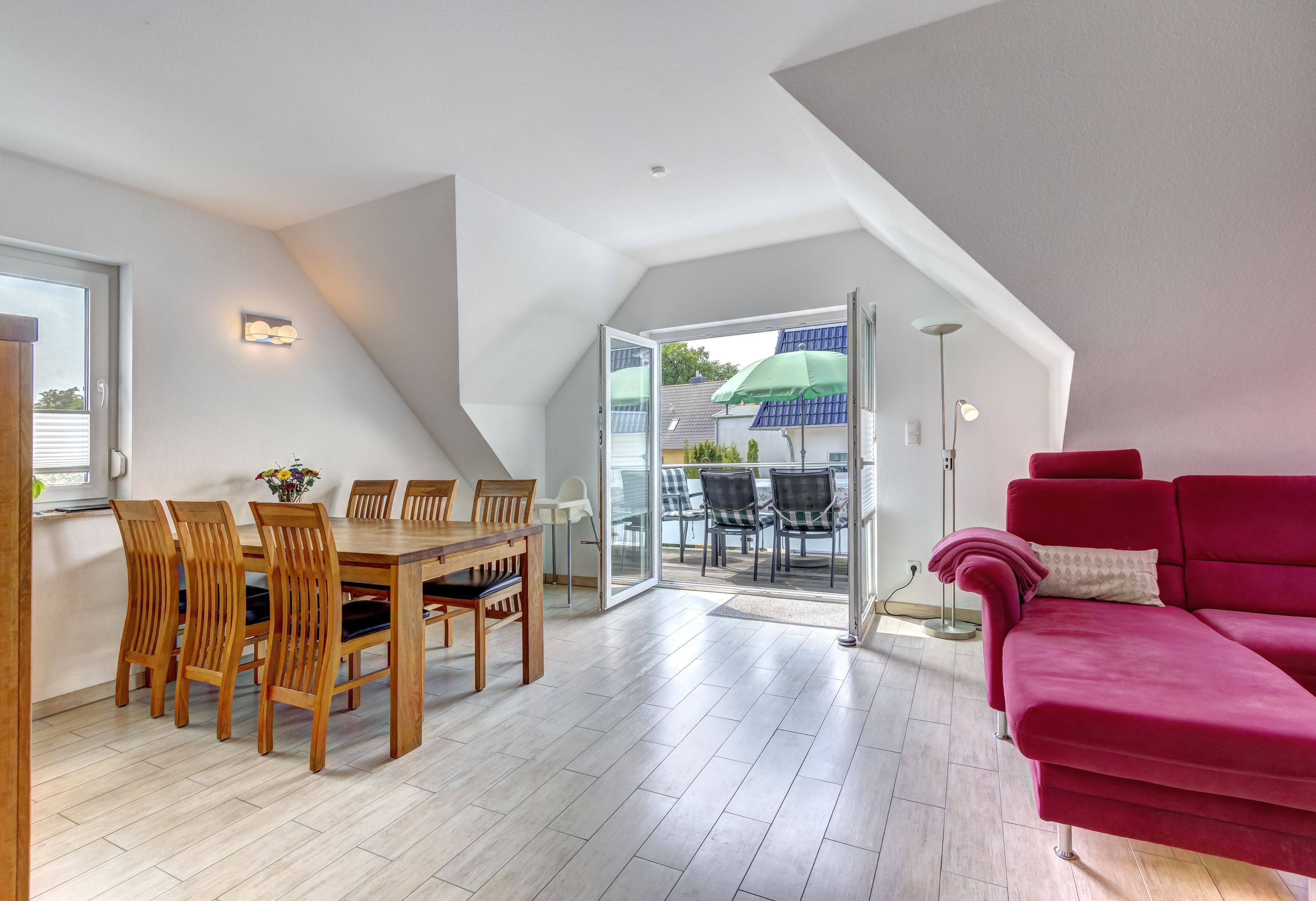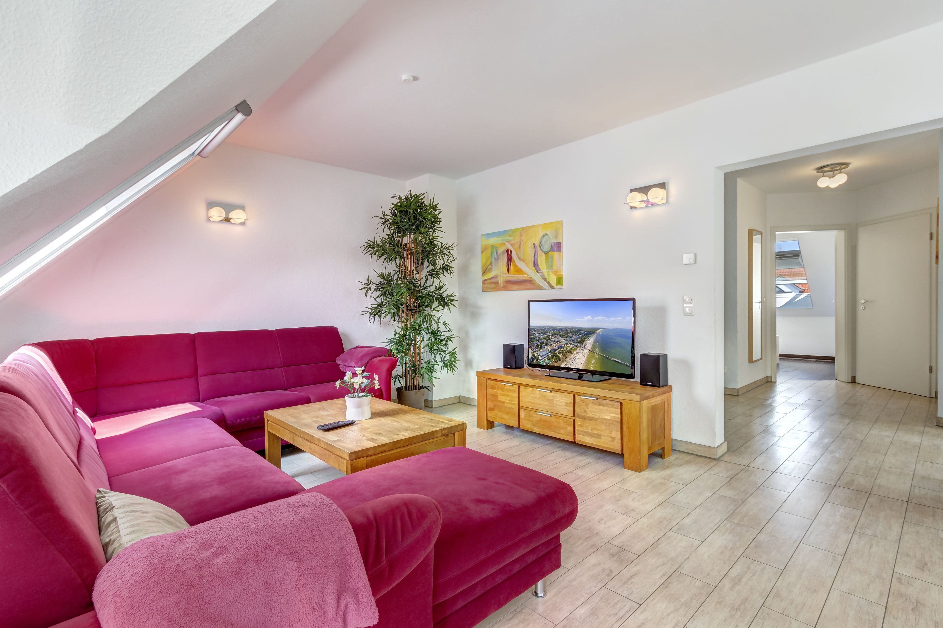 Nur wenige Gehminuten vom Ostseestrand entfernt erwartet Sie diese helle, 110m² große Ferienwohnung ideal für bis zu 6 Personen + 1 Kleinkind. Die modern eingerichtete Maisonette über zwei Etagen bietet viel Komfort und Raum für Familien oder Freunde.
