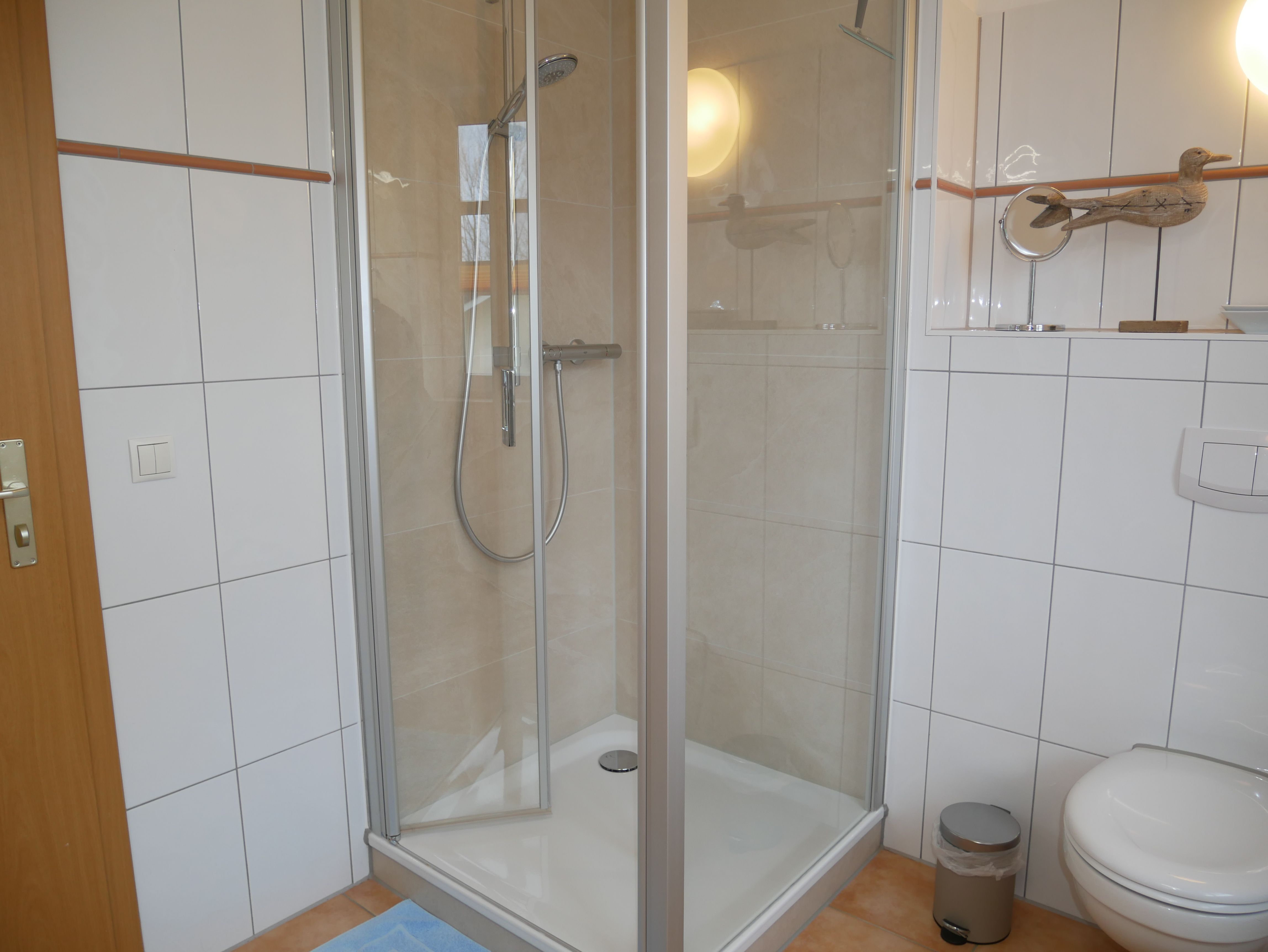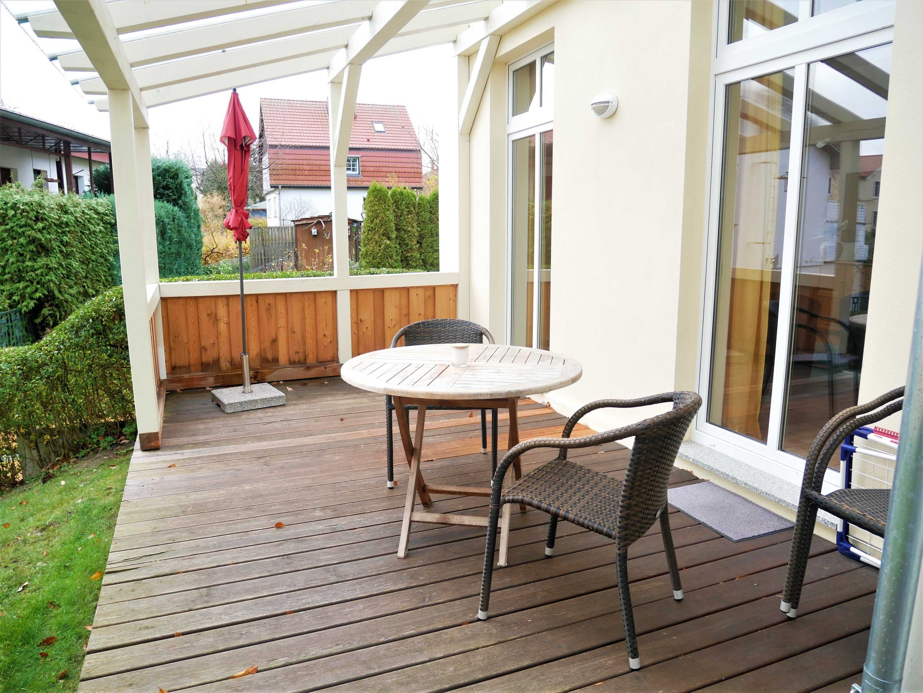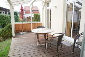 Für die schönsten Tage im Jahr bieten wir Ihnen unsere ansprechende Ferienwohnung mit modernem Komfort und Platz für bis zu 4 Personen. Die individuell ausgestattete 3 Raum Ferienwohnung (59 qm) in der Dependance (Ostseevilla Gartenhaus; links) geht über zwei Etagen (Eingang Erdgeschoß, über Treppe ins 1. Obergeschoß, die Treppe ist mit einem Treppenschutzgitter gesichert) und verfügt über einen separaten Eingang.