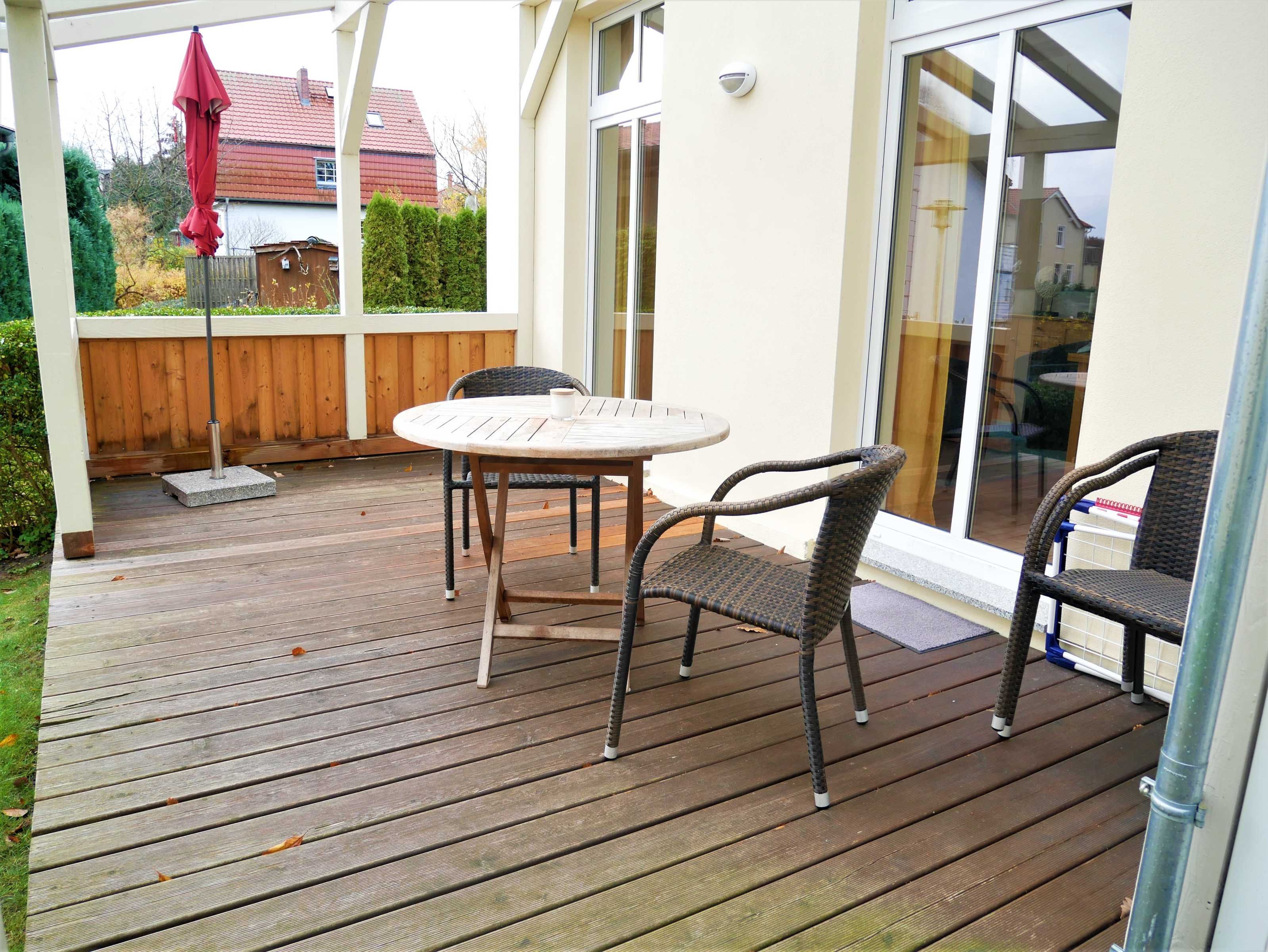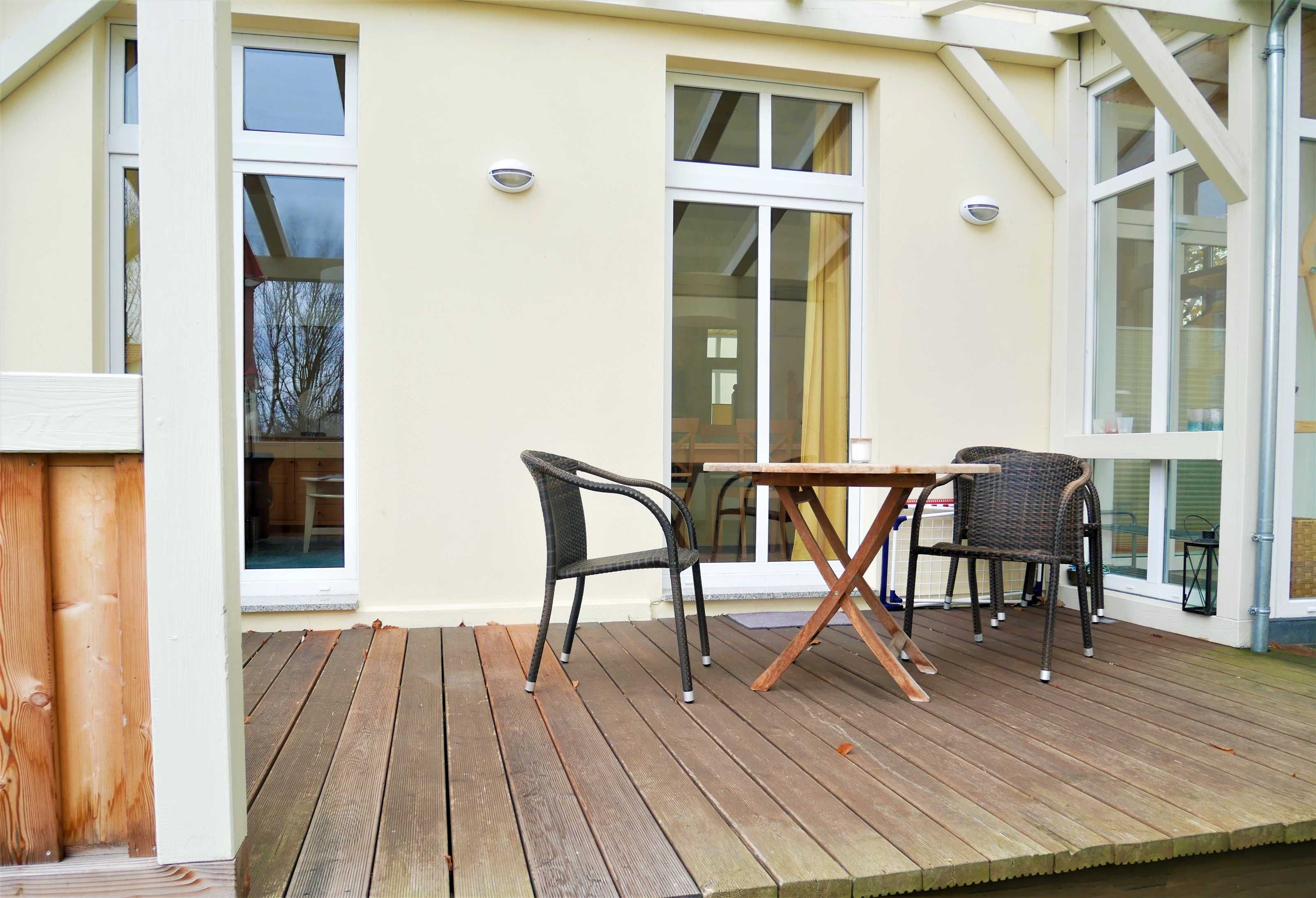 Der Kamin lädt zu gemütlichen Abenden im Spätherbst oder Winter ein. Bei Bedarf sorgt die Musikanlage oder der Fernseher mit DVD-Player für Unterhaltung. Eine Auswahl an Büchern und Gesellschaftsspielen ist ebenfalls vorhanden. Im Frühling und Sommer fühlen Sie sich auf der teilweise verglasten Südterrasse ganz wie zu Hause und genießen zum Frühstück die beim nahegelegenen Bäcker erhaltenen Brötchen. Wer mittags oder abends keine Lust hat, Essen zu gehen, bekocht sich selbst in der gut ausgestatteten Küche. Den späteren Abwasch nimmt Ihnen die eingebaute Spülmaschine ab schließlich sind Sie im Urlaub.