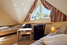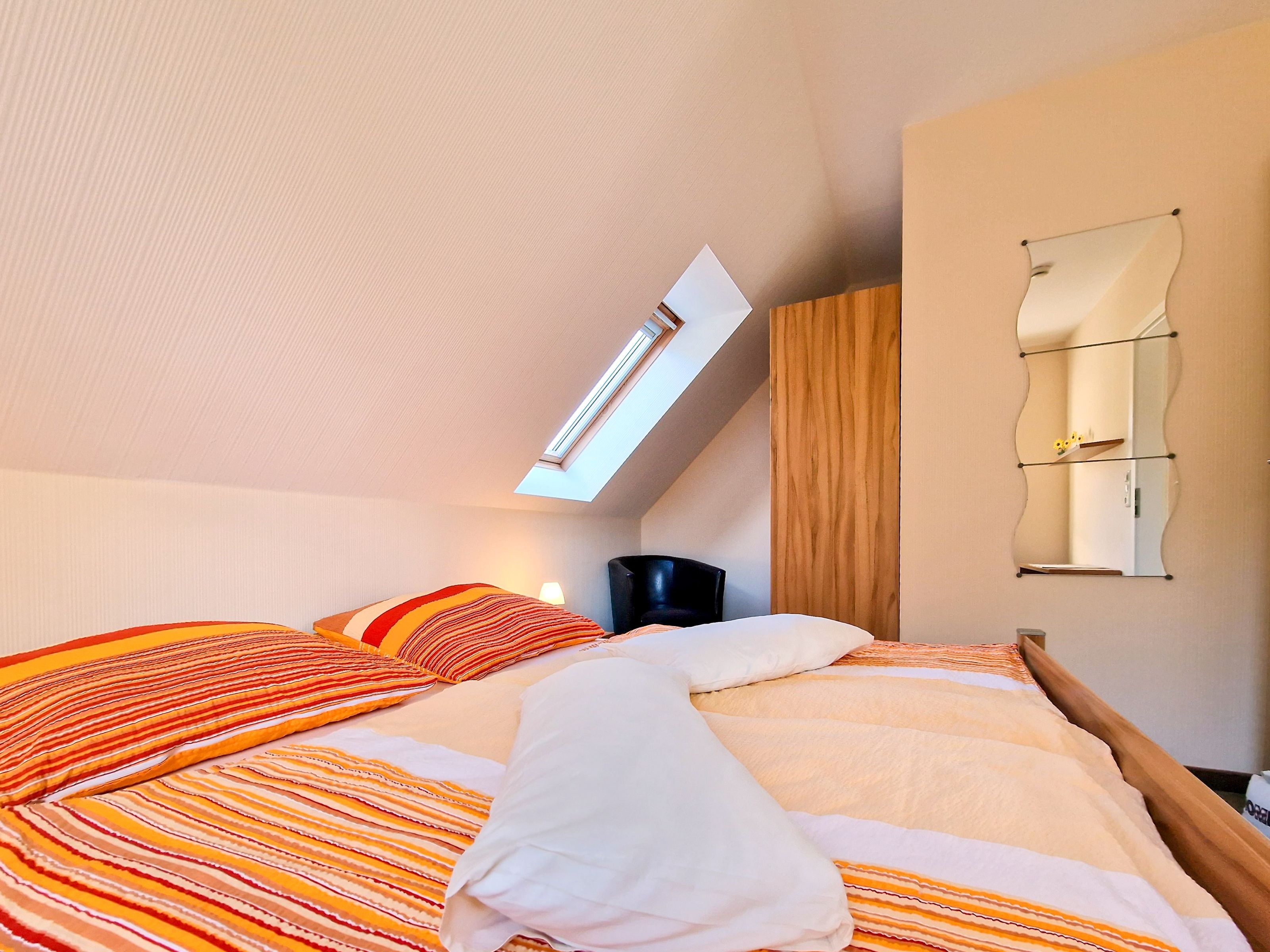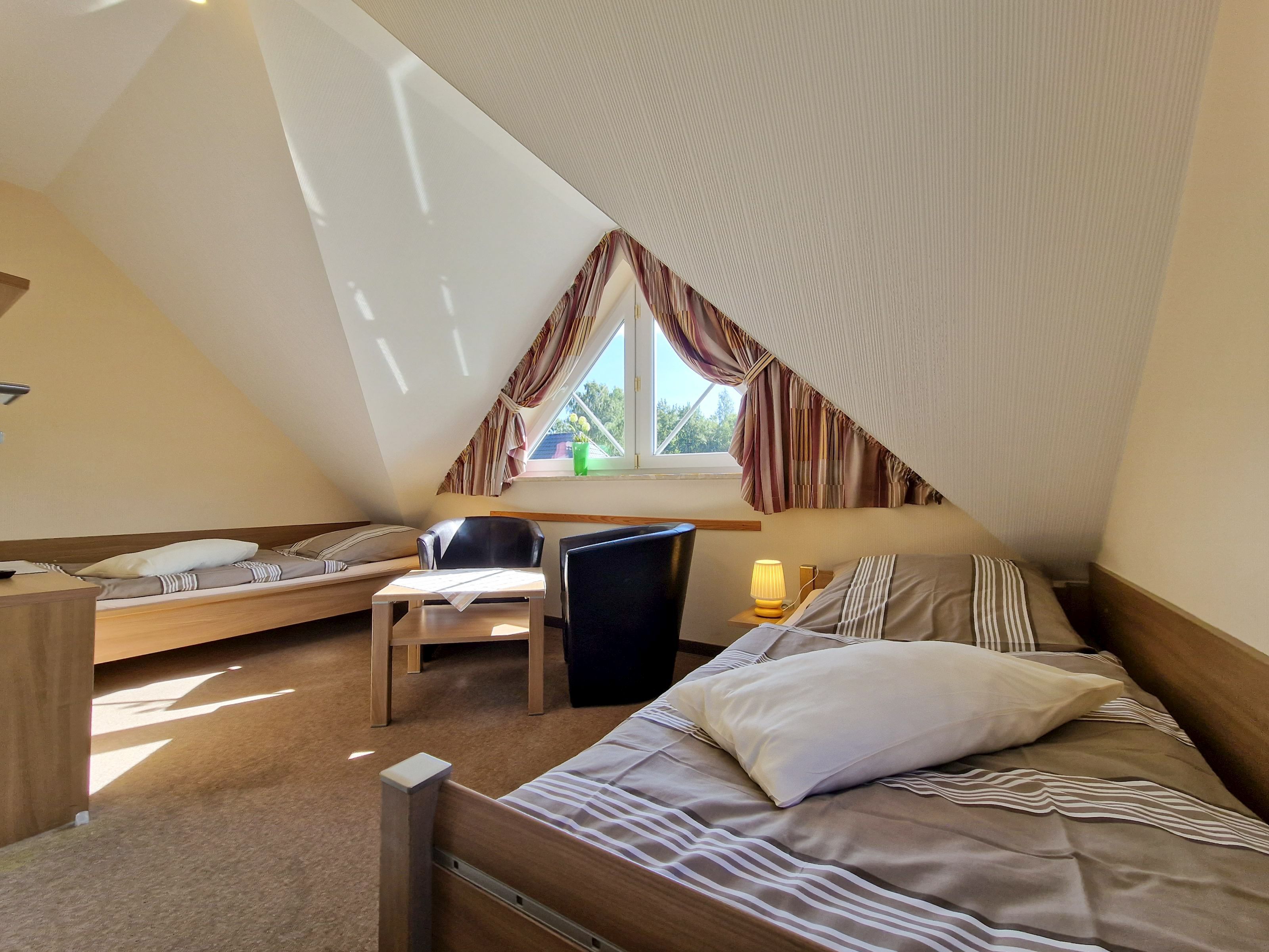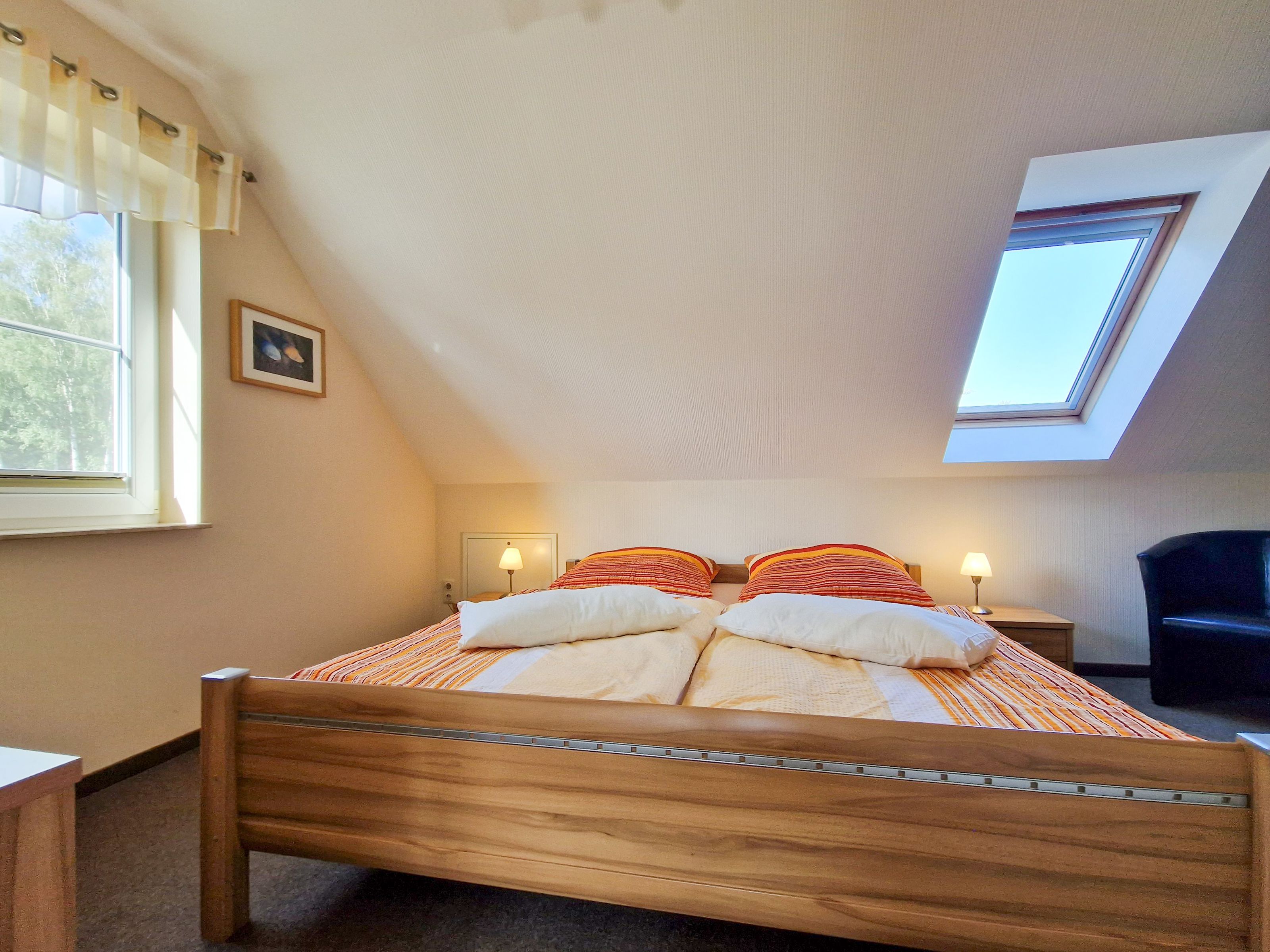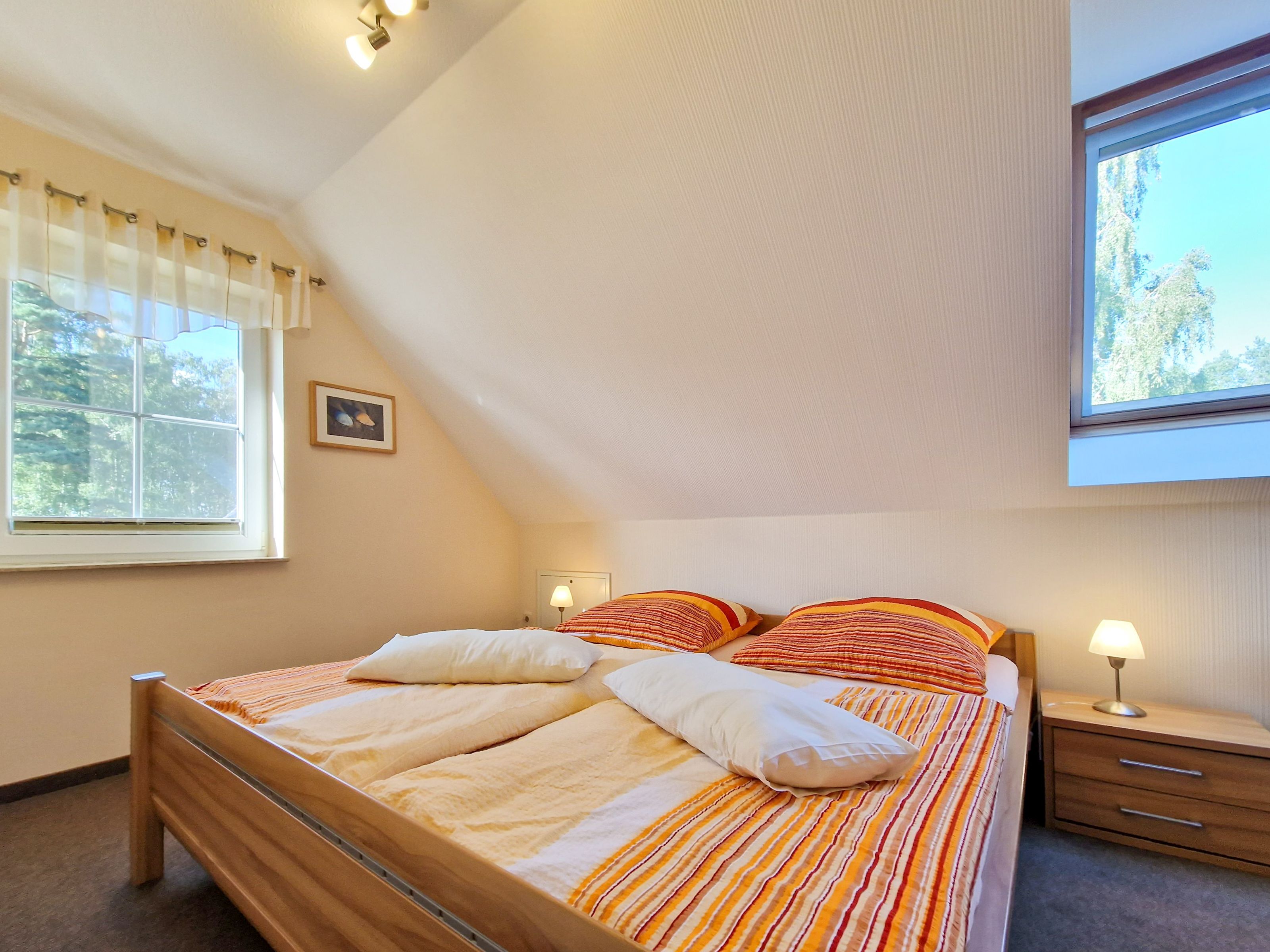 Im Obergeschoss befinden sich die beiden Schlafzimmer: eines mit einem gemütlichen Doppelbett und das andere mit zwei Einzelbetten.