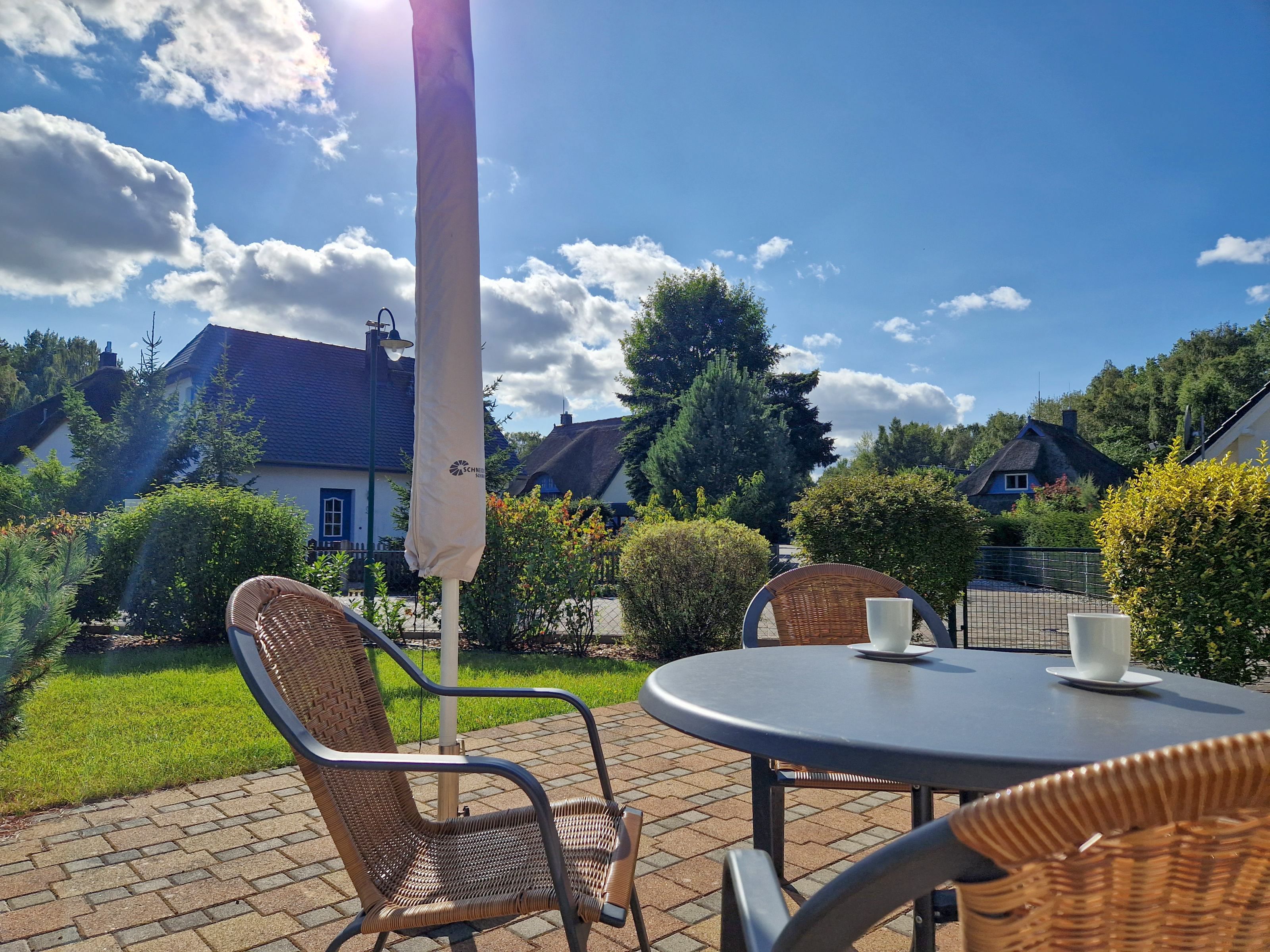 Zu jeder Wohnung gehören zwei PKW-Stellplätze sowie eine Möglichkeit zur Unterbringung von Fahrrädern, die sich direkt neben dem Haus befinden. Eine möblierte Terrasse lädt dazu ein, entspannte Stunden im Freien zu verbringen. Für kleinere Wäschearbeiten steht Ihnen eine Waschmaschine im Hauswirtschaftsraum zur Verfügung.