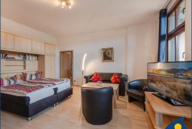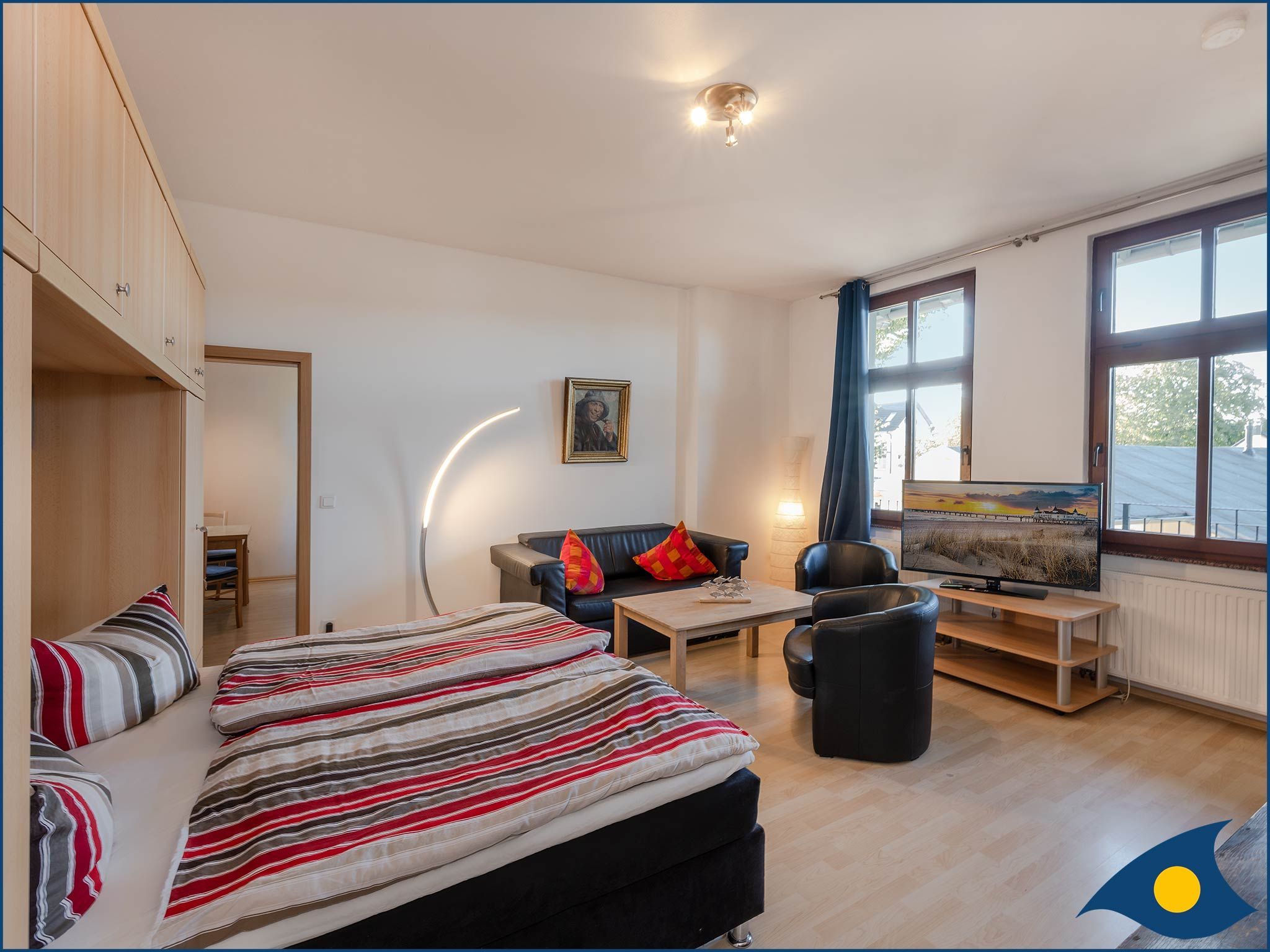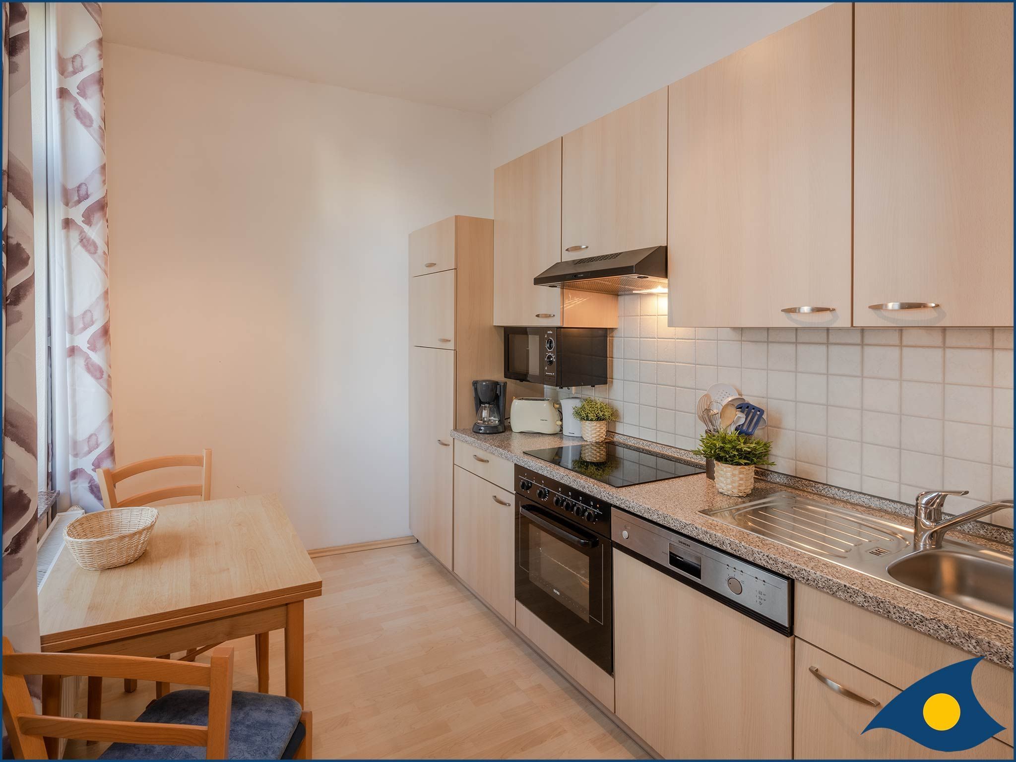 Die Wohnung 4 ist eine komplett ausgestattete 35 m² große 1-Raum-Ferienwohnungen mit offener Küche sowie kleinem Balkon.