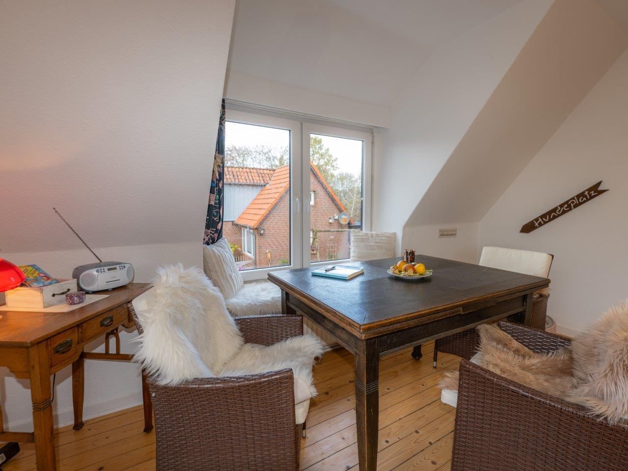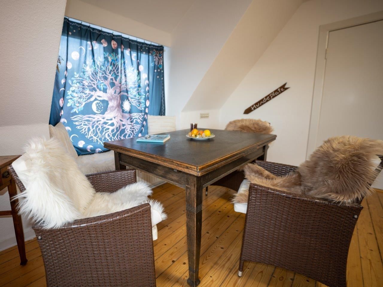 Gemütliche Ferienwohnung im ersten Stock über eine etwas steile Treppe zu erreichen. Ein Doppelbett mit zwei einzelnen Matratzen (180x200 cm) sorgt für erholsame Nächte nach erlebnisreichen Tagen an der kraftvollen Ostsee, der nahegelegenen Straußenfarm in Hohenfelde (13km entfernt), das freundliche Stadtleben mit Markt in Lütjenburg und vielem mehr.
