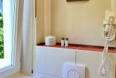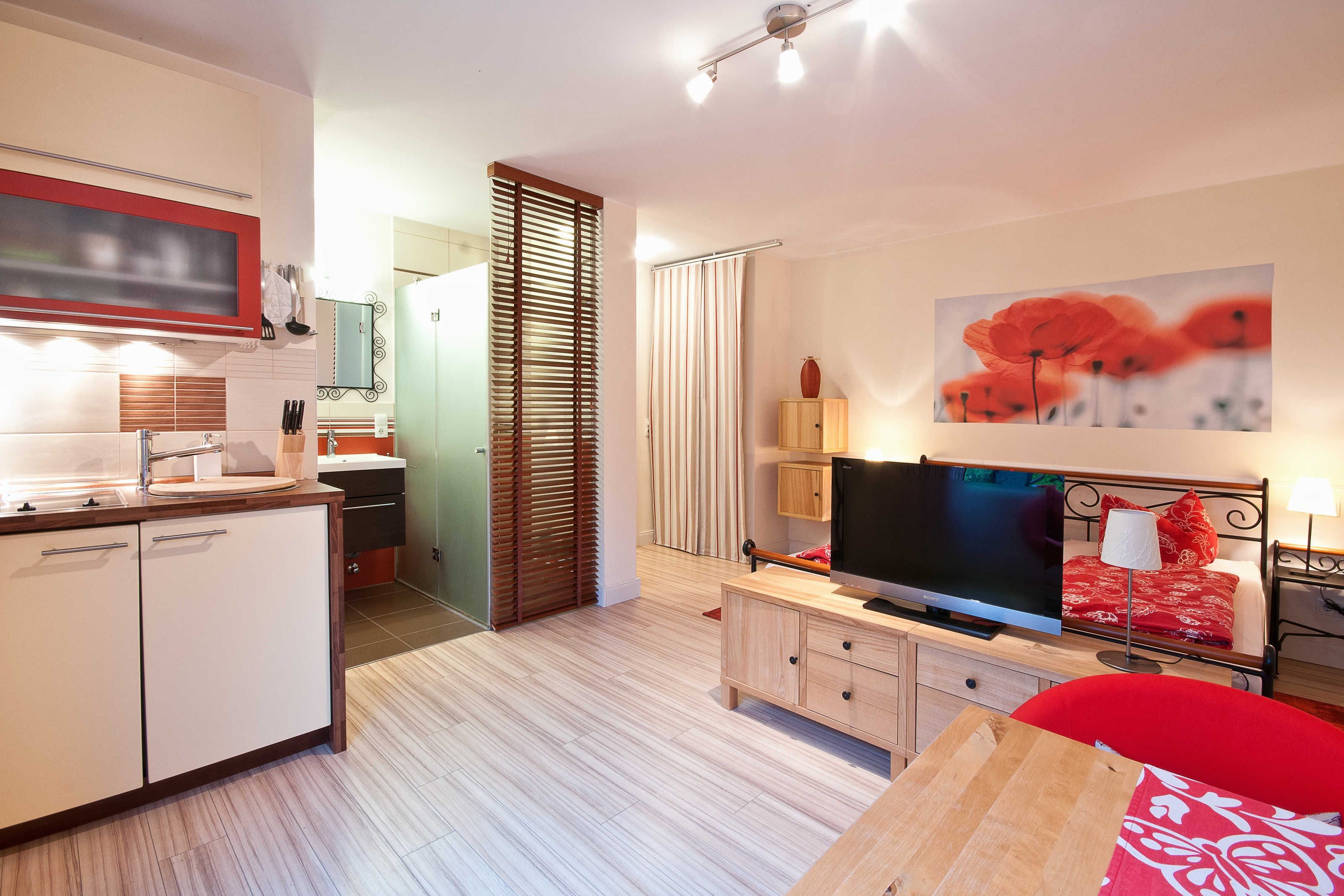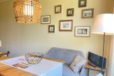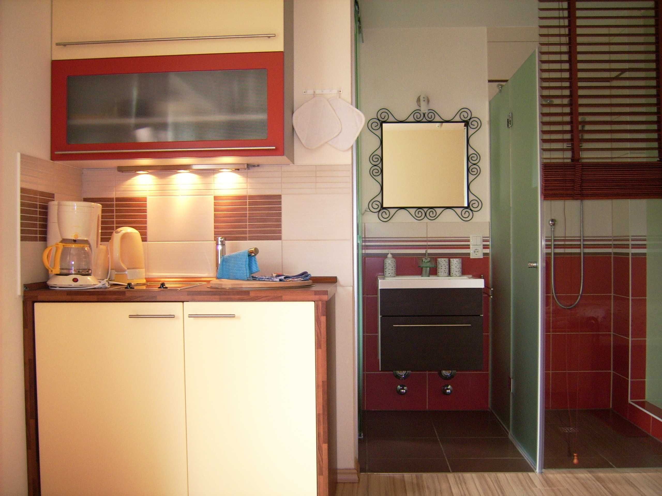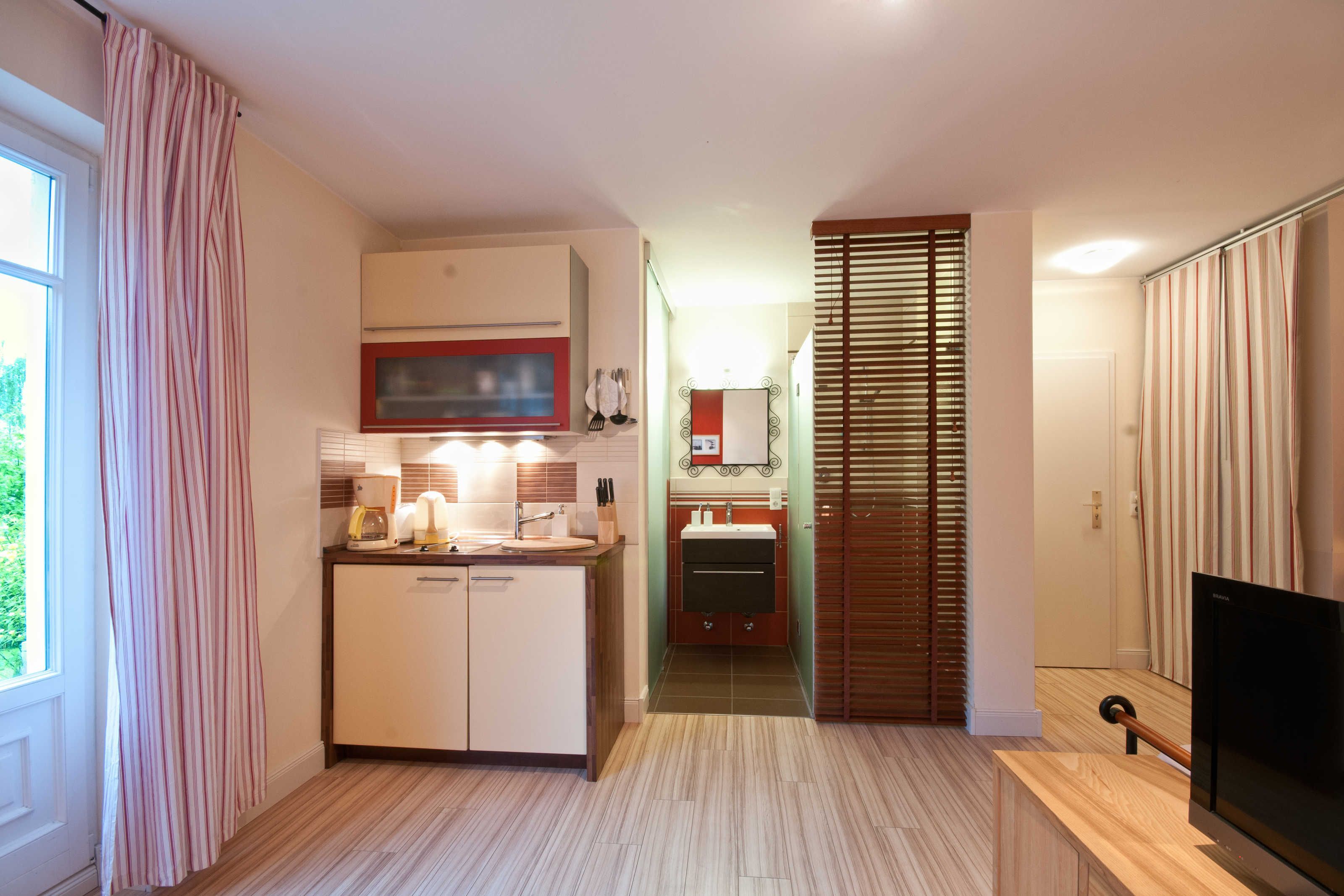Eine kleine, raffiniert eingerichtete Wohnung für den Urlauber, der lieber am Strand oder auf Rügen unterwegs ist, als tagelang in seiner Ferienwohnung zu sitzen. Größe: ca. 26 m², sehr gemütlich und wie folgt eingerichtet: Fußbodenheizung, Laminat. Küchenzeile mit Flüsterkühlschrank, Cerankochfeld, Kaffeemaschine, Wasserkocher und Toaster. Doppelbett 200 x 180 cm, kleine Sitzgruppe. Bad mit Fön, WC und Dusche (120x80 cm). Die Dusche ist durch Milchglaswände vom Wohnraum abgetrennt. 40 Zoll Smart-TV, Kreafunk Bluetooth Lautsprecher. Gepflasterte Terrasse Richtung Westen mit Möblierung, Gartengrill und einer kleinen Liegewiese. Diese Wohnung ist geeignet für Alleinreisende, oder Pärchen. Eine Aufbettung ist nicht zu empfehlen.