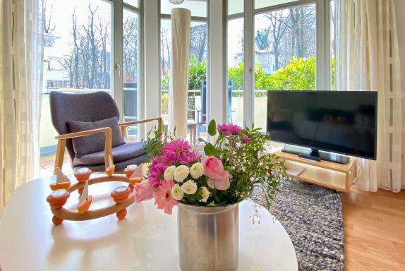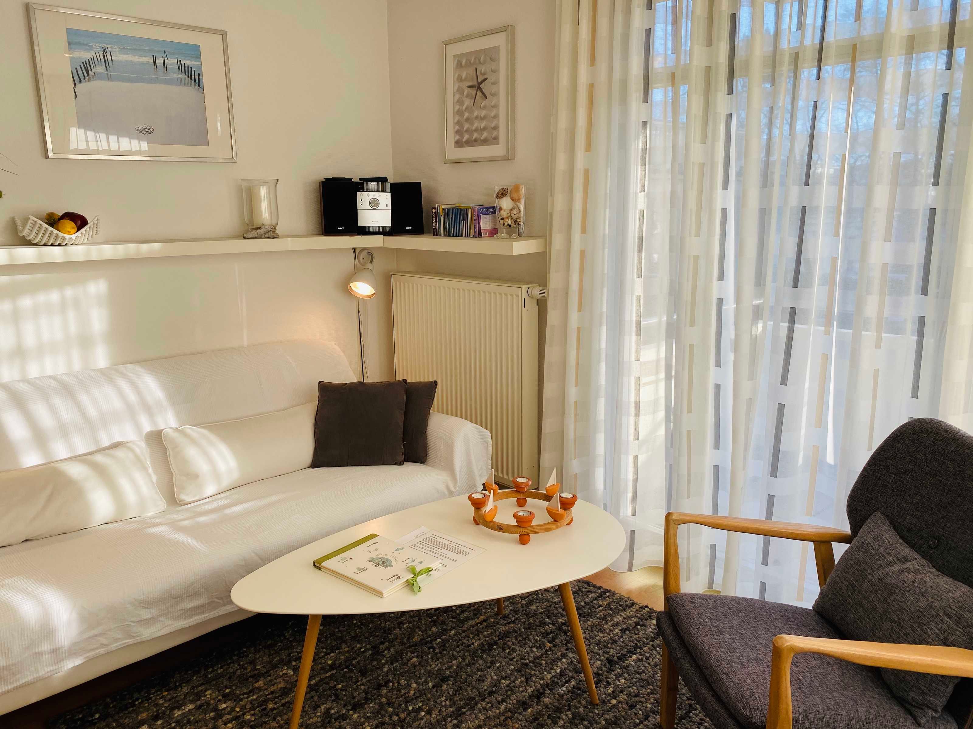 Die Ferienwohnung 13 im Haus Rondell ist eine modern eingerichtet 3 Raum-Wohnung und verfügt über einen kombinierten Wohn-Essraum mit kleiner Küchenzeile.