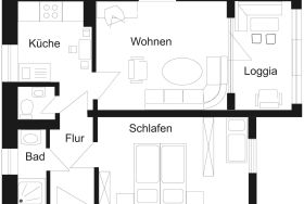 Großzügige Ferienwohnung mit 1 Schlafzimmer und Doppelbett + 1 Wohnzimmer mit Schlafsofa.
