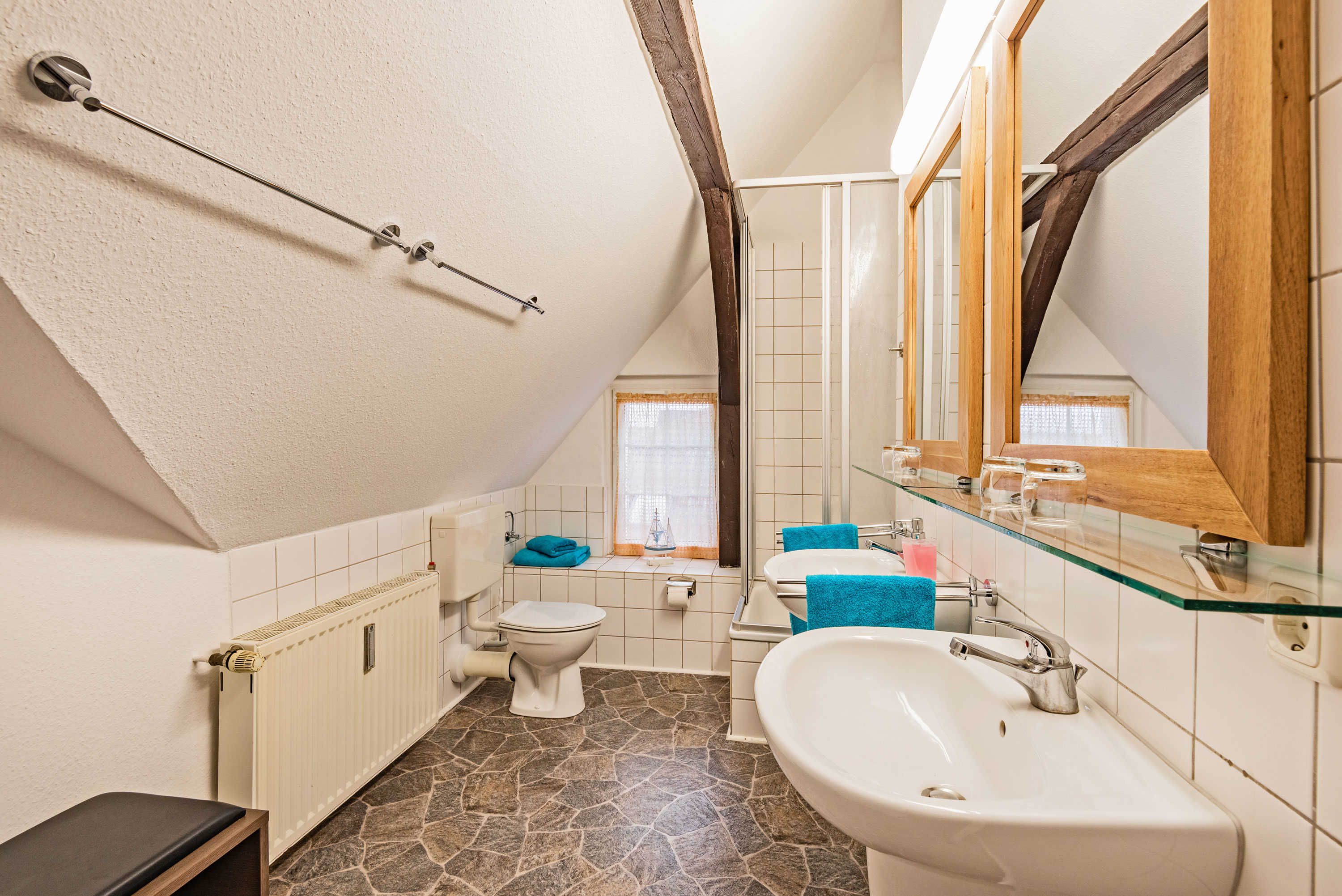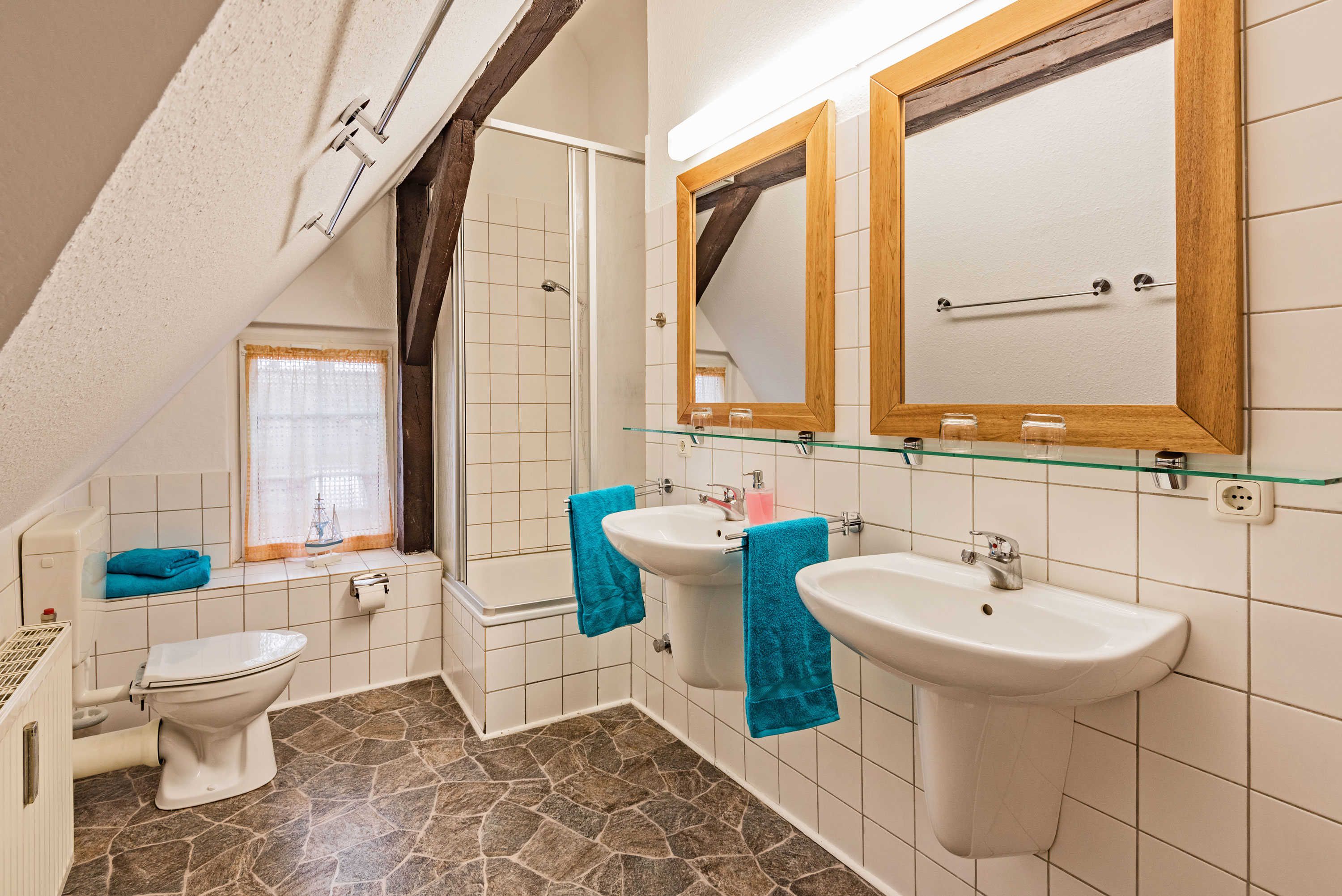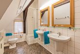 Für 1-7 Personen, 96 qm, voll ausgestattete Küche mit gemütlichem offenen Essebereich, Bad mit DU/WC, separates WC, im 2. OG mit Meerblick.