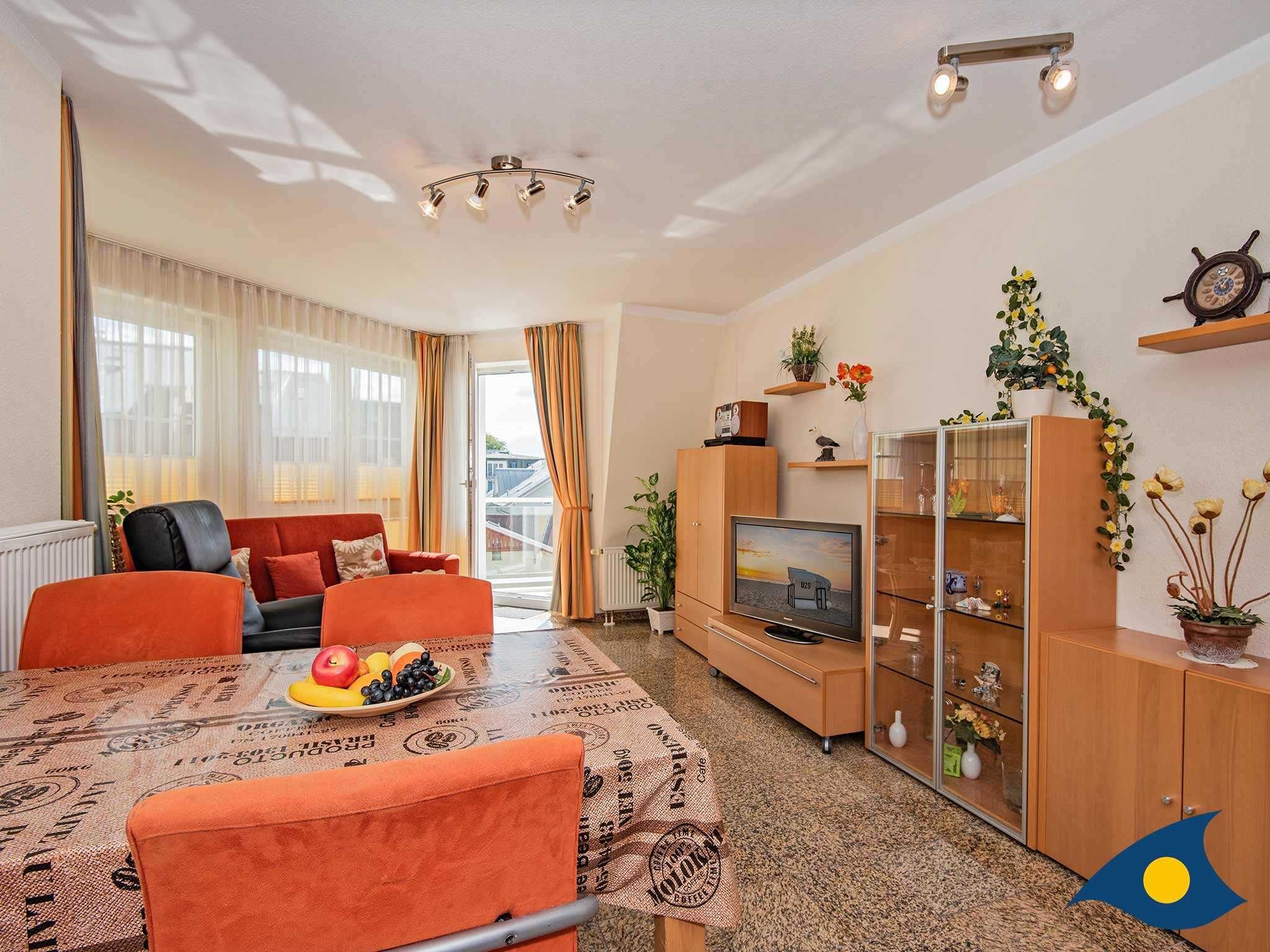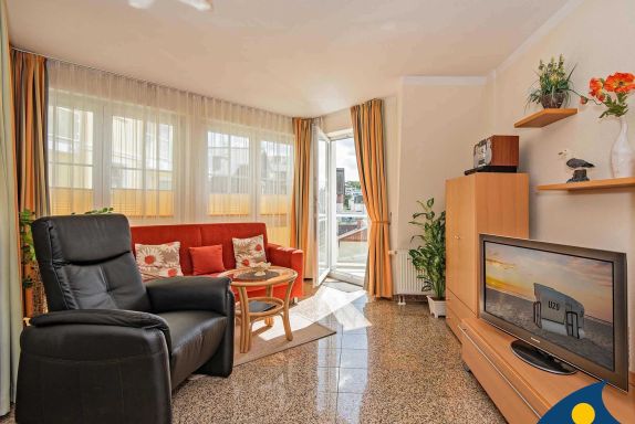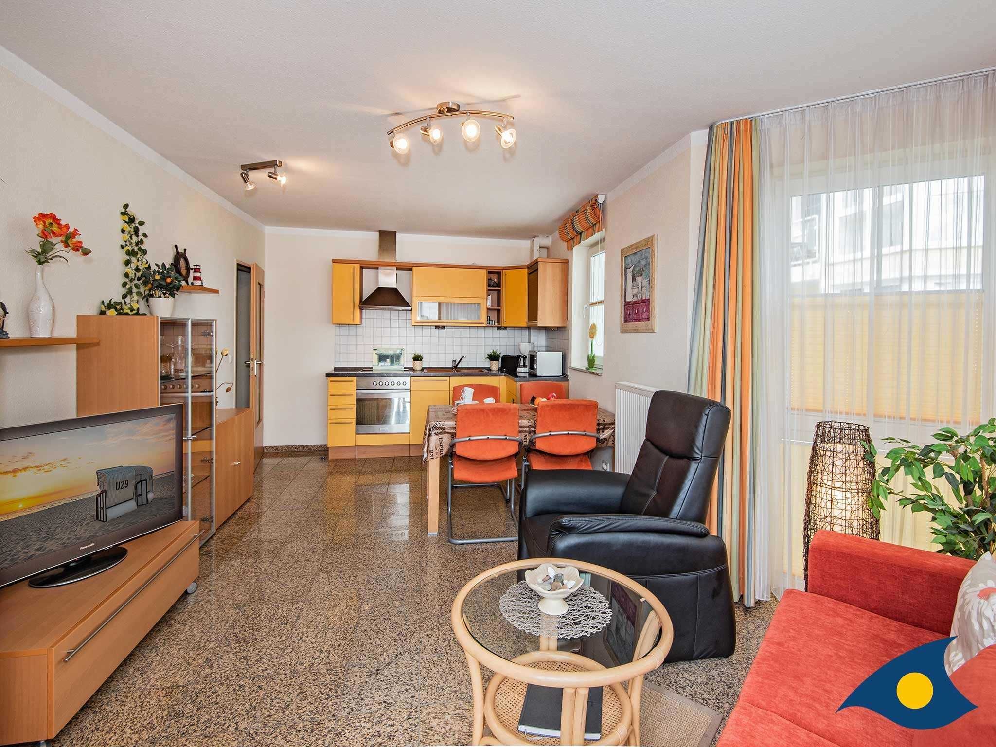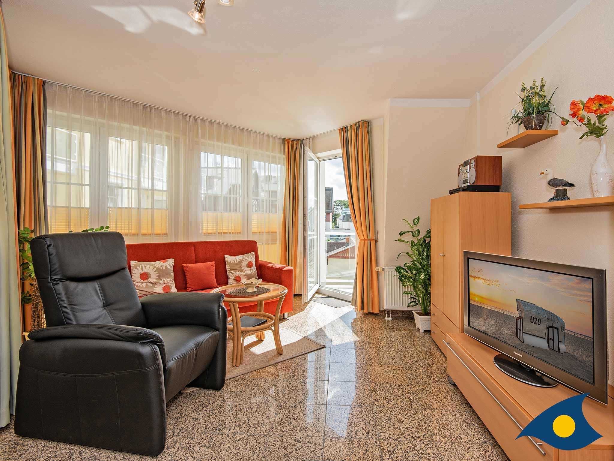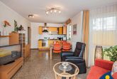 Das große, lichtdurchflutete Wohnzimmer ist das Herzstück des Appartements. Hier besprechen Sie beim morgendlichen Frühstück die Ausflugziele für den Tag, entspannen auf dem gemütlichen Relaxsessel mit verstellbarer Fußstütze, genießen ein Gläschen Wein mit Freunden oder kochen gemeinsam Ihr Lieblingsessen.