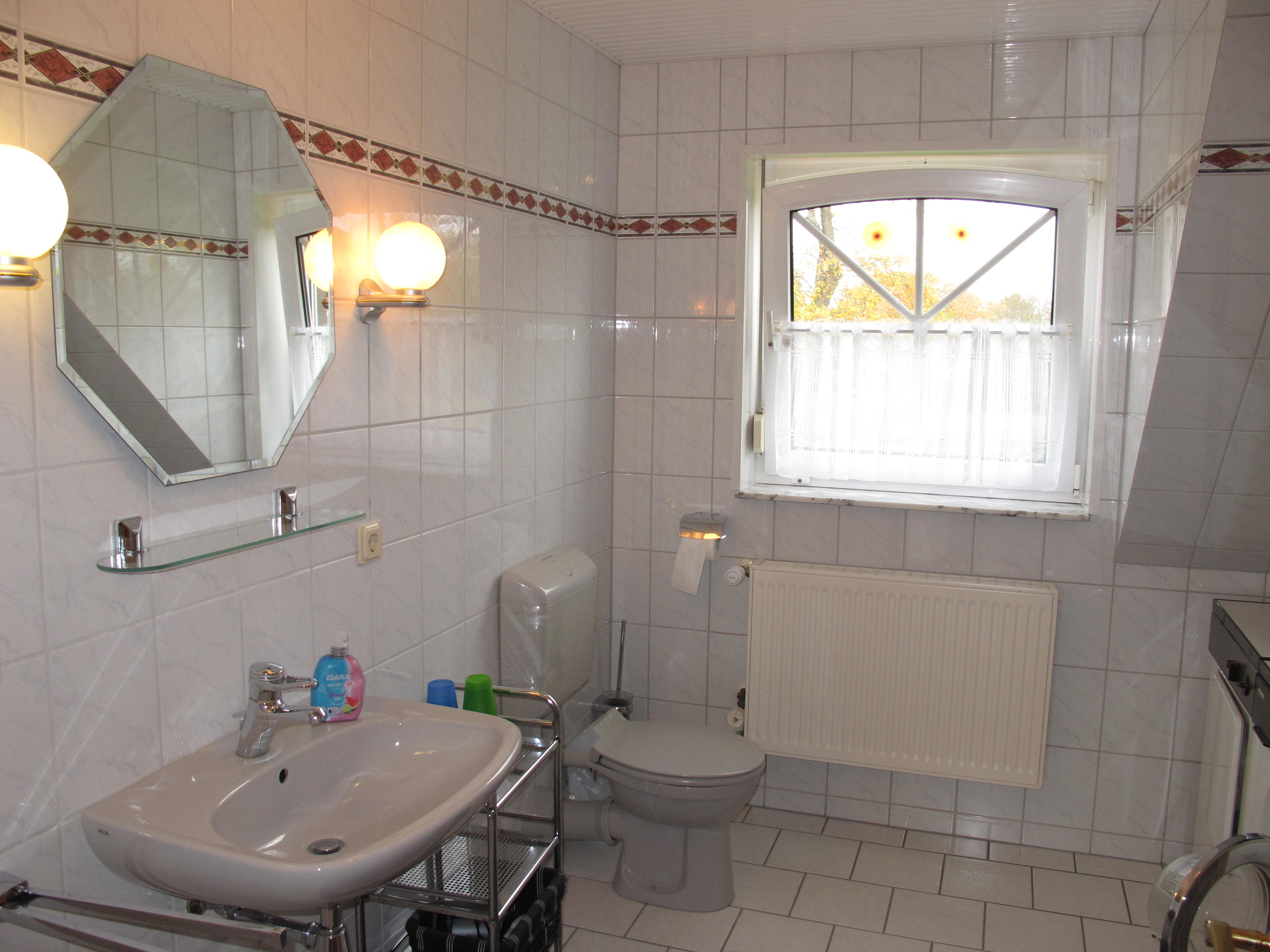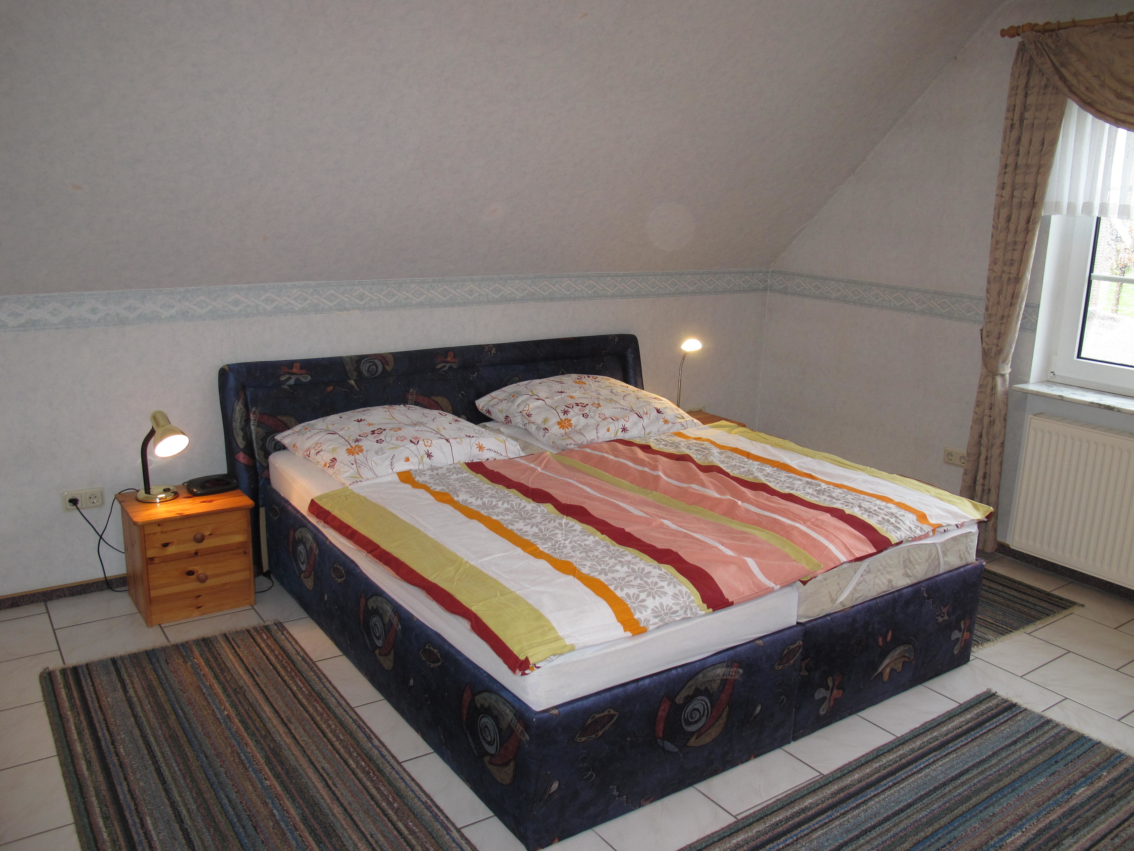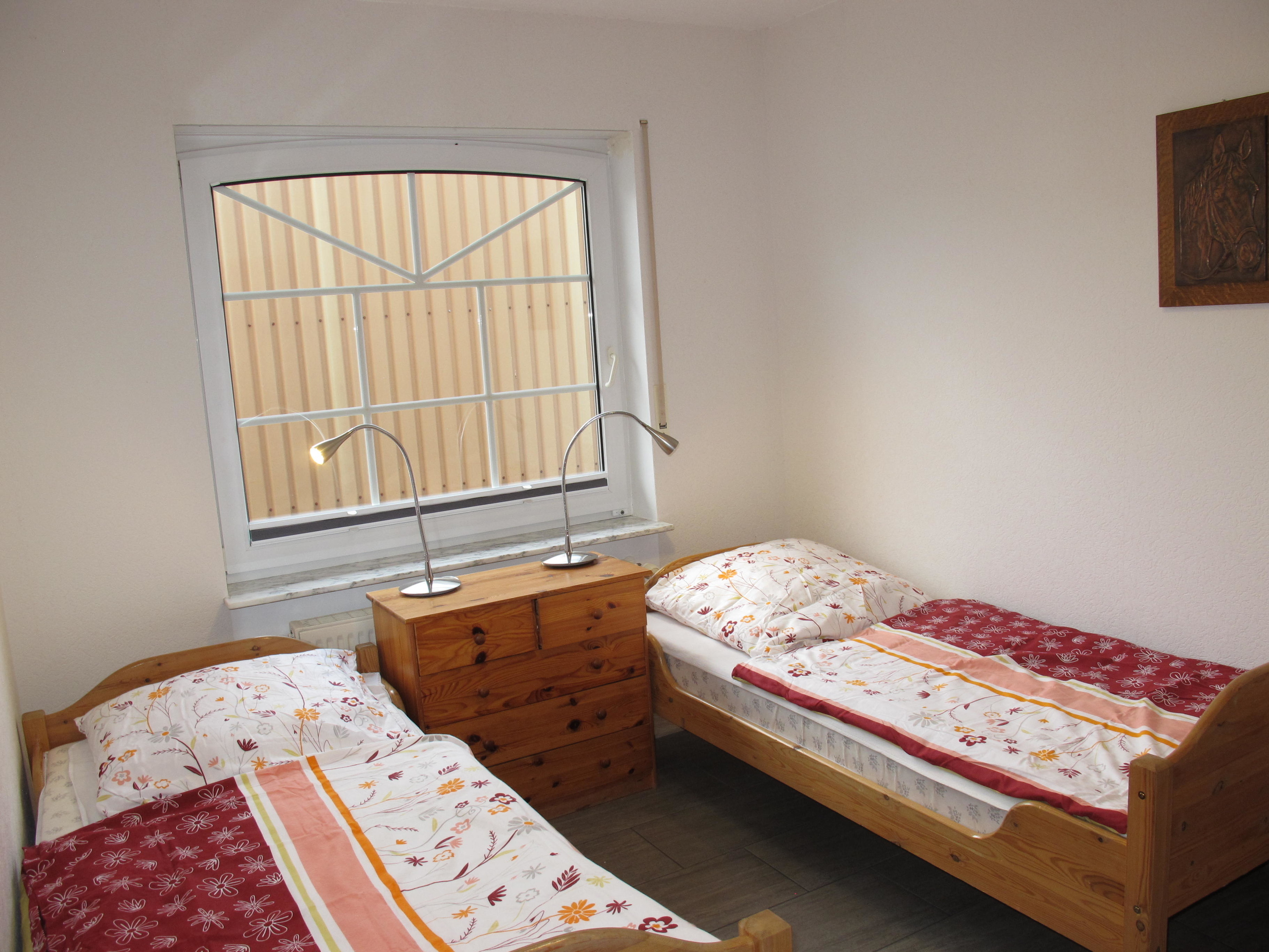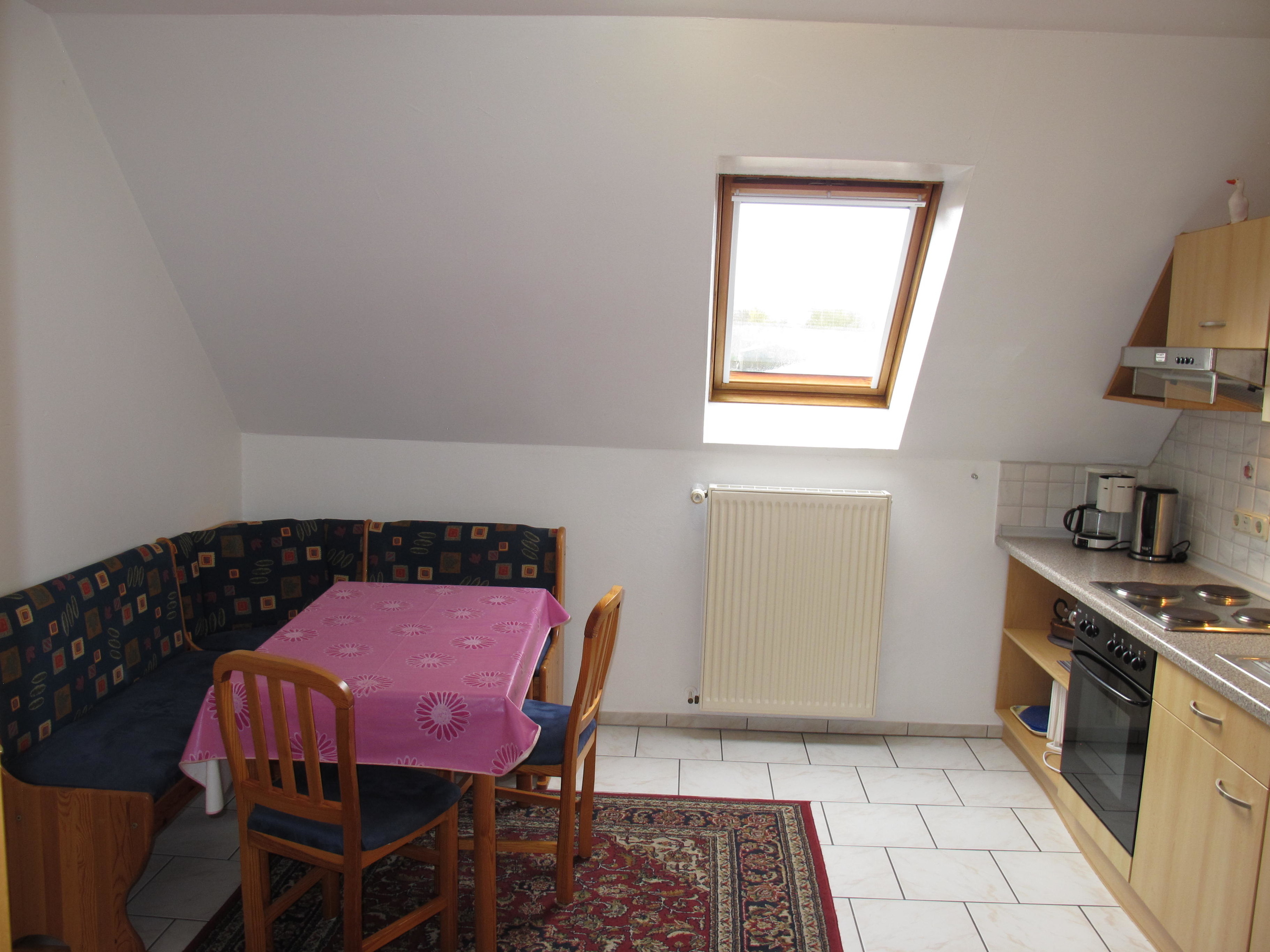 Erdgeschoß: Separate Wohnung mit: Diele/Flur. Großer Wintergarten mit Sitzgruppe/Eßplatz für 20 Personen. Wohnraum mit Sitzgruppe. Geräumige Küche mit Einbauherd (4 Ceranfelder, Backofen), Mikrowelle, Geschirrspüler, Kühlschrank, Kaffeemaschine, Wasserkocher, Toaster und Eßplatz für 8 Personen. 2x Schlafzimmer, jeweils mit Doppelbett und Einzelbett. Kleines Zweibettzimmer. Dusche. 2x sep.WC. 1. Etage: 2x Wohnraum mit Sitzgruppe. 2x Küche (jeweils 4 Platten, Backofen, Kühlschrank, Kaffeemaschine, Wasserkocher und Toaster) und jeweils mit Eßplatz für 6 Personen. 2x Doppelzimmer. 2x Dusche.WC. Dachgeschoß: großer Flur. 2 sehr geräumige Schlafzimmer mit jeweils 4 Einzelbetten.