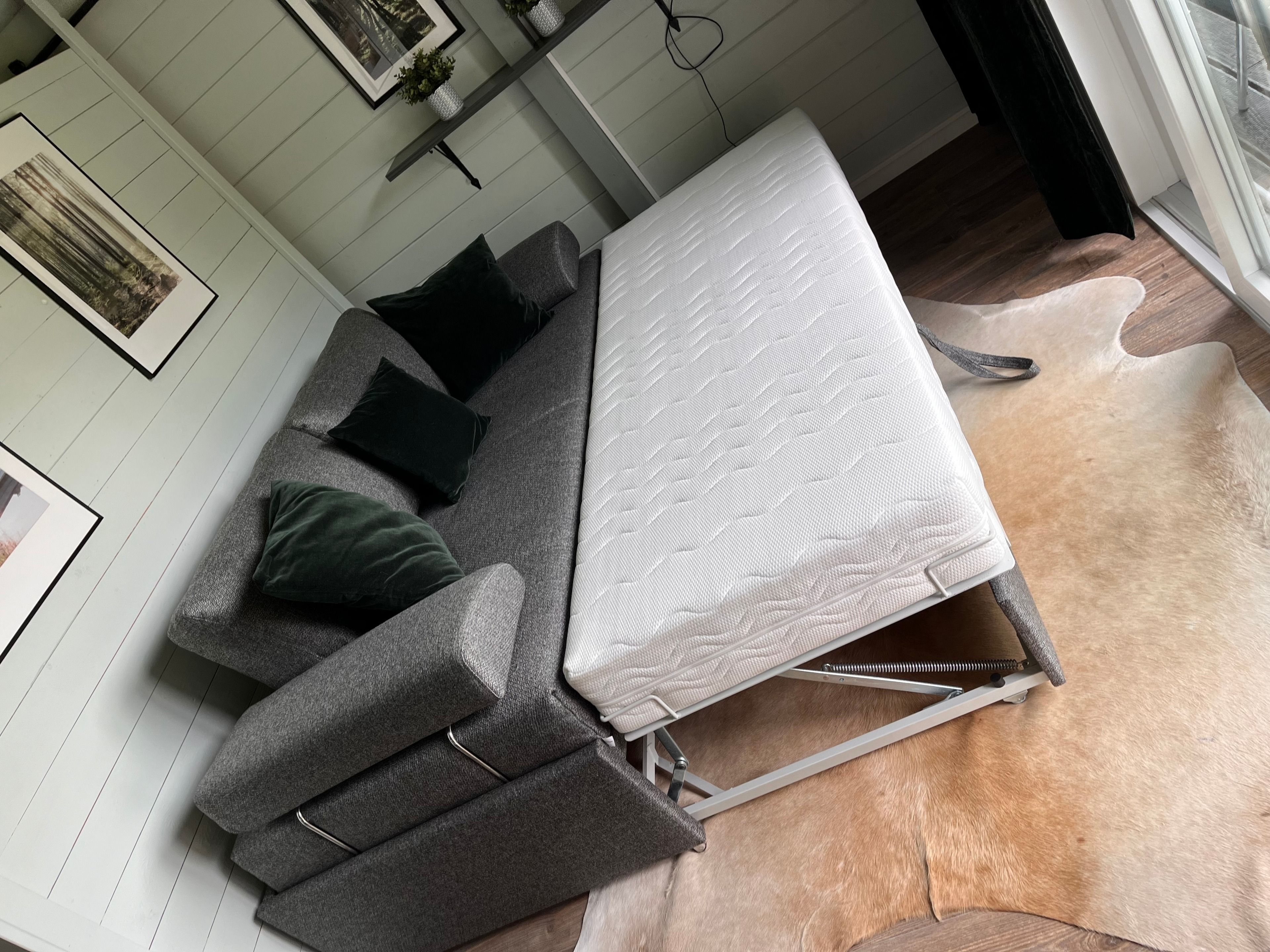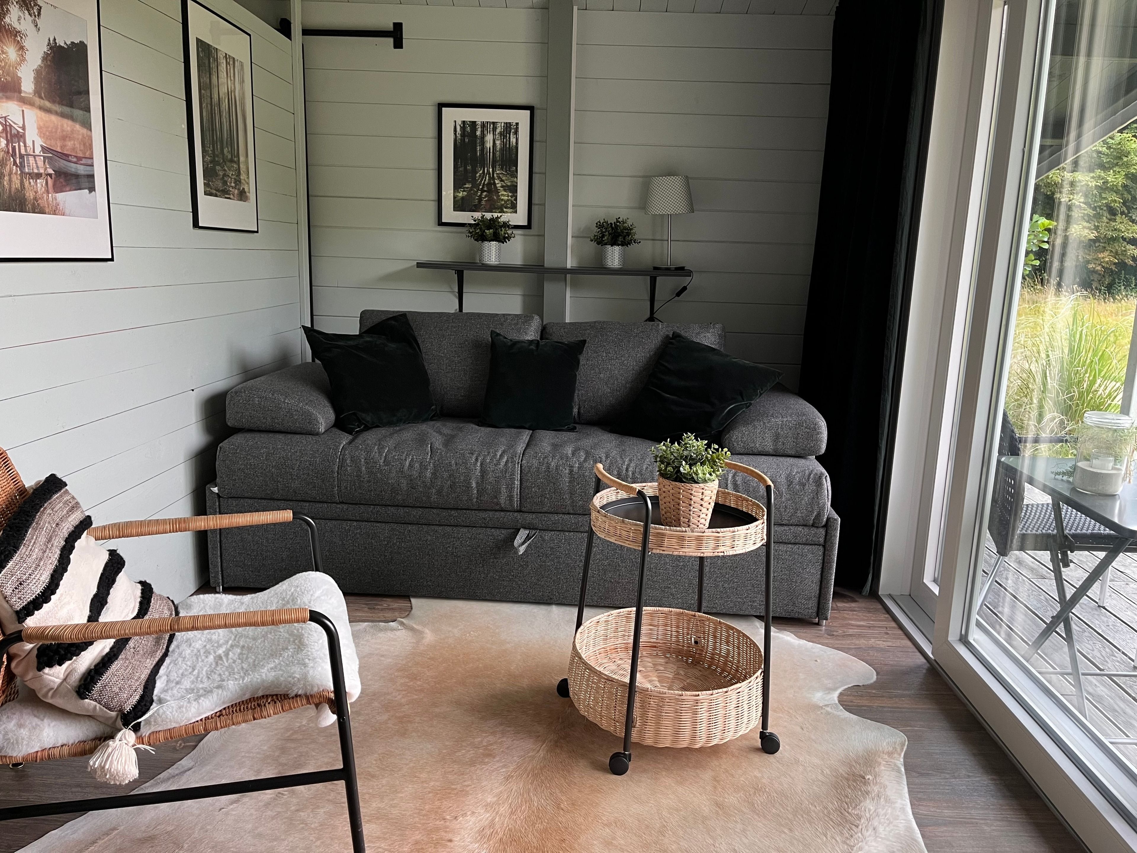 Unser kleines Chalet Lütje Nüst ist mit viel Liebe zum Detail eingerichtet und hat neben einer kleinen Küche, einem gemütlichen Klappsofa (Dauerschläfer geeignet ! ) auch einen komfortablen Magenta-TV Zugang und ein sehr schnelles WLAN.